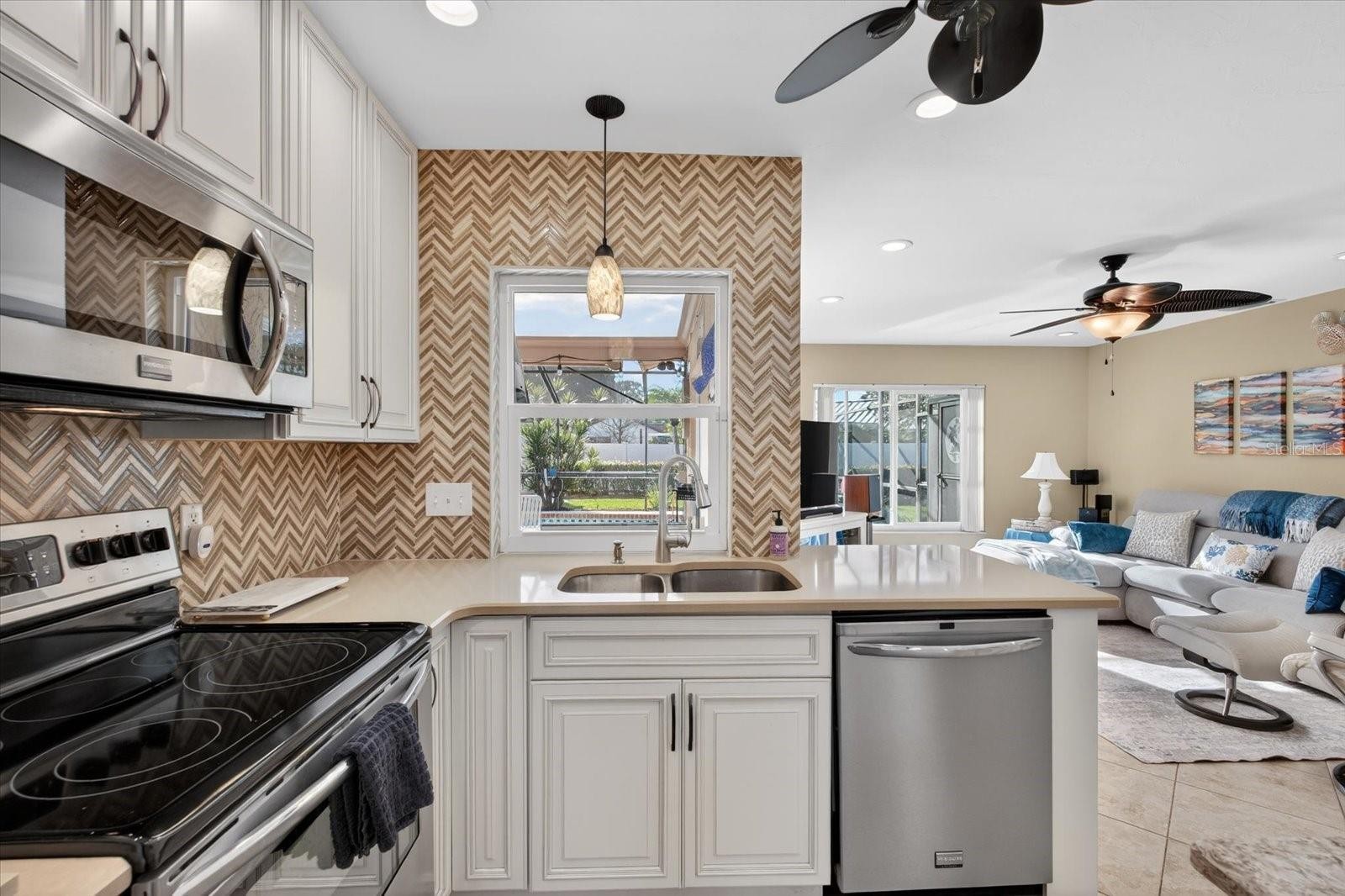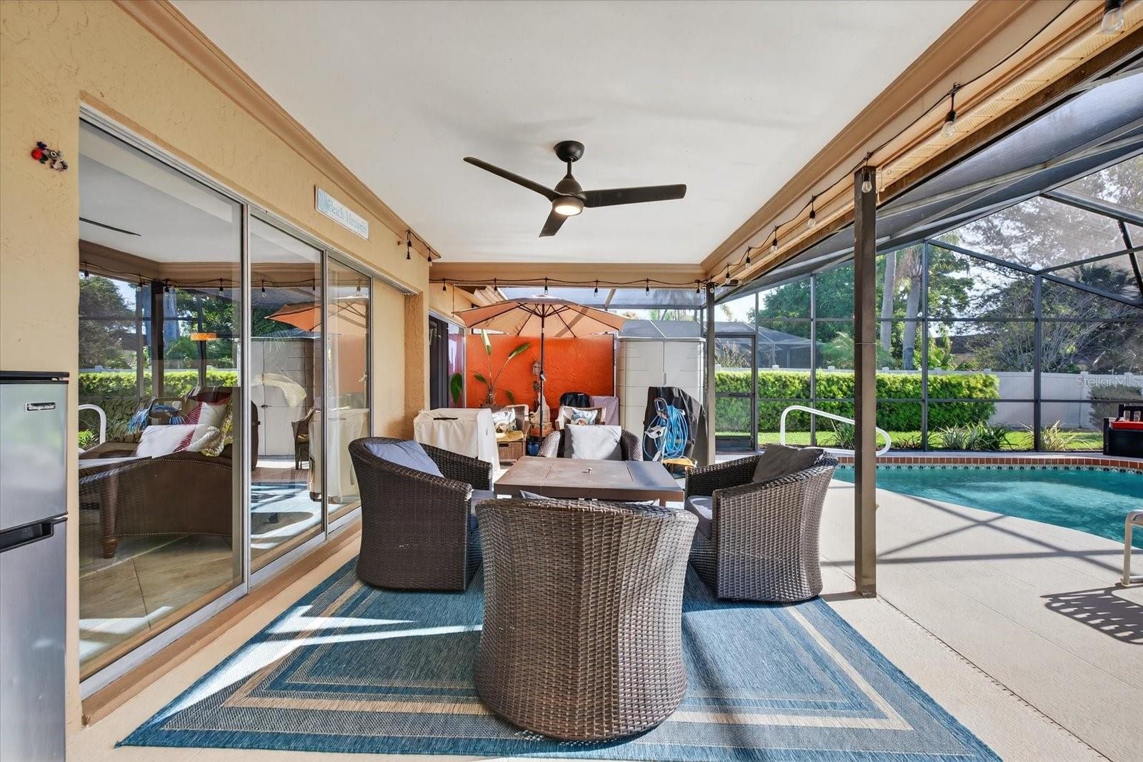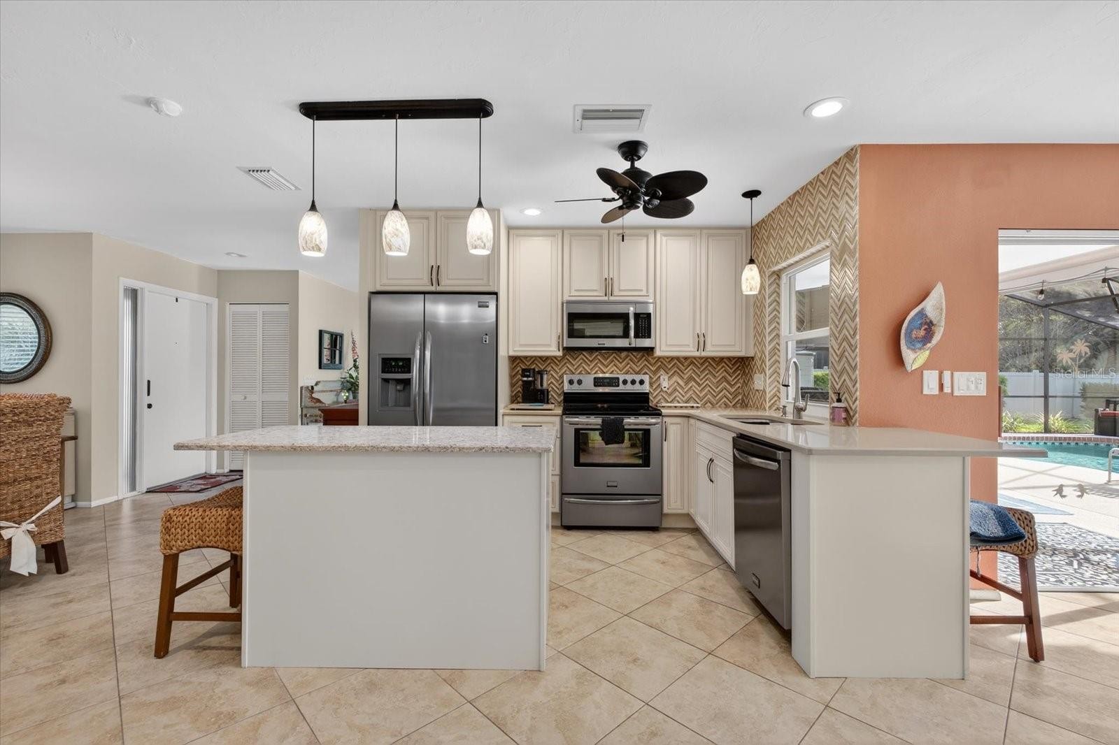 Welcome to your west Bradenton oasis in Village Green! This meticulously upgraded home offers the perfect blend of comfort and convenience. Enjoy peace of mind with impact windows throughout. The spacious lot provides ample outdoor living, featuring a saltwater heated pool for year-round enjoyment. Inside, discover a host of recent upgrades including a newer bathroom, flooring, HVAC system, water heater, kitchen, and roof. Hobbyists will love the detached man cave shed with electricity – perfect for projects or extra storage. Bring your boat or RV, as there’s dedicated parking available behind the fence! This home is truly move-in ready and designed for a relaxed Florida lifestyle! Enjoy your very own avocado and banana trees watered by the sprinkler system on a deep well. This model was expanded when built for extra living space in the family room, dining room, and 2nd/3rd bedrooms. Views of the pool and the private tropical backyard are visible from almost every room of the house creating a Florida lifestyle that is unsurpassed in newer neighborhoods!