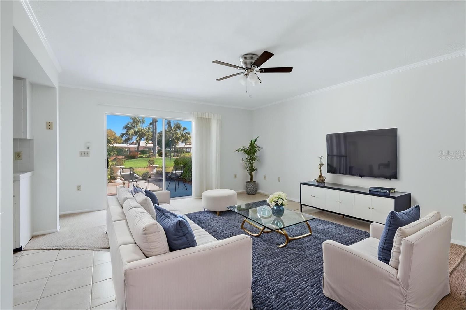 One or more photo(s) has been virtually staged. Great New Price AND New Paint!! Welcome to Village Green – West Bradenton’s Premier 55+ Community. Discover the charm and potential of this 2-bedroom, 2-bath villa-style condo with a den and spacious 2-car garage. Ideally located in the heart of Village Green surrounded by lush, mature landscaping, this home offers a serene, park-like setting that provides a peaceful escape in a beautifully maintained community. Inside, the home features a bright, open layout with an adaptable floor plan with a fresh coat of paint—ready for your personal updates and renovations. The bedrooms are quite spacious and offer plenty of closet space, perfect for vacationing guests and family members. Enjoy the serene garden views from the Living room, Family room, den or outdoor patio which is ideal for grilling, container gardening, or simply relaxing and catching up with neighbors. Some improvements include, crown molding, plantation shutters, new water heater (2020), roof (2018) and several newer appliances. Just a short stroll away, the community offers a beautiful pool and gazebo situated on a lake offering amazing wildlife viewing opportunities as well as numerous social functions. So whether you're looking for a year-round residence or a seasonal escape, this villa offers the perfect opportunity to embrace the Florida lifestyle in a peaceful, welcoming community. All of this is just minutes from world famous Gulf beaches, shopping, dining, churches, premier medical facilities, Robinson Preserve, easy access into Sarasota and so much more. The location truly can't be beat.