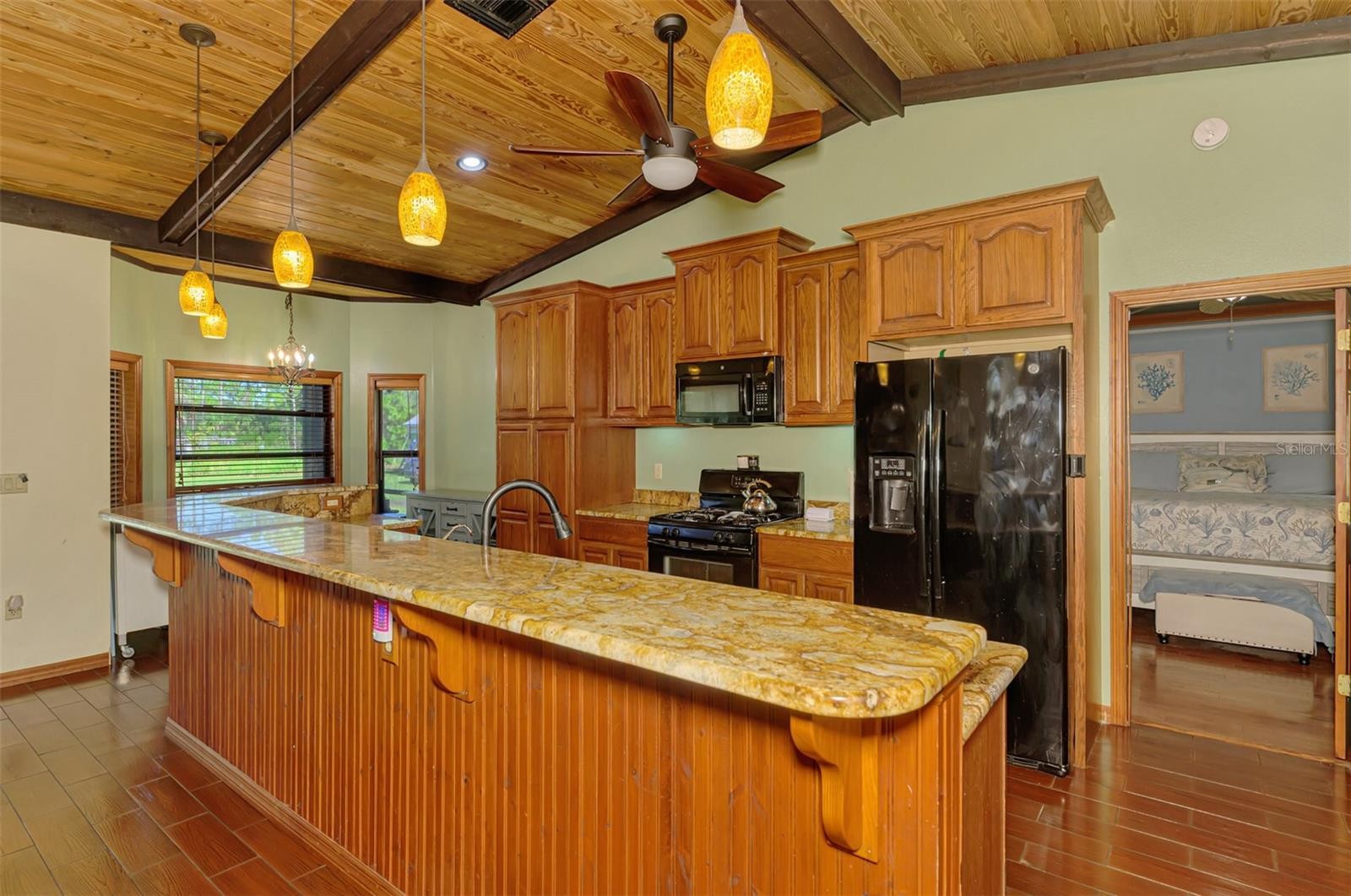 Custom-Built 3.2-Acre Estate with Pond, Tiny Home & Gorgeous Features Inside and Out! Looking for space, style, and plenty of extras? This 3-bedroom, 2-bath estate sits on 3 peaceful acres and is packed with features that make everyday living something to enjoy. From the moment you pull up to the screened front porch and pass through the lead glass entry door, you'll notice how much care has gone into every detail of this home featuring over 2,000 sq.ft of living space! Step inside and look up — the custom wood cathedral ceiling with exposed beams sets a warm, rustic tone that’s hard to find anywhere else. A stone gas fireplace in the family room brings charm and comfort, while wood flooring and wood-look tile stretch through all living areas for a clean, stylish feel. The formal dining room offers space for gathering, while the open kitchen includes solid wood cabinets with crown molding, granite countertops, a large breakfast bar, and an eat-in nook that fills with natural light. The master bedroom is a peaceful retreat with tray ceilings, custom crown molding, wood floors, and a walk-in closet. The master bath is a standout with a jetted tub, a Roman tile shower, wood cabinets, and more granite countertops. Two additional bedrooms feature tray ceilings, ceiling fans, and built-in closets. Step outside through the triple sliders to your spacious screened lanai, complete with a ceiling fan for comfort on warm days. Want to enjoy the outdoors even more? You’ll love the finishing pond, 16x12 tiny home that’s perfect for guests, large wire chicken coops, and 2 RV pads (one with power and water). The professionally landscaped yard includes fruit trees and a raised garden bed, ready for your green thumb. Other features include spray foam insulation throughout the attic, plant shelves, and a location that’s close to schools, shopping, and dining. Minutes to I-75 entrance, and only a short drive to Sarasota and Fort Myers! Call now to schedule your private tour — this one won’t last!