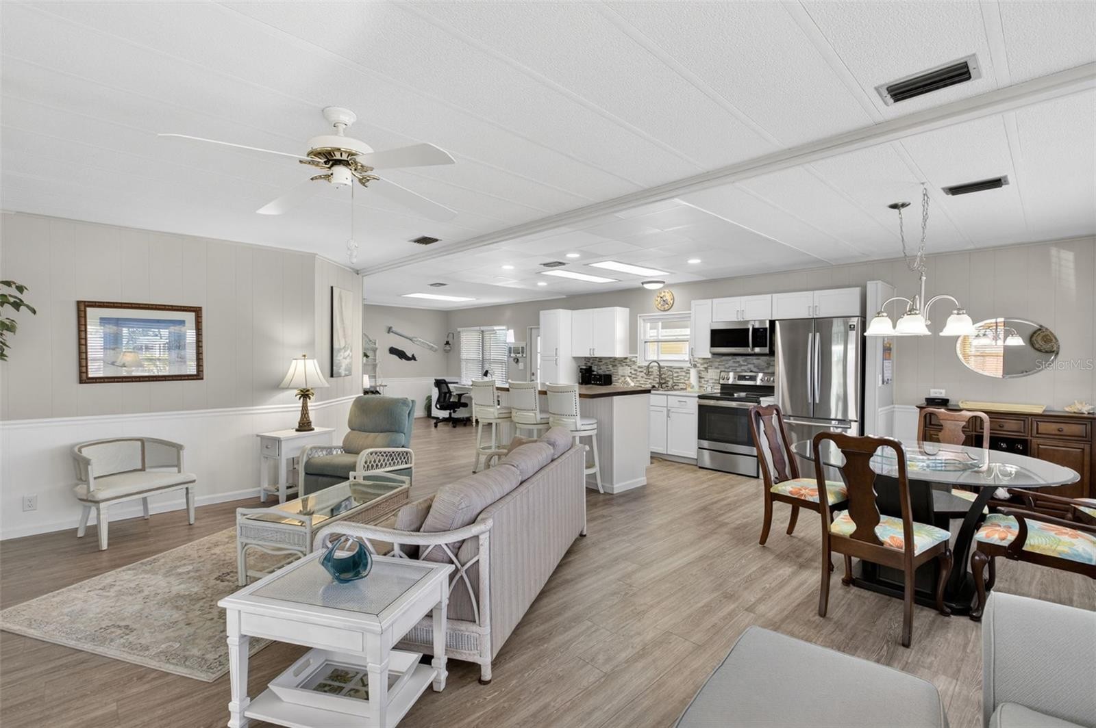 Step into this stunningly updated home, where every detail invites comfort and style. The sleek epoxy driveway welcomes you to a screened lanai with elegant porcelain tile flooring that flows seamlessly into the spacious utility room. Here, you'll find a new washer and dryer, deep sink, extra refrigerator, workbench, and abundant storage, all designed for convenience. Just beyond, a covered generator stands ready for peace of mind. Inside, the den or office opens to an expansive, light-filled floor plan that unites the kitchen, living, and dining areas—perfect for gatherings. The kitchen is a chef's dream, featuring a generous center island with seating, stainless steel appliances, a brand-new stove, plentiful cabinetry, and a pantry with pull-out shelves for effortless organization. Sunlight pours into the living room through six windows, while a sliding door leads to the inviting Florida room, complete with a wall A/C unit and a new entry to the front walkway. The guest bedroom offers a walk-in closet, and the guest bath is finished with a shiplap accent wall, granite vanity, and a tiled tub and shower. Additional storage includes a hall pantry and a double utility closet. Retreat to the primary bedroom with its walk-in closet and stylish barn door leading to a luxurious bath, featuring a double-sink vanity, walk-in shower with new doors, and a linen chest. Recent upgrades include new siding (2024), roof (2022), A/C (2020) with UV light (2022), and water heater (2020). To top it all off, a golf cart is included for your enjoyment and convenience. Welcome to La Casa providing the ultimate lifestyle on Florida’s Gulf Coast. We are convenient for shopping, sightseeing, golfing, fishing, and boating, as well as the culture and elegance for which Southwest Florida is noted. Residents and visitors enjoy the warmth of Southwest Florida winters in a relaxed and unhurried environment far removed from the hustle of Florida’s east coast. You’ll be surrounded by hundreds of palms reaching for the sky and beautiful mature lush landscaping which demonstrates the utmost level of care our property receives from residents and management. Wireless Internet (Wi-Fi) is available at the Clubhouse, Activity Building, and Recreation Hall area where our pools & spas are located, so you can catch some rays while you catch up on your email. Sound enticing? La Casa is a friendly, family community. You will be away from the hustle and bustle except when you want to be part of it. When you leave our gates, North Port is only 1.5 miles from the city center, where you will find every kind of retail store and service you could need. Come for a visit to this self-contained oasis and see for yourself why La Casa is the ultimate destination for both snowbirds and year-round residents.