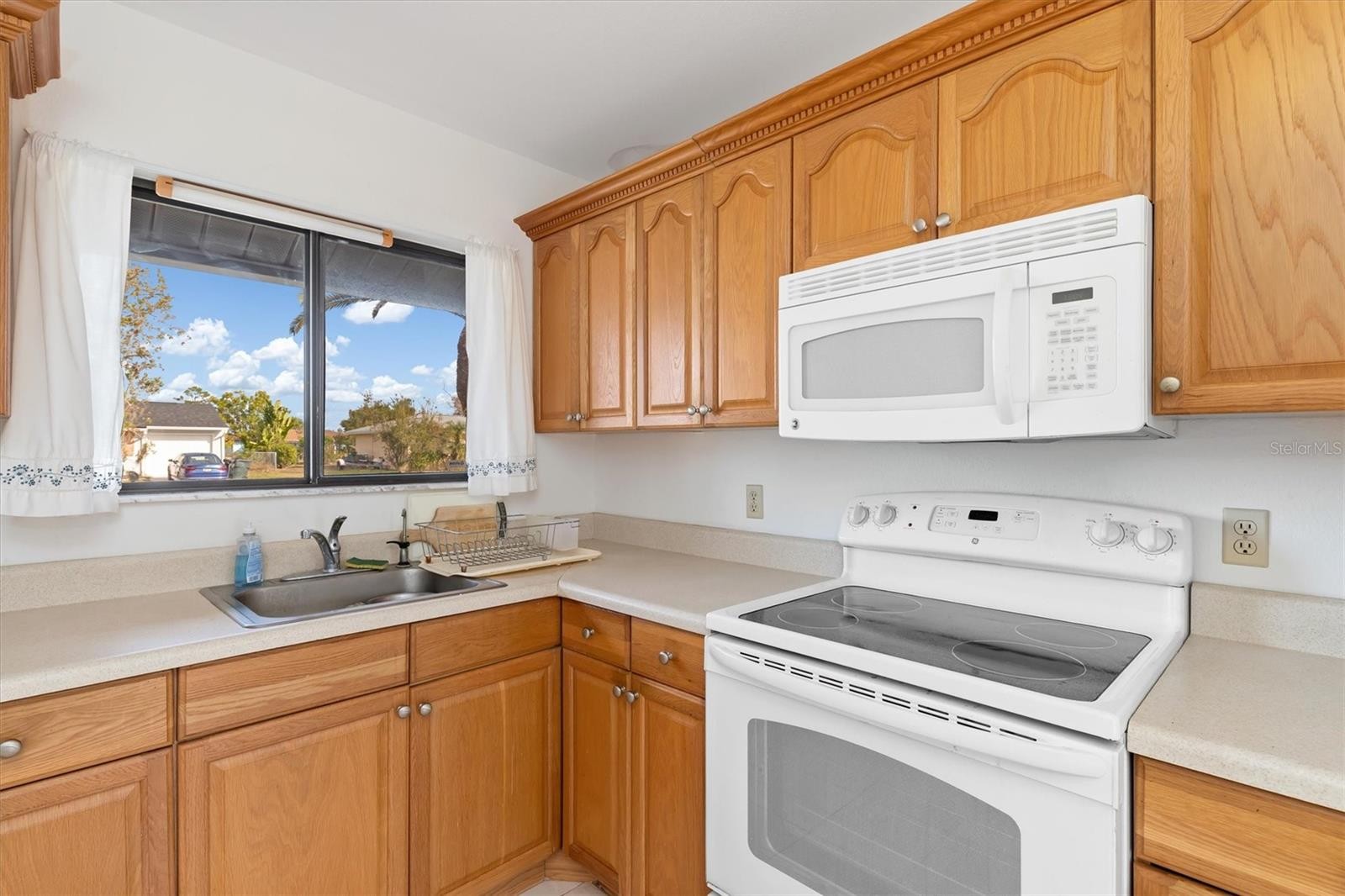 Step inside this neat, move-in ready home and feel the comfort from the very first moment. This well-kept property offers 2 bedrooms, 1 bathroom, and a 1-car garage, all designed for easy living and everyday enjoyment. With tile flooring throughout the main areas, the home feels clean, cool, and simple to maintain. Soft carpet in both bedrooms adds warmth, while ceiling fans help keep the air moving year-round. The layout flows smoothly from room to room. A cozy living room opens into a dining area that connects to the eat-in kitchen, creating a bright and open feel. The kitchen stands out with rich wooden cabinets topped with crown molding, plenty of storage space, and a sleek glass-top stove that makes cooking a breeze. Whether making a quick meal or enjoying a slow morning, this kitchen delivers both style and function. Two sets of sliding glass doors bring in natural light and lead straight to the backyard. Step outside and enjoy peaceful views of the woods, offering a calm setting with extra privacy. The patio deck is perfect for grilling, relaxing, or enjoying the outdoors. Mature landscaping frames the property with colorful flower beds, palm trees, shrubs, and bushes along the property line, giving the yard a polished and cared-for look. The bathroom features tile flooring and a shower and tub combination that blends comfort with classic design. The laundry room is conveniently located in the garage and includes both a washer and dryer, making daily tasks simple and efficient. This home is centrally located and close to city parks, the Boys and Girls Club, shopping, restaurants, and schools. Everything needed for daily life is just minutes away, adding to the overall convenience of the location. With charm, smart features, and a great setting, this home checks all the boxes. Clean, comfortable, and ready for its next chapter, it is easy to imagine life here. Call today for your private tour and see all this home has to offer.