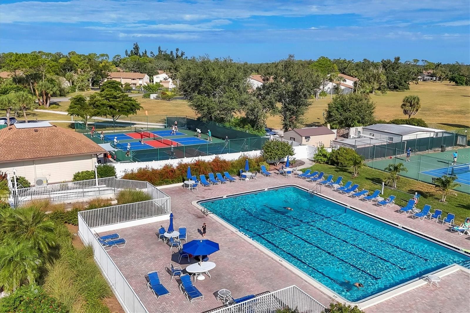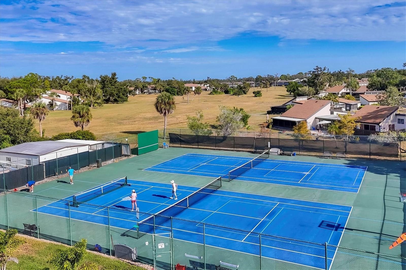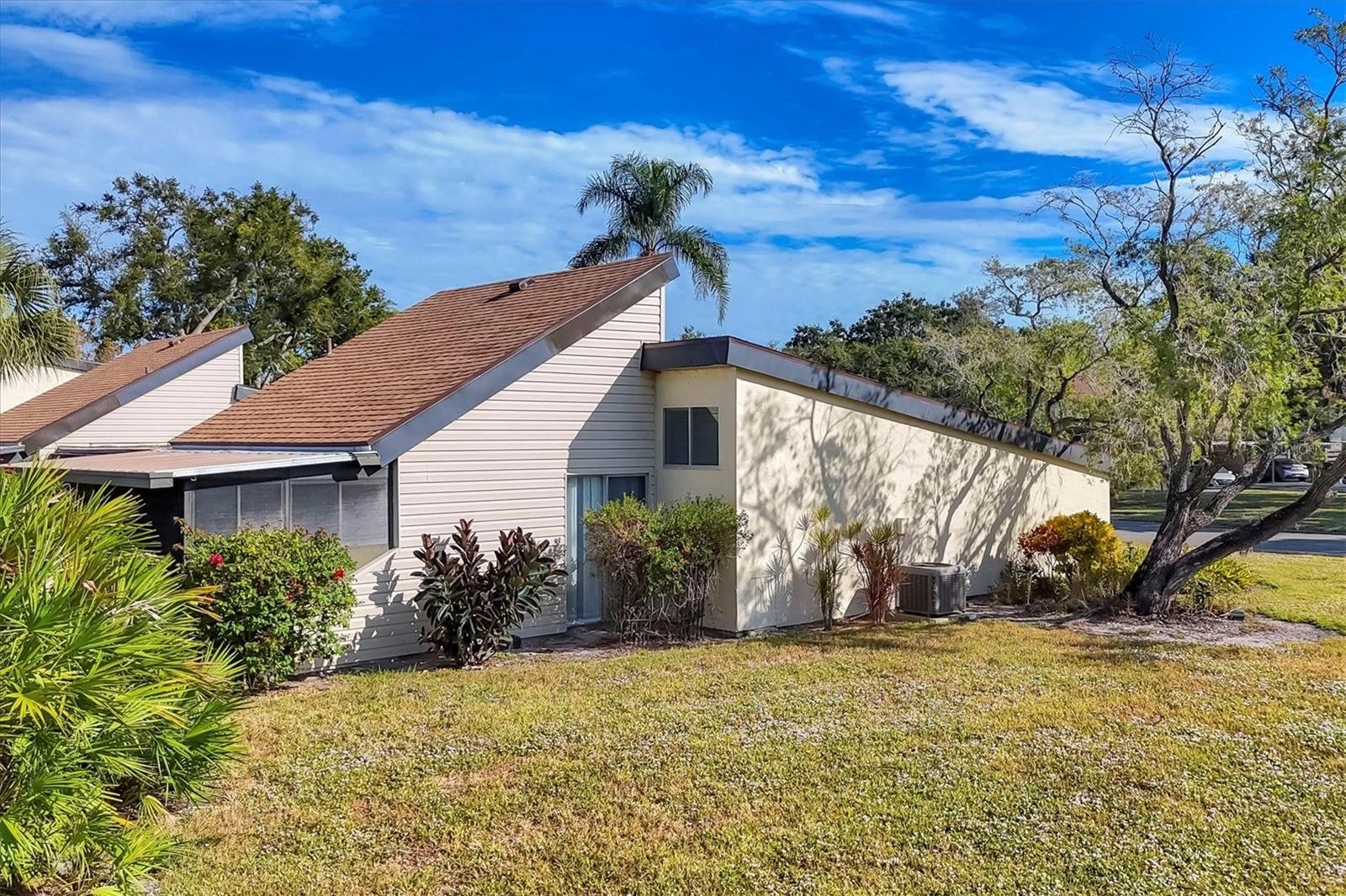 Live where every day feels like a vacation & with single floor living! Unique single-level Villa in Bird Bay Village’s Sea Grape community attached only by the carport for maximum privacy! This beautifully updated 2BR/2BA corner unit offers true one-floor living, soaring cathedral ceilings, and a thoughtful layout that blends comfort, function, and style. Step inside and feel instantly at home. The front screened lanai off the bedrooms offers a peaceful and private retreat—the perfect place to sip morning coffee, unwind with a book, or enjoy a gentle evening breeze. Out back, a private patio surrounded by lush green space invites you to create your own outdoor oasis for entertaining, small barbecues, or simply soaking in the Florida sunshine. Recent updates bring peace of mind with all-new piping, a 2023 roof, and luxury flooring throughout. The renovated bright kitchen features quartz countertops, tile backsplash, and GE Graphite appliances, while both bathrooms have been fully remodeled in contemporary style. The enclosed rear lanai adds valuable year-round living space with flexible use as a sunroom or reading nook. A standout feature, the tiled carport is enclosed with its own wall A/C unit—ideal for use as a workshop, studio, or craft area—and includes a Samsung front-load laundry pair plus additional storage. The private driveway provides easy parking for your vehicles. Bird Bay Village is known for its vibrant, resort-style lifestyle—heated Jr. Olympic-size pool, tennis, pickleball, bocce, shuffleboard, fitness center, library, meeting rooms, and a large clubhouse that hosts yoga, art, socials, and community events year-round. The community is set beside the Legacy Trail for walking, biking, or kayaking adventures, and centrally located just minutes from Venice and Nokomis beaches, boutique shopping, dining, golf, and the charming footbridge to Historic Downtown Venice Island. Located in Zone X (non-flood) and priced to sell, this unique villa offers a rare combination of privacy, convenience, and resort living—ideal for full-time residents or snowbird retreats. And yes, pickleball is huge here!
