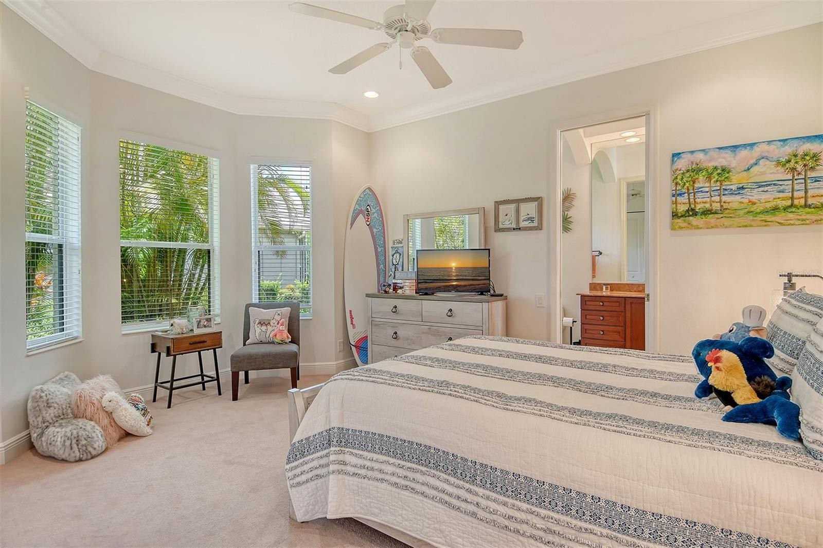 LOCATION, LUXURY, AND LIFESTYLE. Set within the desirable and beautifully manicured community of University Park, this executive residence offers an impressive 3,851 sq ft of living space, on an exceptionally private preserve lot, a true sanctuary of peace and exclusivity. Custom-designed double wood entry doors welcome you into a bright, airy interior filled with natural light. The main living spaces have enriched wood flooring, crown moldings, custom built-ins, and a striking marble-surround fireplace which is perfect for cozy Florida winter evenings. The newly updated kitchen is a chef’s dream, featuring two built-in ovens, a 6-burner gas cooktop, custom two-tone cabinetry, quartz countertops, a stone tile backsplash, slate-topped center island, and top-of-the-line appliances. A large walk-in butler’s pantry provides exceptional additional storage. The kitchen’s updated design flows seamlessly into the spacious family room, highlighted by a custom-paneled feature wall and new tile flooring. Sliding doors open wide to the outdoor patio, extending the indoor living space, ideal for entertaining family and friends. The den/office offers additional custom built-ins and another set of sliders, filling the space with natural light and extending the living area onto a second covered outdoor retreat. The expansive custom pool area is fabulous, designed for both relaxation and effortless entertaining. Enjoy one of the largest pools in University Park, complemented by a spa, a waterfall, lush decorative plantings, paved flooring and two covered outdoor seating areas ideal for year-round enjoyment. The outdoor kitchen makes gatherings a delight, while hurricane shutters provide added peace of mind. Outside, a paved circular driveway leads to an oversized garage with impressive storage capacity and its own dedicated rear golf-cart access door. Continuing through the home the primary suite is a luxurious retreat complete with custom moldings, tray ceiling, bay-window sitting nook, custom built-ins, and two oversized walk-in closets custom fitted with dressers and exceptional storage. The spacious primary bath includes a walk-in shower, a separate soaking tub, and dual vanities. Having additional guest bedrooms thoughtfully located on the opposite side of the home for added privacy, are equally inviting. Each generously sized bedroom features charming bay-window sitting areas and convenient access to ensuite bathrooms. This home offers an array of features, including an impressive utility room with abundant cabinetry and dedicated folding space, a desk/office area, a dry bar with a double wine cooler, central vacuum system, ample storage, and an oversized double garage complete with fitted cabinetry as well as a separate golf-cart parking area with door. Major updates include a brand-new roof (2025), two A/C units (2018), 20kw whole house genterator (2024) and a hot water heater (2016), ensuring comfort and peace of mind. All of this is nestled in a community known for its lush landscaping, refined ambiance, and newly remodeled amenities to include the clubhouse, championship golf course and pro shop, restaurant with al fresco dining, tennis facilities, and fitness center. Perfectly positioned near shops, dining, sports venues, downtown Sarasota, and world-famous Gulf beaches, this home delivers an unmatched blend of privacy, elegance, and convenience. This home or community will not disappoint!