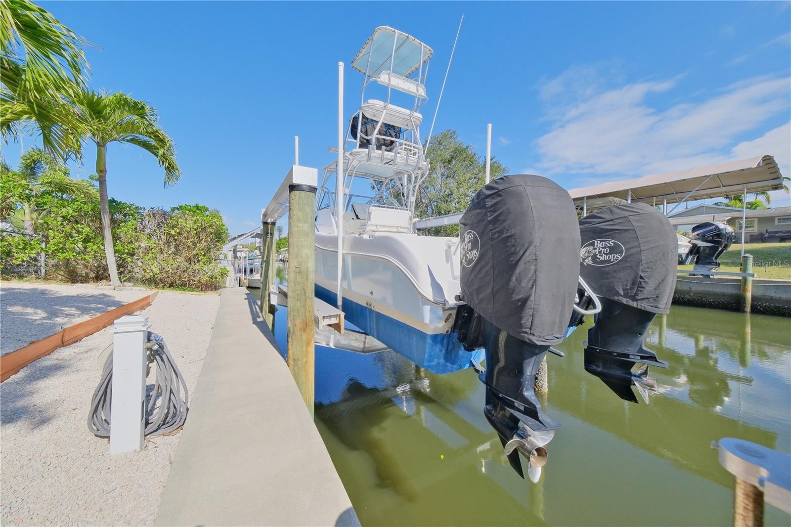 This tropical adventure home is the one you've been waiting for, where everyday living is a waterfront vacation!! This fully updated 2,400 sq ft, 4 bedroom/3 full bath home, is nestled on a deep, sailboat water canal with direct access to Sarasota Bay and the Gulf of America (no bridges) - a boater’s paradise with wide, unobstructed access to sandbars, deep-water fishing, water sports, waterfront restaurants, beaches and more - all within minutes!! Enjoy 70 FEET of water frontage on this canal (with extra-wide width)! In 2020, a NEW DOCK, NEW 16,000 lb. BOAT LIFT!! NEW SEAWALL (with EVERLAST vinyl (2015), and a fish cleaning station was completed!! You'll experience peace of mind here with a NEW ROOF!! NEW A/C (1 unit), 2-A/Cs. for zoned efficiency, impact-resistant windows, 2-Newer hot water heaters, newer appliances throughout! There is WHOLE-HOME GAS ENERGY for huge savings (also has full electric for flexible options). This home was never affected by Hurricanes nor storm surges! Entering the home, you'll be greeted with with an OPEN FLOOR PLAN, NEW TILE THROUGHOUT, NEW large, CUSTOM KITCHEN with REAL WOOD CABINETS and generous, STONE COUNTERTOPS and bar seating! The dining/flex space is currently enjoyed as a game room with a pool table perfectly situated for family and friends to have fun. There are TWO generously-sized PRIMARY bedrooms (en suites) with updated bathrooms offering many flexible options for guests or mother-in-law suite possibilities. There is a spacious, indoor laundry room. Don't miss all the hall closets that were smartly added during 2003 renovations. Step into the heartbeat of this exceptional home - the EXPANSIVE, UNDER ROOF/SCREENED LANAI! This sanctuary offers year-round enjoyment of endless sunsets overlooking the canal and is embraced by the tropical retreat of the upgraded grounds and rich, tropical landscaping. Whether your entertaining large gatherings with Al fresco dining or taking a rest after boating/fishing with family, this large space is set-up for it all with brand new tile flooring, large outdoor kitchen/bar, gas stove cooking (perfect for your fish), refrigerator, deep freezers (perfect for your fresh catch of grouper), and a commercial ice maker! There is ample space for a future pool. Bring your RV - there is dedicated parking on the side of home with vinyl gate/fencing. You'll appreciate additional parking spaces which includes a carport, extended and circular driveway. The yards have well-irrigation throughout (more savings). There are NO HOA/NO DEED RESTRICTIONS - (NO FEES), but residents of Bayshore Gardens enjoy an amenity-rich community with an Olympic-sized pool (only $10/year key fob access), pickleball, tennis, basketball courts, playgrounds, a woodshop, private marina, and boat launch. This home is located in a coveted location with convenient access to award-winning beaches, Anna Maria Island, Siesta Key, SRQ Airport, IMG Academy, Downtown Sarasota dining and shopping and dining. Homes like this at this price point, with direct Gulf access and waterfront/canal living, do not last long, so schedule your private showing today and let your ultimate, Florida waterfront lifestyle begin! Be it a full-time home, vacation retreat, or an income-producing rental (short term rental IS allowed), you'll quickly see the unrivaled value this home has to provides for waterfront living in Bradenton/Sarasota! Pool table, 2 deep freezers, commercial ice maker, remain! Furnishings are negotiable!