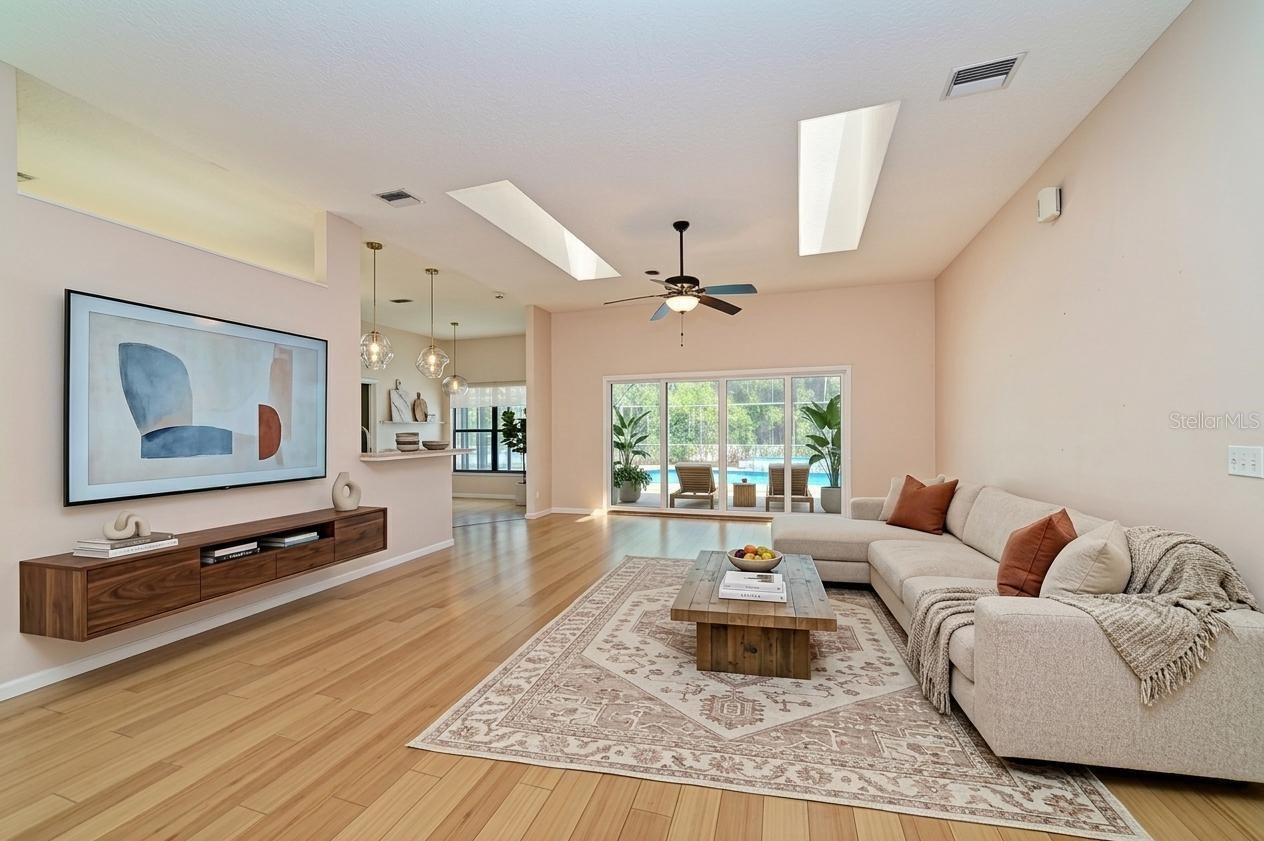 One or more photo(s) has been virtually staged. Palmetto pool home with impact sliders, hurricane shutters, preserve and water views, screened cage, refinished pool deck, and no rear neighbors—just minutes from Parrish. No flood insurance required (Zone X). This 3-bedroom, 2-bath home in Heather Glen offers an open floor plan with bright, connected living spaces designed for everyday comfort and easy entertaining. The outdoor setting stands out with a newly refinished pool deck overlooking preserve and water, creating a more private and peaceful backyard than many nearby homes. Inside, the layout flows naturally to the outdoor space, maximizing indoor-outdoor living. The large garage includes a dedicated workshop area, adding flexibility for storage, hobbies, or projects. Located in Flood Zone X (low-risk area). Low HOA fees help keep ownership more affordable. Ideally positioned near Parrish, one of Manatee County’s fastest-growing areas, you’re close to new restaurants, shopping, schools, and everyday conveniences while still enjoying a quieter residential setting.