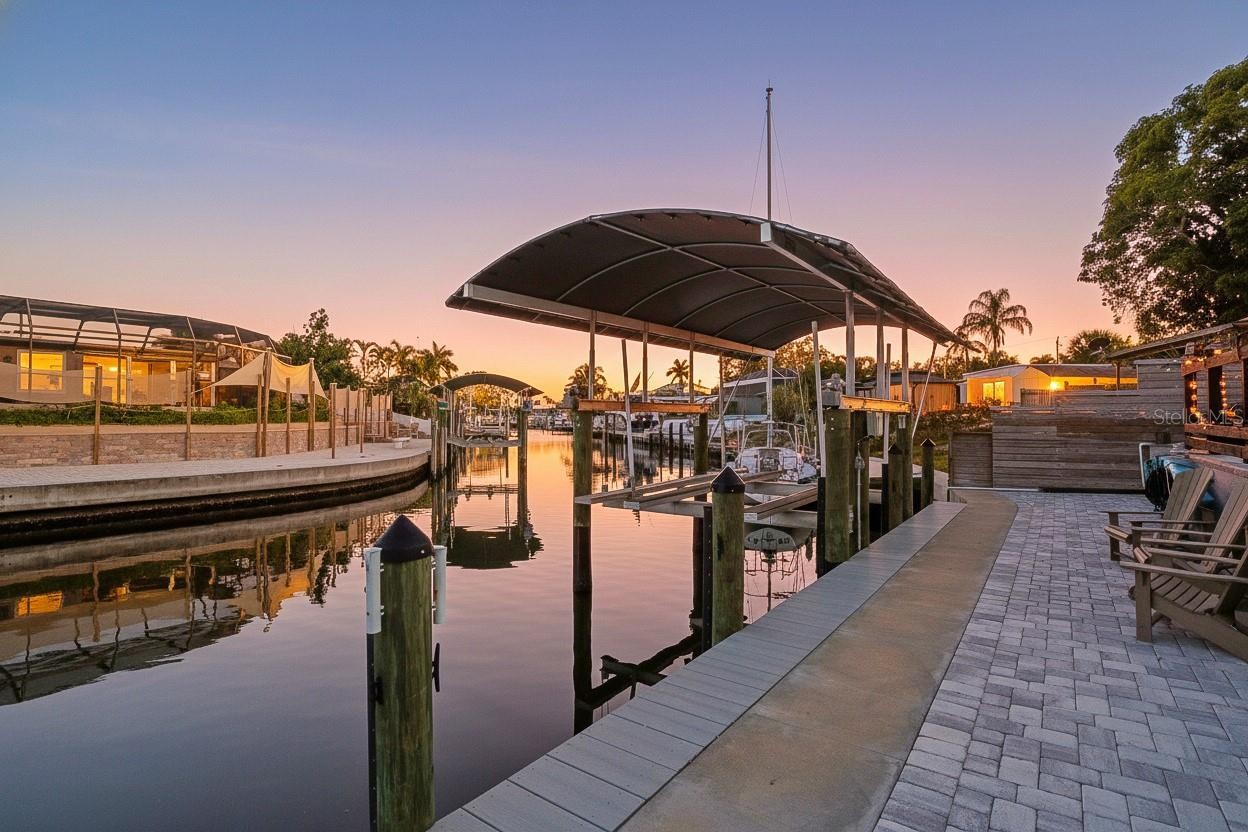 Paradise Found! Waterfront doesn't always have to come with a $5 million dollar price tag! Fully remodeled waterfront oasis just mere minutes of a boat ride from Sarasota’s best beaches, downtown, Longboat Key, and Anna Maria Island. Experience the ultimate Florida coastal lifestyle in this stunning, completely remodeled 4-bedroom, 3-bathroom canal-front home offering 2,498 sq ft of modern luxury and effortless indoor-outdoor living. Located on a quiet cul-de-sac with direct Gulf access and only a quick 5-minute boat ride to Sarasota Bay (no fixed bridges!), you’re perfectly positioned between world-famous Siesta Key Beach, charming Anna Maria Island, vibrant downtown Sarasota, and the upscale boutiques and dining of St. Armand’s Circle—all within a 15–25 minute drive. Step inside to bright, open-concept living with durable tile-plank flooring throughout, a gourmet kitchen featuring sparkling quartz countertops, soft-close cabinetry, and stainless appliances, plus a spacious great room that flows seamlessly to the waterfront lanai and pool area. Inside the master retreat you'll find water views, sliders to the screened in lanai, his and her dual sinks, stand alone tub for relaxing nights, large walk-in shower, and a walk in closet. The split-bedroom floor plan provides privacy for owners and guests alike, with generous closets and beautifully updated baths. Your private backyard resort awaits: Saltwater pool with energy-efficient Hayward variable-speed pump, 53 ft of deep-water canal frontage with newer vinyl seawall panels, 10,000 lb remote-controlled power boat lift - bring your yacht or center-console and be on the open bay in minutes! Expansive paver patio with outdoor kitchen, multiple entertaining areas and tropical landscaping with nighttime accent lighting. Additional stand-out features: Oversized driveway + covered 4-car carport (perfect for toys, guests, or RV/boat trailer parking). Newer 5-ton A/C system and tankless water heater for year-round comfort and efficiency. Full ADT security system with exterior cameras and motion-activated lighting. No HOA, no CDD fees — true freedom to enjoy your property your way. Community perks include a freshly remodeled clubhouse and amenities (updated 5–6 years ago), an optional marina with wet-slip rentals, and a private boat ramp for just $80/year. Whether you’re looking for a full-time residence, a vacation retreat, or an income-producing seasonal rental, this turn-key waterfront gem delivers the best of Sarasota living: quick access to sugar-sand beaches, boating freedom, SRQ Airport, IMG Academy, and downtown culture - all without the restrictions or fees. Homes like this, with direct Gulf access and this level of recent renovation, rarely last long. Schedule your private showing today and start living the saltwater dream!