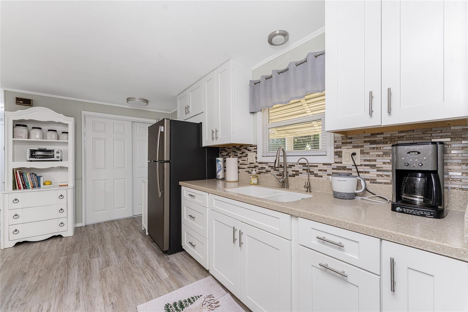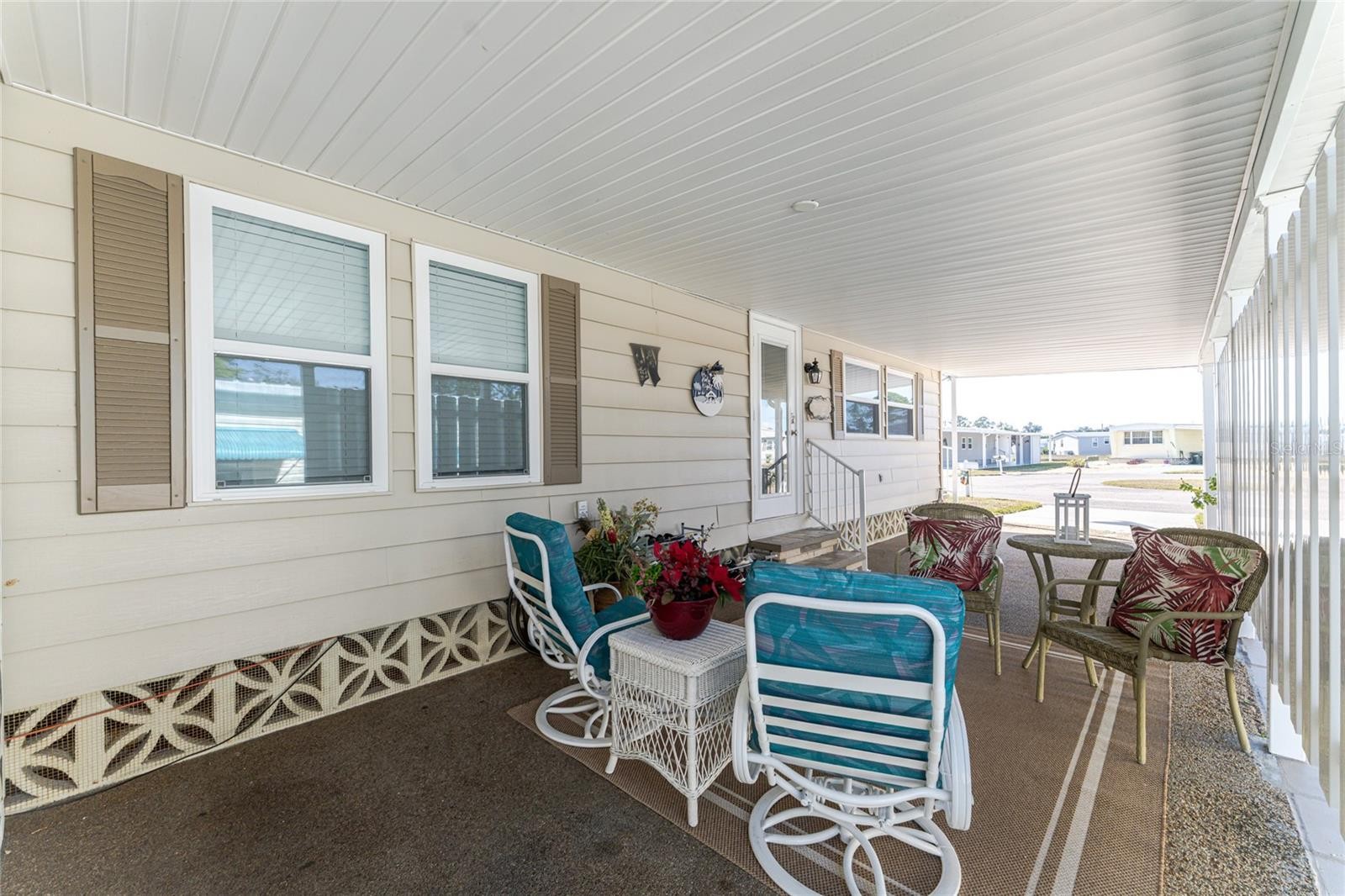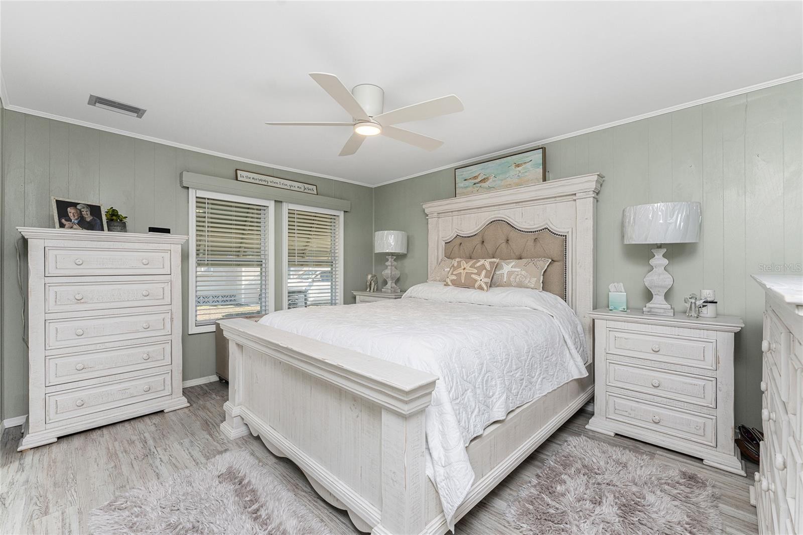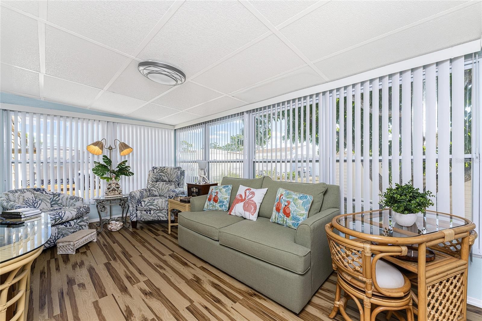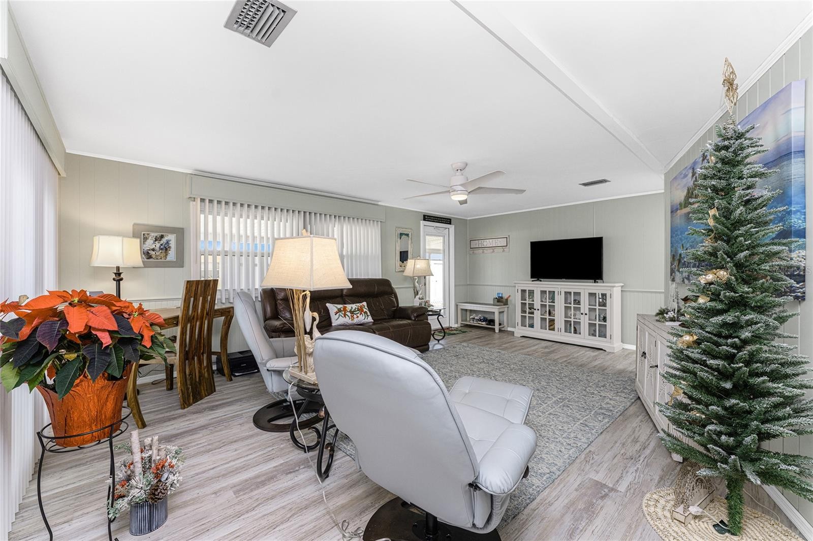 Totally updated, upgraded 2 bed/2 bath manufactured home on deeded land in the Holiday Park Pet Section. If you would like luxury in your future in a robust community, this one is for you! New vinyl windows, hickory vinyl plank flooring, and updated bath w/new shower and toilet. The updated primary bedroom has a huge closet, and the second bedroom has both a walk-in and wall closet. The kitchen boasts white cabinetry, Corian countertops, new backsplash and a water filtration system at the sink. There is a laundry closet in the kitchen with a wash and dryer. Storage space abounds. Holiday Park's prime location provides easy access to shopping, dining, numerous golf courses, sports facilities and SW Florida's world-renowned beaches. Schedule a showing to experience the best of 55+ living! Holiday Park is not an HOA - it is run by the Holiday Park Park and Recreation District with a monthly assessment rate of $195.00 added to the annual taxes.