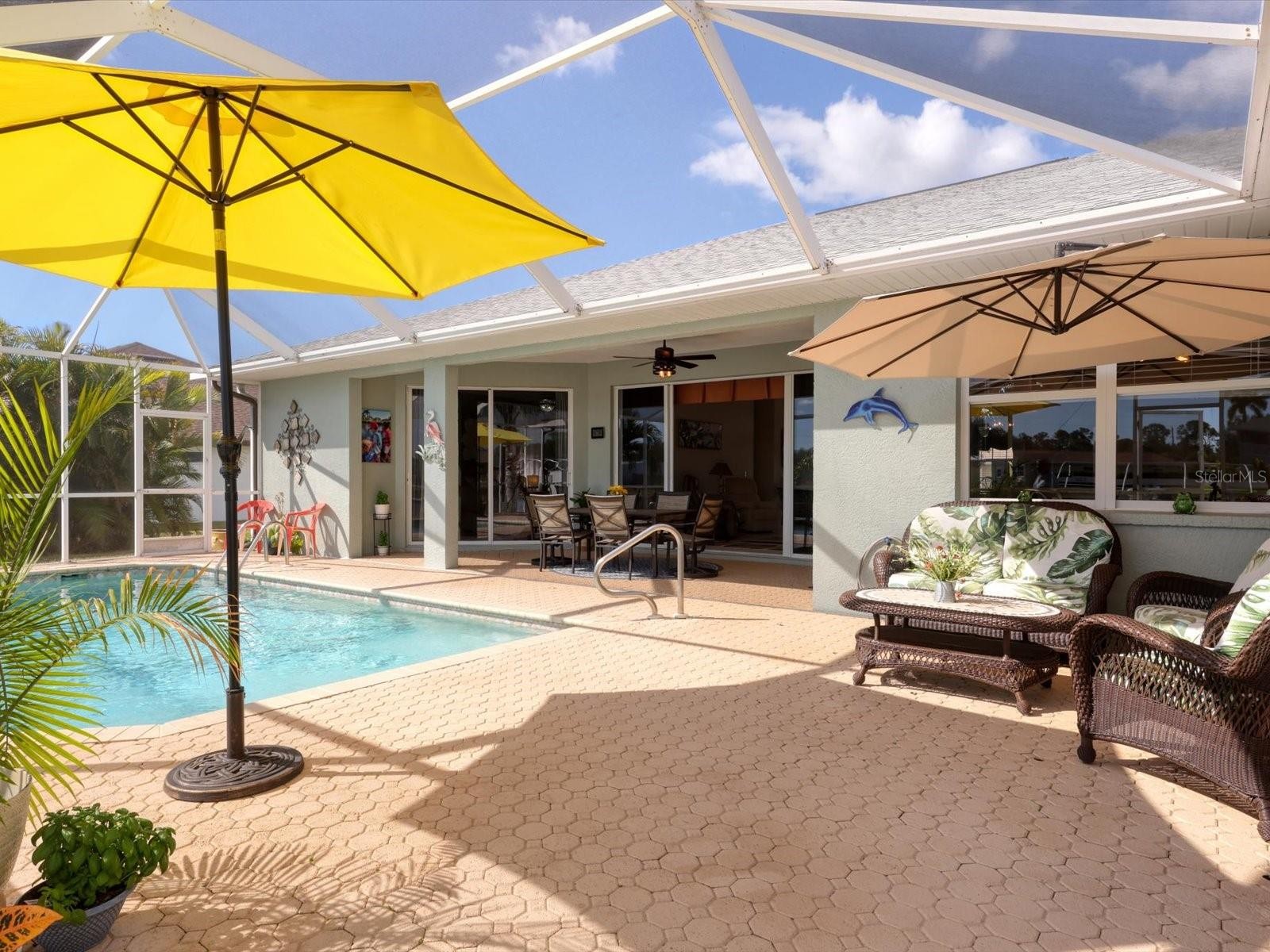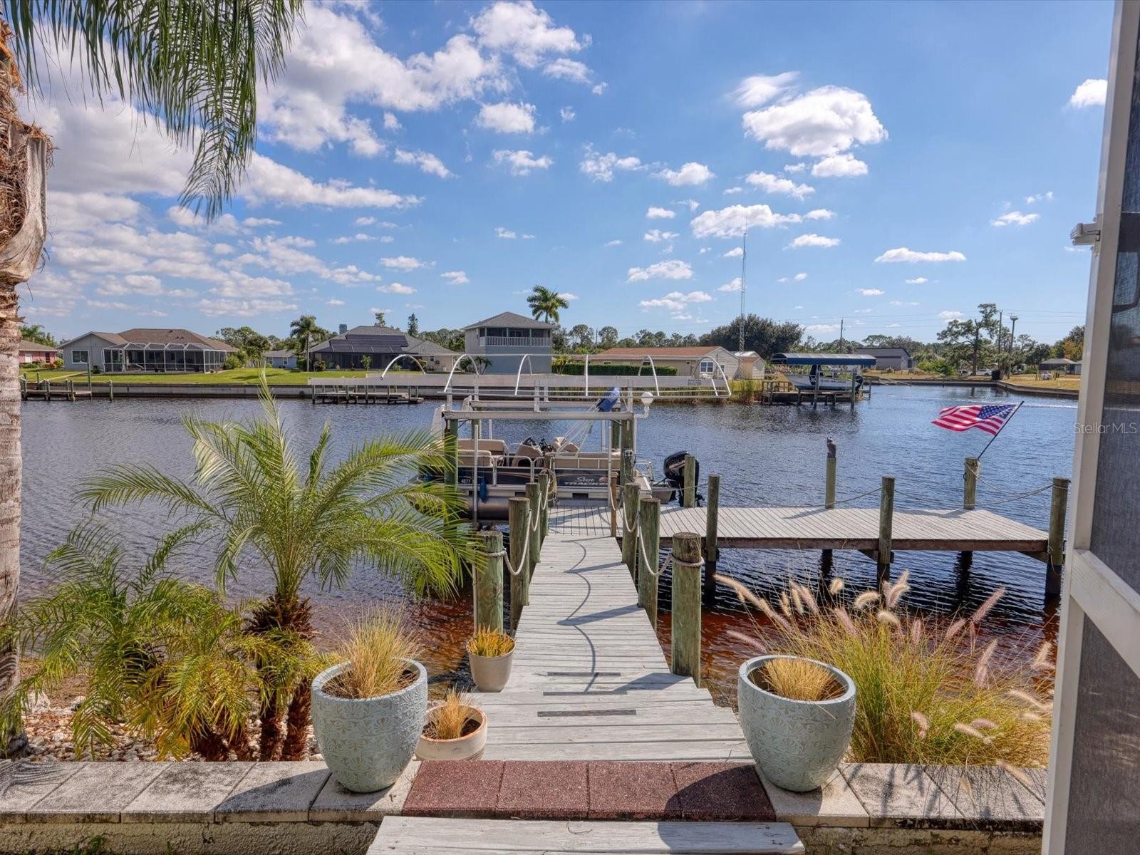 Experience the pinnacle of Florida waterfront living in this ***METICULOUSLY MAINTAINED DEEP WATER CANALFRONT HOME*** offering over 100 feet of prime canal frontage with direct access to the Myakka River and Gulf. Thoughtfully and personally remodeled throughout, this 3-bedroom, 2-bath residence blends refined design with relaxed coastal comfort, creating a home that feels both luxurious and welcoming. The open-concept floor plan is enhanced by soaring cathedral ceilings and hand-selected finishes that elevate the custom character of the home. Every room is positioned to capture gorgeous water views, overlooking the inviting pool and outdoor entertaining area—an ideal backdrop for both everyday living and hosting guests. The kitchen is a true centerpiece, featuring expansive granite countertops perfectly suited for meal preparation, casual gatherings, and entertaining with ease. The primary suite is a peaceful retreat, filled with natural light and offering private access to the lanai—perfect for enjoying morning coffee or unwinding as the evening skyline reflects on the water. The ensuite bath features dual vanities and luxurious finishes designed for comfort and style. Outdoors, lush tropical landscaping surrounds the property, creating a serene island-inspired atmosphere. Boating enthusiasts will appreciate the large private dock with boat lift, providing effortless access for fishing, kayaking, or cruising the waterways. For the "land legs" this home is conveniently close to some of the area's popular destinations, including the renowned Warm Mineral Springs. Close to a variety shopping, dining, and entertainment, while nearby Gulf beaches and golf courses and endless options for relaxation and outdoor enjoyment—creating the perfect balance between relaxation and an active coastal lifestyle. Luxury, comfort, and an exceptional waterfront lifestyle come together seamlessly in this remarkable property.