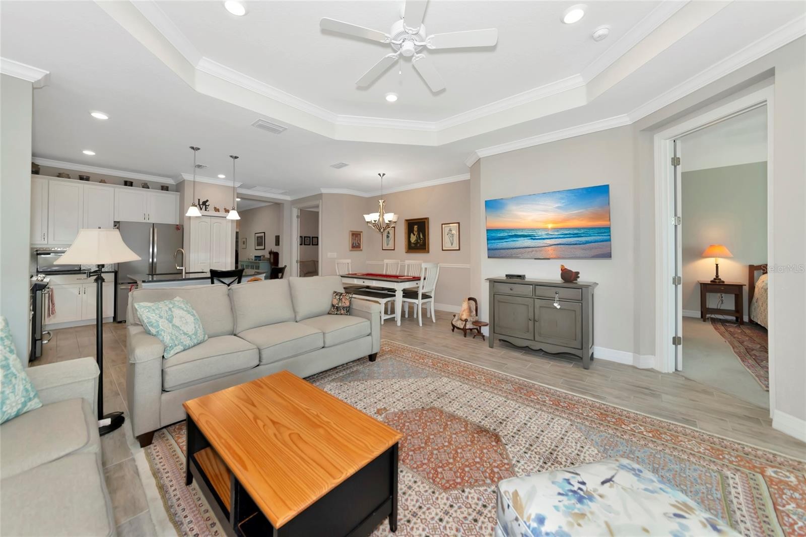Are you ready to make the move! This Beautiful villa checks all the boxes for Florida living and it's the best value in Mirabella! Mirabella is 55+ gated community located in desirable Village Green in West Bradenton. Built in 2018 with Hurricane Impact Windows and Trifold Slider, there was no damage from 2024 storms! FLOOD ZONE X. NO FLOOD INSURANCE REQUIRED. The photos were taken with furnishing, the villa is now unfurnished and READY FOR YOUR IDEAS AND STYLE! Come see it and make it your own!! The 3 bedroom plus BONUS ROOM is planned perfectly. The center entry foyer opens to the heart of the home, perfect for entertaining or simply relaxing. The kitchen features a gas stove, granite counters and an island for casual dining open to the great room. The great room features a high tray ceiling and plantation shutters. The adjacent BONUS ROOM may be used as a formal dining room, media room, office, craft/game room, library, so many possibilities! Triple hurricane sliders open to the screened lanai, a perfect spot for morning coffee! The split bedroom plan affords privacy for guests and owners. The master bedroom, with en-suite bath, overlooks a brick patio area. The en-suite bath has 2 closets, double vanities and a step in shower. Crown molding throughout, high ceilings and 8 ft, doors show attention to detail. Mirabella has amenities for an active lifestyle! Join in for water aerobics, work out in the fitness center, play pickleball on the park courts, take a walk or bike ride on the spacious grounds. Mirabella is pet friendly, with pets and owners socializing in the dog park. Mirabella's location is another standout feature. You are short drive to the beaches on Anna Maria Island and you are just minutes away from dining, Fresh Market, Publix and Target. So close to everything yet harbored in a lovely, gated community. LOW HOA. MAINTENENCE FREE. MOTIVATED SELLERS. This could be the perfect place for you!