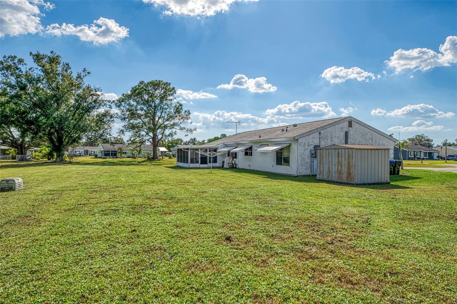 Beautifully updated home on a quiet cul-de-sac in North Port, FL! Located in the desirable Jockey Club community, this 3-bedroom, 2-bath, 2-car garage home offers a wonderful mix of charm, comfort, and practical upgrades. Enjoy low HOA fees with access to a clubhouse, pool, tennis court, and more—all in a peaceful setting that feels tucked away yet close to everything North Port has to offer. Sitting on a pie-shaped oversized lot, this home provides extra space and privacy. There’s even an additional side parking area—perfect for an RV, boat, or other toys—and a large shed for extra storage. The yard has been completely cleared and ready for your personal touch, offering room for gardening, entertaining, or simply relaxing in your own outdoor retreat. Step inside to find coastal-inspired paint colors that create a bright, cheerful atmosphere throughout. The open living and dining area flows effortlessly into the kitchen, which features solid stone countertops with bits of sea glass, soft-close wood cabinetry, recessed lighting, and appliances only four years old. The bonus room adds flexibility for a hobby space, den, or office—whatever suits your lifestyle. Both bathrooms are tastefully designed, with the primary bath offering a walk-in shower and the guest bath featuring a tub/shower combo. The indoor laundry area is conveniently tucked away in a storage closet for a clean, uncluttered look. Flooring throughout is laminate for easy maintenance, with tile in both bathrooms. Step into the screened lanai with vinyl windows, making it a year-round space to enjoy the Florida sunshine. There’s also a screened front porch that allows a pleasant cross-breeze during cooler months. This home has been meticulously maintained with big-ticket updates already done for you: Roof (2018), New AC (2024) with all new ductwork and a 12-year parts and labor warranty, Replaced electric panel (2020) with updated outlets and plugs, New hurricane-rated garage door, Metal clamshells over windows that double as awnings and hurricane protection, City water and sewer with an under-sink reverse osmosis system, Partially furnished for added convenience. The garage offers extensive built-in cabinetry along all walls while still leaving room to park your car. This North Port gem combines comfort, quality, and peace of mind in one incredible package. With thoughtful upgrades, a spacious layout, and access to community amenities, this home truly stands out. Schedule your private showing today and see all that this beautiful property has to offer!