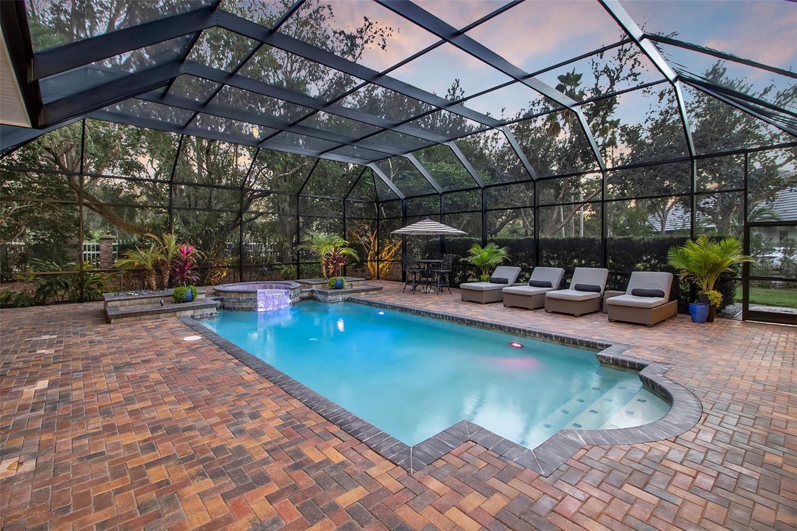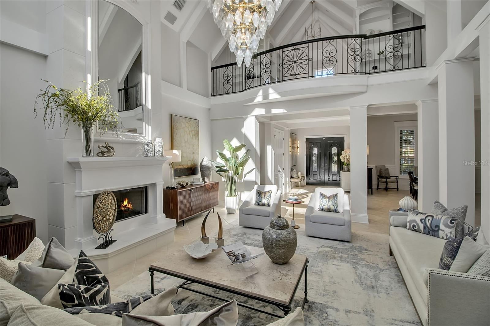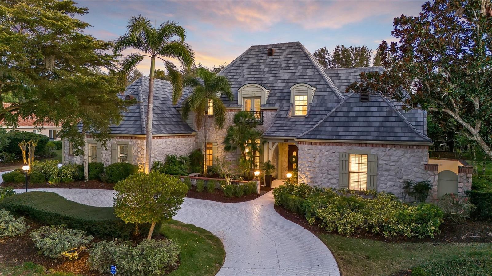 Where refined living meets effortless Florida elegance, this exceptional residence is a true signature home within Lakewood Ranch Country Club. Set amid lush fairways on a generous half-acre homesite, the property spans nearly 5,900 square feet and offers a rare blend of architectural presence, thoughtful design, and timeless appeal in one of Southwest Florida’s most coveted golf-course communities. Inspired by a distinctive French chateau design, the home is defined by soaring ceilings, rich detail, and superior craftsmanship throughout. The formal living room is a striking focal point, featuring vaulted ceilings with dramatic wood beam accents and expansive views that draw the outdoors in. Reception areas flow seamlessly, enhanced by elegant tile flooring, refined ceiling treatments, LED lighting, and all-new designer light fixtures, creating a cohesive and stylish atmosphere. A welcoming family room with custom built-ins opens via pocketing sliding glass doors to a private lanai overlooking the pool and gardens. The heart of the home is both functional and inviting. The kitchen was remodeled in 2023 with Taj Mahal quartzite countertops and is ideally positioned between the casual dining area and outdoor terrace, encouraging effortless indoor-outdoor living. Additional enhancements include interior and exterior repainting (2023), zone-controlled heating and cooling, a full-home generator, and a new roof completed in 2024—all reflecting thoughtful, meticulous care. Four generously sized bedrooms, each with en-suite baths, provide privacy and comfort. The primary suite serves as a serene retreat with direct lanai access, spacious walk-in closets, and a spa-inspired bath remodeled in 2025 with quartz countertops, elevating everyday living. Outdoors, the property offers a tranquil tropical setting with a saltwater pool resurfaced in 2022, a spa, and lush landscaping. A well-equipped outdoor kitchen and inviting fireplace anchor the covered living areas, providing a comfortable and restorative environment for relaxation or entertaining year-round. Located within the celebrated Lakewood Ranch Country Club, residents enjoy access to championship golf, tennis, fitness facilities, and a vibrant social calendar within a gated, impeccably maintained community—just minutes from top-rated schools, The Mall at UTC, and the beaches and cultural amenities of the Sarasota–Bradenton region.