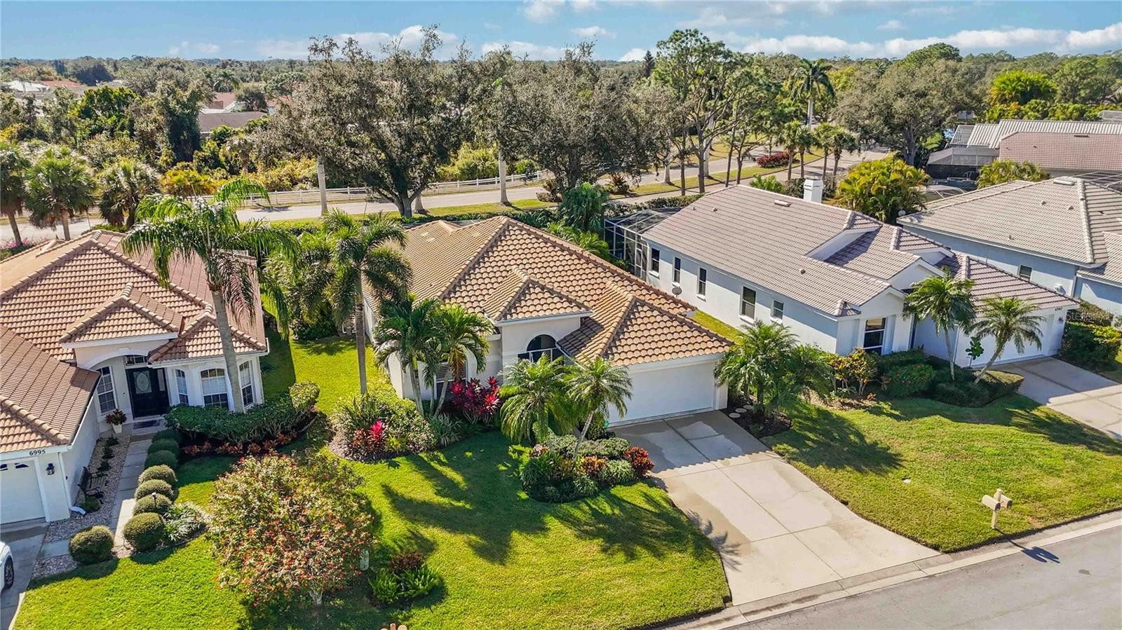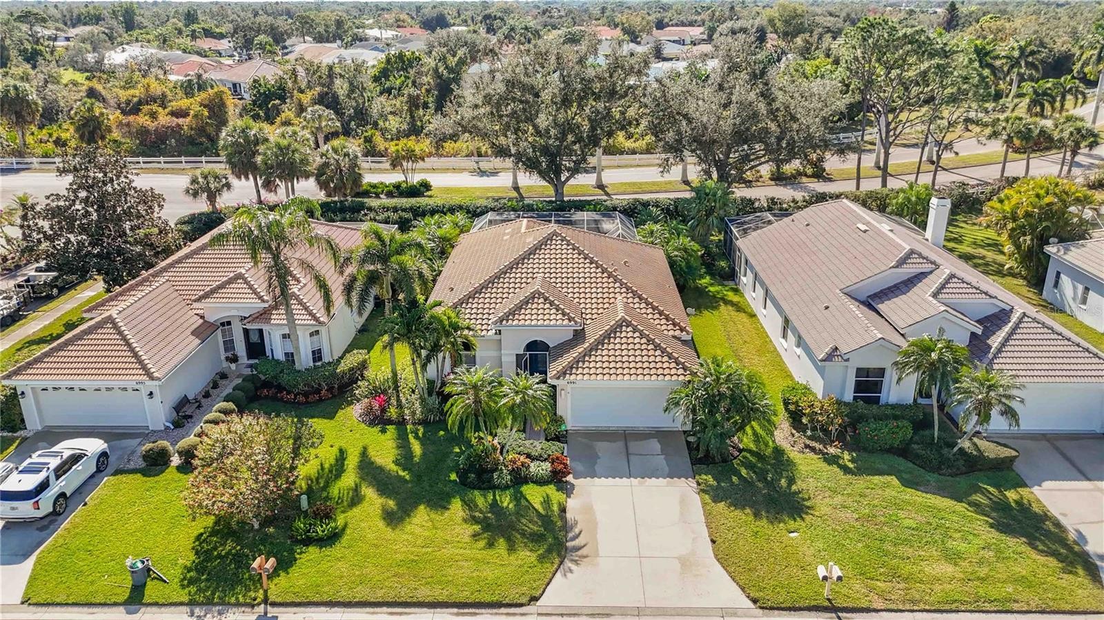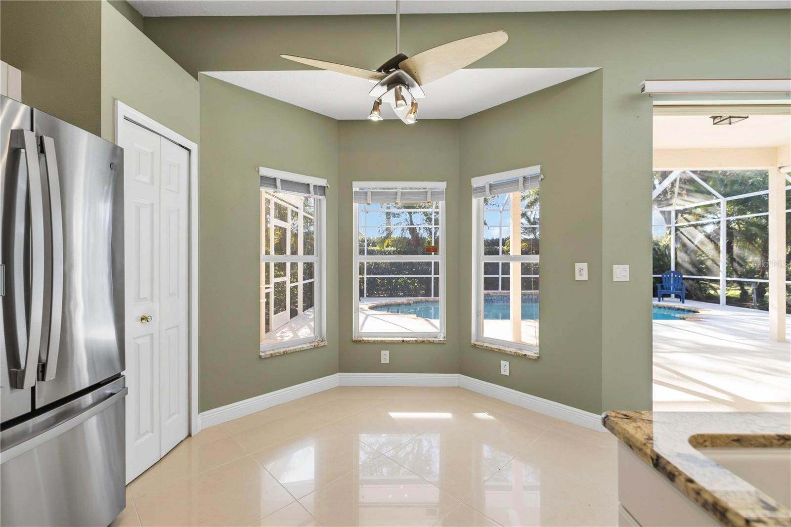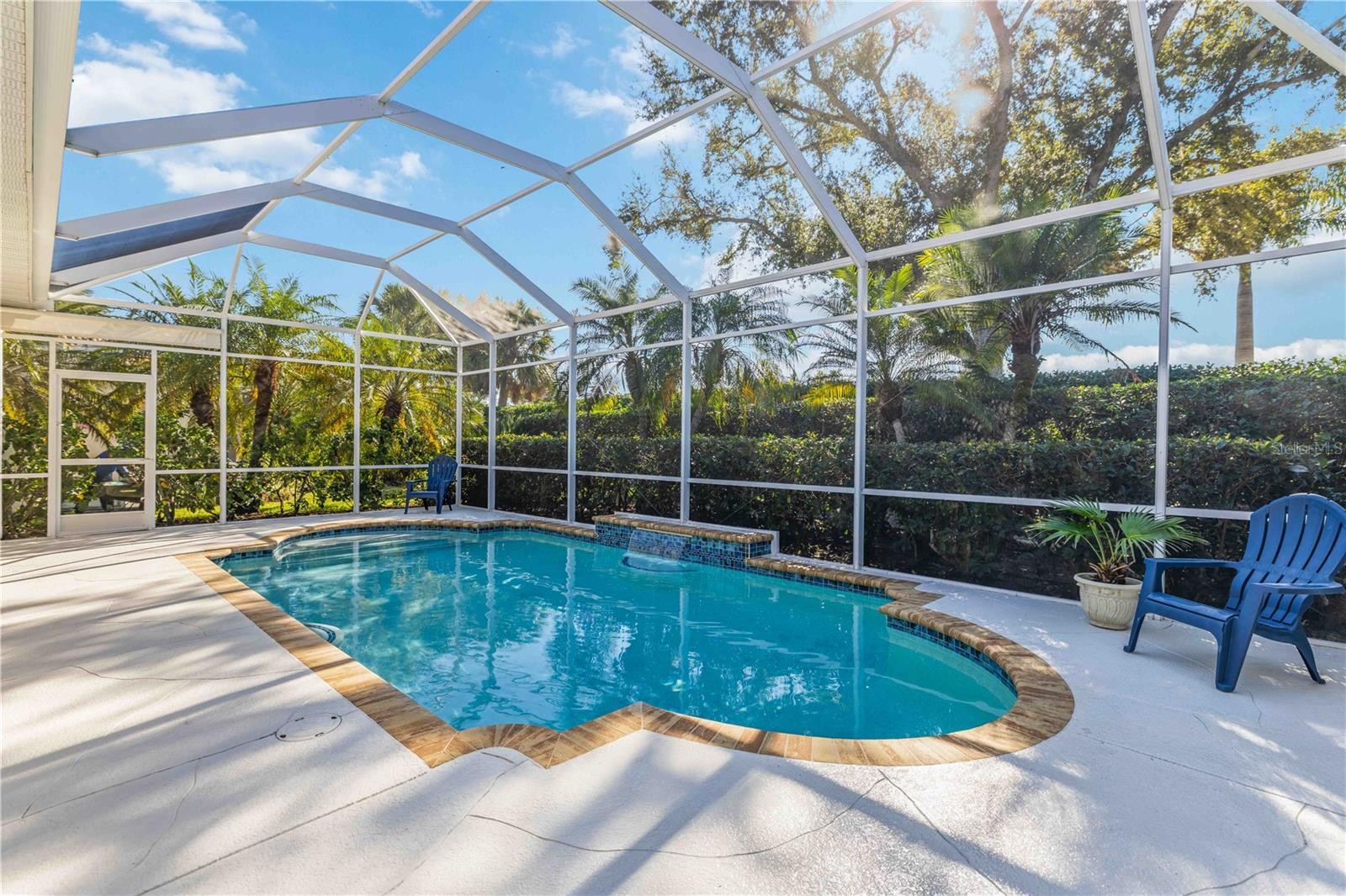 Absolutely gorgeous and impeccably maintained, this three-bedroom, two-bath great room home with a pool home is located in the highly desirable Mote Ranch community. Open, light, and bright, the home features soaring 10-foot ceilings and striking 24-inch neutral porcelain tile laid on the diagonal throughout the main living areas. Numerous upgrades enhance both style and peace of mind, including a new tile roof, new air conditioning system, Samsung French door refrigerator, Bosch ultra-quiet dishwasher, Samsung washer and dryer, GE drop-in range and microwave convection oven, and an energy-efficient variable-speed pool pump. Additional improvements include 3M hurricane film on windows and doors, hurricane wind panels, and a hurricane-impact rated garage door. The bathrooms have been tastefully updated with comfort-height toilets, new fixtures, and updated flooring. Outdoors, the resurfaced pool with water feature is surrounded by lush tropical landscaping, creating a private oasis with desirable southern exposure for all-day sun. Ideally situated west of I-75, this home is just minutes from UTC Mall, SRQ Airport, downtown Sarasota, and the area’s renowned white sand beaches. Mote Ranch offers outstanding community amenities including a large pool, fishing pier, and access to the Braden River with a kayak and canoe launch. Enjoy low HOA fees, no CDD fees, and the option to join the nearby Palm Aire Country Club with golf, tennis, pickleball, fitness, and social memberships. This exceptional home truly belongs on your must-see list. Close to Siesta Key, Longboat and Lido Keys, St Armands Circle, UTC Mall, Downtown Sarasota and much more!