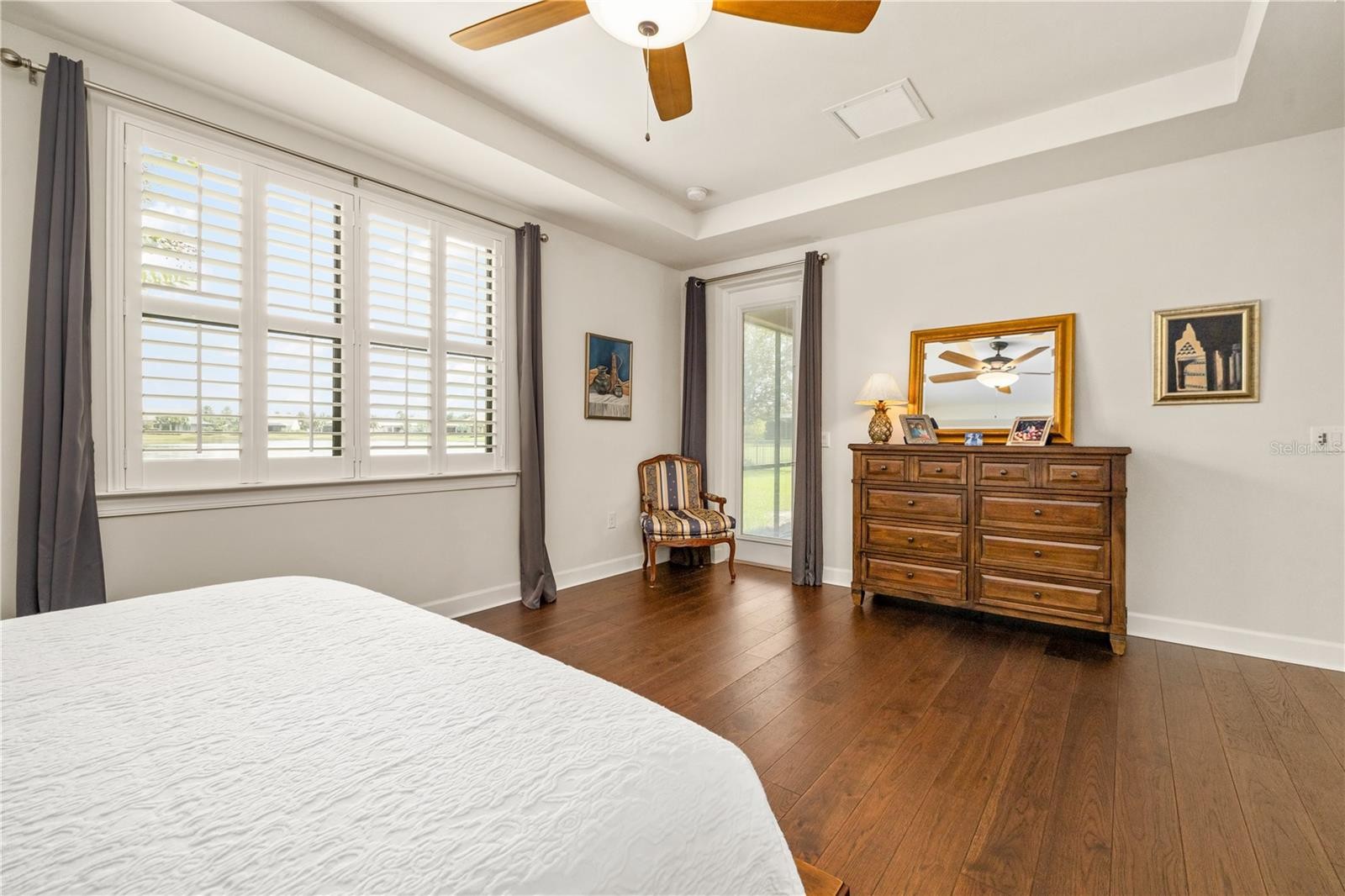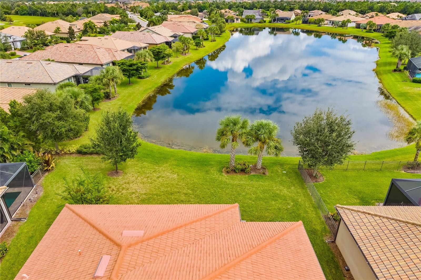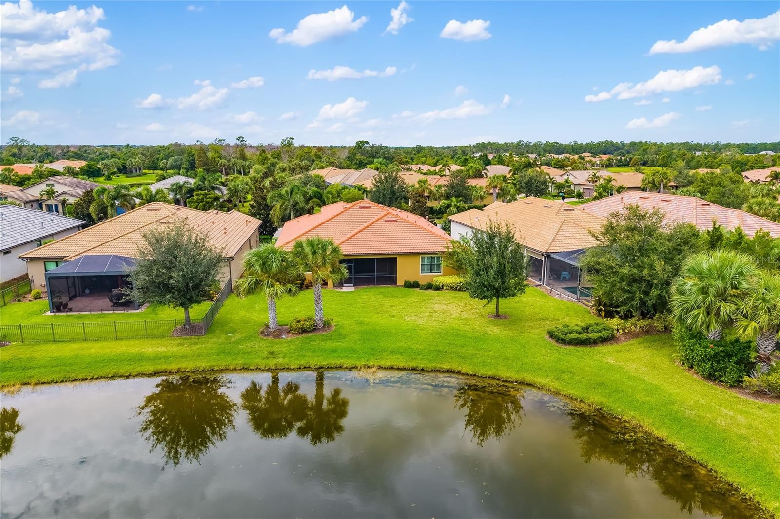 Welcome to the Dell Webb 55+Community! This stunning~3 Bedroom,~3 Bathroom ~office/den~3 car Garage home features the desirable PINNACLE floor plan. It's packed with fabulous upgrades, including IMPACT WINDOWS AND DOORS, GENERAC GENERATOR, and elegant Plantation Shutters. Nestled alongside a pond, this home boasts a long water view that adds to its charm. EVERY bedroom includes Walk-in closets with built-ins, and the master suite features an Oversized closet for ample storage. Enjoy the beauty of porcelain tile flooring throughout, complemented by engineered hardwood floors in the bedrooms. The 20 x 27 Great Room is perfect for Entertaining and Family Gatherings. Tray ceilings in the Master Bedroom, Guest bedroom and Office. The Gourmet kitchen showcases Antique White Wood Cabinets and Drawers, Tile backsplash, along with a spacious Pantry with all built ins and a large eat-in area overlooking the tranquil water view. The paver lanai offers plenty of room for potential pool addition. The three-car garage with epoxy floors is great for a golf cart or added storage also included is a Large Storage closet. This home is truly fabulous, with countless upgrades and situated in a vibrant neighborhood that offers a resort-style community Pool, Gym, Restaurant, and Exercise classes. Experience a lifestyle where every day feels like a vacation. Don't miss out on this incredible opportunity!