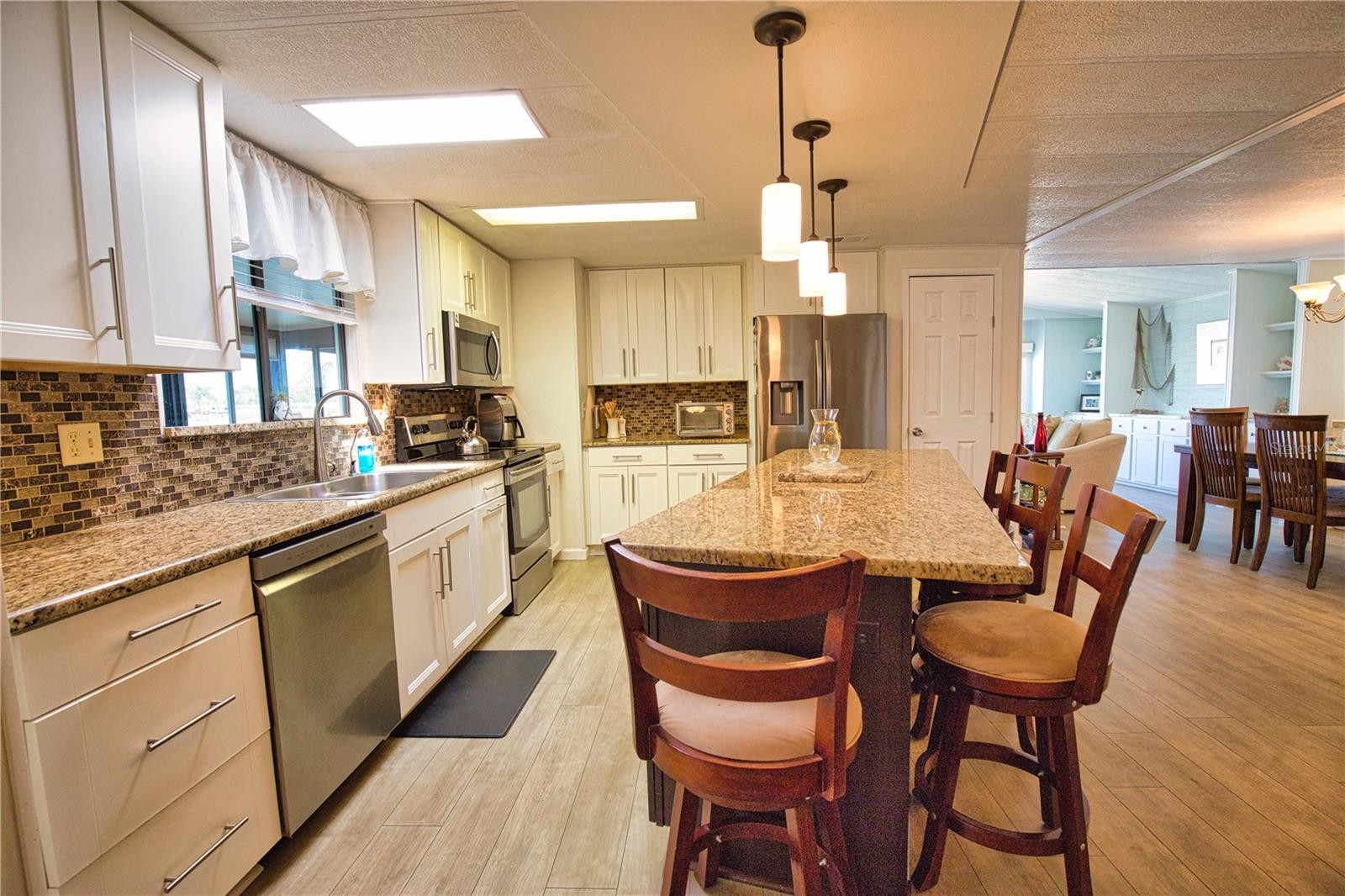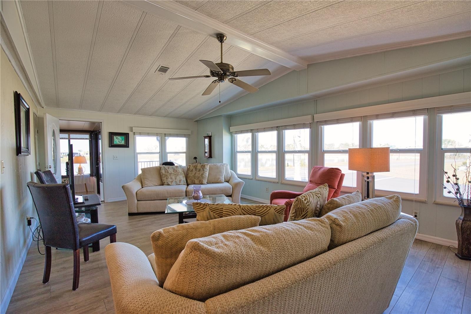 If you’re seeking a luxurious home with breathtaking lake views, look no further! From the moment you enter, you’ll be captivated. The welcoming entryway with built-in desk for your home office use leads to a spacious updated kitchen and family room featuring a stunning center island and ample cabinet space. The kitchen boasts new appliances, granite countertops, glass tile backsplash, and newer cabinets with soft-close drawers. The cozy family room flows into an exquisite under-air Florida room, perfect for entertaining. With three walls of windows overlooking one of our largest lakes, this will be where you and your guests will choose to spend most of your time! For more formal occasions the elegant living room and dining room offers sophistication with water views. The primary bedroom is a serene retreat with a walk-in closet and flows into an updated ensuite bathroom that includes double sinks and a tiled walk-in shower. Guests will feel pampered in the comfortable guest bedroom with a walk-in closet and an updated Jack-and-Jill bathroom. This exceptional home truly embodies the Florida dream! Shell picture on east wall of living room does not convey. Key features include a Kitchen Reverse Osmosis System, a new shingle roof (2023), new A/C (2022), and new water heater (2022). The home is being offered partially furnished, ready for your personal touch. Welcome to La Casa, an enchanting community where 974 exquisite homes are beautifully set among native trees, surrounded by spacious common areas and eight serene lakes. Our generous 60 by 80-foot lots provide your ideal space. Perfectly located between Sarasota and Fort Myers, La Casa is a boater's paradise with direct access to the stunning Gulf of Mexico. Enjoy easy access to shopping, sightseeing, golfing, and fishing, all while immersing yourself in the rich culture of Southwest Florida. Experience the warmth of Southwest Florida’s winters in a relaxed environment, far from the east coast hustle. Our lush, mature landscaping reflects the dedicated care of residents and management. La Casa features some of the finest pools in the area, including our magnificent 40 by 60-foot swimming pool, maintained at a delightful 87 degrees, and a cozy 20 by 40-foot pool nestled between the clubhouse and Activity Building, both with inviting hot tubs. Stay connected with our complimentary Wi-Fi at the Clubhouse, Activity Building, and Recreation Hall while you soak up the sun. La Casa is a family-friendly haven where you can enjoy tranquility while remaining close to vibrant attractions. Come visit our charming oasis and discover why La Casa is the ultimate destination for snowbirds and year-round residents!