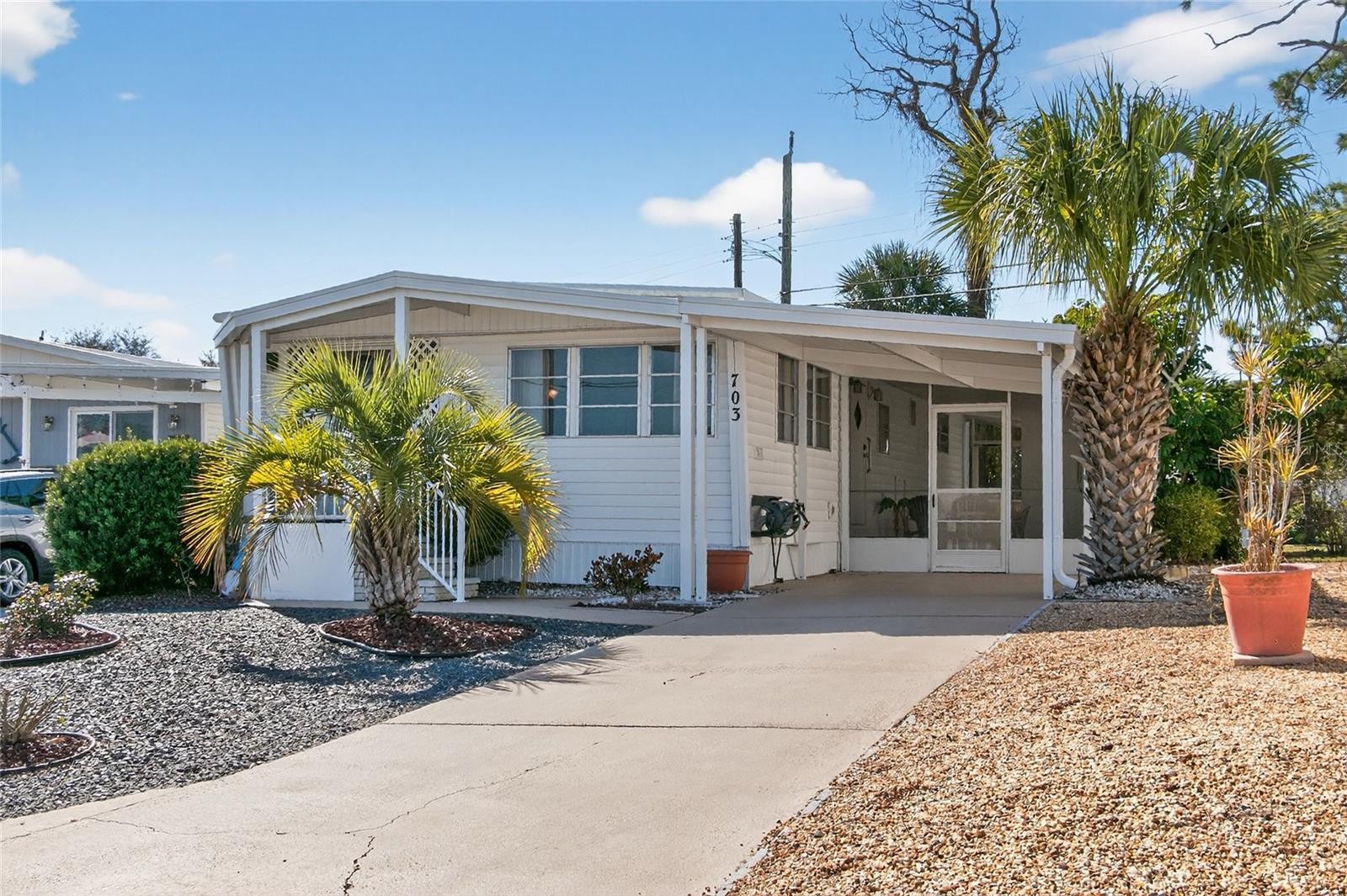 Welcome to paradise! This fully furnished 2-bedroom, 1.5-bath home is move-in ready with coastal décor that makes it ideal for living or renting out (one-month minimum). Enjoy indoor-outdoor living with a screened lanai, covered front porch, back deck, carport, and even an outdoor shower for those beach days. Bring your fur baby—this home is pet-friendly! The community is fantastic with a heated pool and private harbor offering boat slips (first-come, first-served). You'll love the low HOA fees and no lot fees since residents own the land. Big bonus, it's in an X flood zone, so no flood insurance required! The location is absolutely prime—right on the Legacy Trail for biking and walking, just one mile to charming downtown Venice with its shops, dining, and theaters, and minutes from beautiful Gulf beaches. Everything you need is right at your doorstep in this active 55+ community!