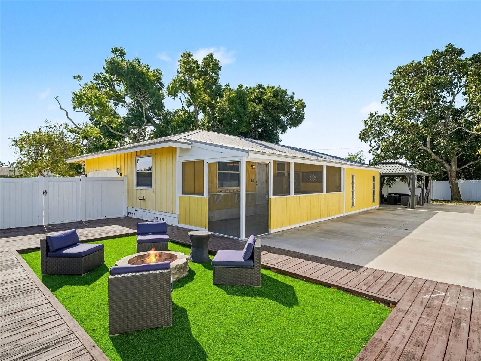 Looking for home sweet home West of the Legacy Trail, close to all things the Sarasota lifestyle has to give- not limited to but including Shopping, dining, beach proximity, activities, walking trails, pickleball courts and much much more? Welcome to this 3-bedroom, 2.5 bathroom single family home in Sarasota, where location, location, location truly defines the lifestyle. Positioned on a corner .21-acre lot with NO HOA OR CDD, this home places you just a stone’s throw from the Legacy Trail, with walking access to pickleball courts, tennis courts, Pompano Park, and Locklear Park, plus nearby community amenities. Whether it’s biking, running, or social recreation, everything is right outside your door. The backyard is the standout feature, thoughtfully designed for entertaining and everyday enjoyment. Enjoy a fire pit area, low maintenance astro turf, multiple seating zones, a gazebo, and a screened in porch that can easily be converted into a full outdoor kitchen. The large yard offers ample room to build a pool, all surrounded by mature oak trees and a mango tree that add shade and character. Inside, the home offers 2,346 sqft with spacious bedrooms, a flexible bonus room for work or guests, and a primary bath with a garden tub. Major updates include an AC system replaced in 2022, water heater in 2024, along with the benefit of being in Flood Zone X with a raised foundation. The dining area has custom built-in seating with storage area to accommodate small or large gatherings, built with the intention for hours of entertaining. This is a rare opportunity to own a home that combines space, updates, and one of Sarasota’s most activity rich locations. With lots of potential, let the imagination take over as you create the space you desire and deserve to have!