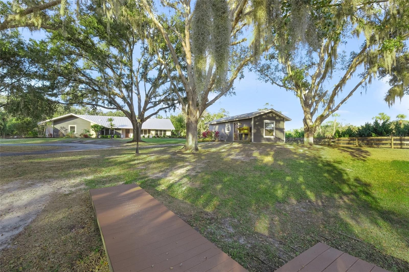 This is the one * THIS LOVINGLY RENOVATED & THOUGHTFULLY REIMAGINED HOME IS A TRUE SANCTUARY OFFERING A MAIN RESIDENCE & A GUEST HOUSE PERFECT FOR MULTI-GENERATIONAL LIVING * MAIN HOUSE is 2921+/- sqft a/c & GUEST HOUSE is 448+/- sqft a/c for a TOTAL LIVING AREA SQFT OF 3369+/- * 'A' RATED SCHOOL DISTRICT * A MUST SEE FAMILY ESTATE HOME IN MUCH SOUGHT AFTER SADDLE CREEK * PERFECTLY POSITIONED on 5.9 ACRES of PEACEFUL, PRIVATE LIVING in this GATED, EQUESTRIAN NEIGHBORHOOD with 25 MILES OF RIDING TRAILS * You will be truly impressed from the moment you enter the electric gate and drive down the ASPHALT & CONCRETE DRIVEWAY surrounded by LUSH GREEN PASTURES & MATURE OAK TREES * You will appreciate the IMPECCABLE GROUNDS, SERENITY & PRIVACY * TUCKED ON THE QUIET BACKSIDE OF SADDLE CREEK * The Chef's Kitchen opens to the Living Room and Family Room, both with Vaulted Ceilings and both featuring a Wood-burning Fireplace * There are Volume Ceilings providing an ABUNDANCE OF NATURAL LIGHT * Split Plan Design with a 25x15 Primary Suite showcasing a Spa-style Bath * French doors open to the OUTSIDE OASIS with a spacious Covered Lanai and a Caged, Heated Pool for year-round enjoyment of Florida's outdoor living * ADDITIONAL FEATURES INCLUDE: a Metal Roof, IMPACT GLASS WINDOWS, A WHOLE HOUSE GENERATOR, and a Reverse Osmosis Water System, all adding to your peace of mind * This is the perfect home for entertaining friends & family or for just relaxing in your slice of paradise * EQUESTRIANS will be delighted by the BEAUTIFULLY EQUIPPED BARN featuring 3 Stalls and a Tack Room, and Wash Rack * The property is CROSS FENCED with MULTIPLE PASTURES & a TRANQUIL POND * Bring the horses, the family, all the animals, the big & small toys * Make this your family estate * ENJOY YOUR SLICE OF PARADISE * Beautiful private setting * SADDLE CREEK has over 25 miles of riding trails * EXCELLENT A-RATED SCHOOLS * 5 miles to I-75 & 13 miles to Siesta Key Beach * 5 minutes to Publix & shopping * Country feel yet close to town * One look & you'll fall in love *