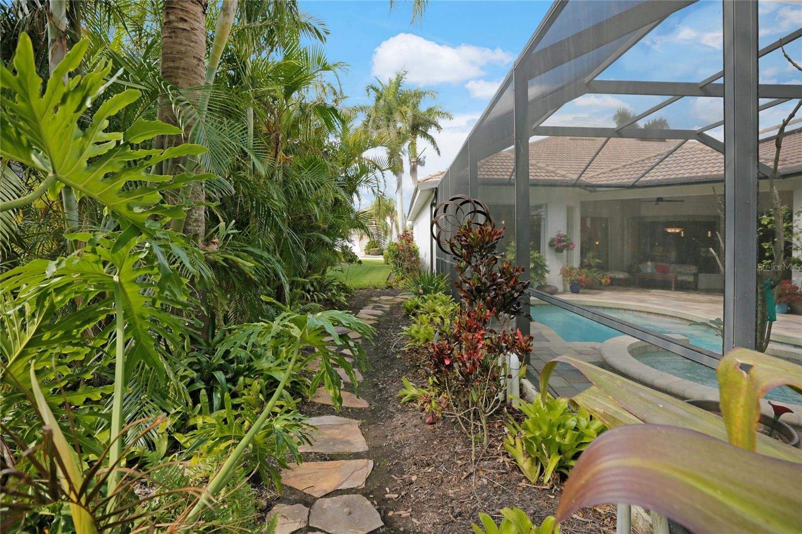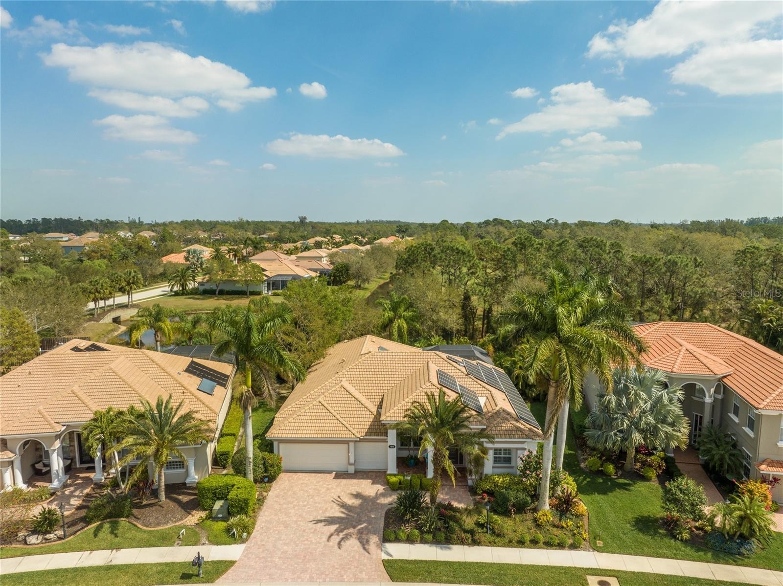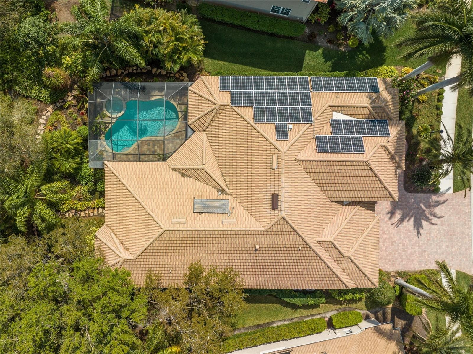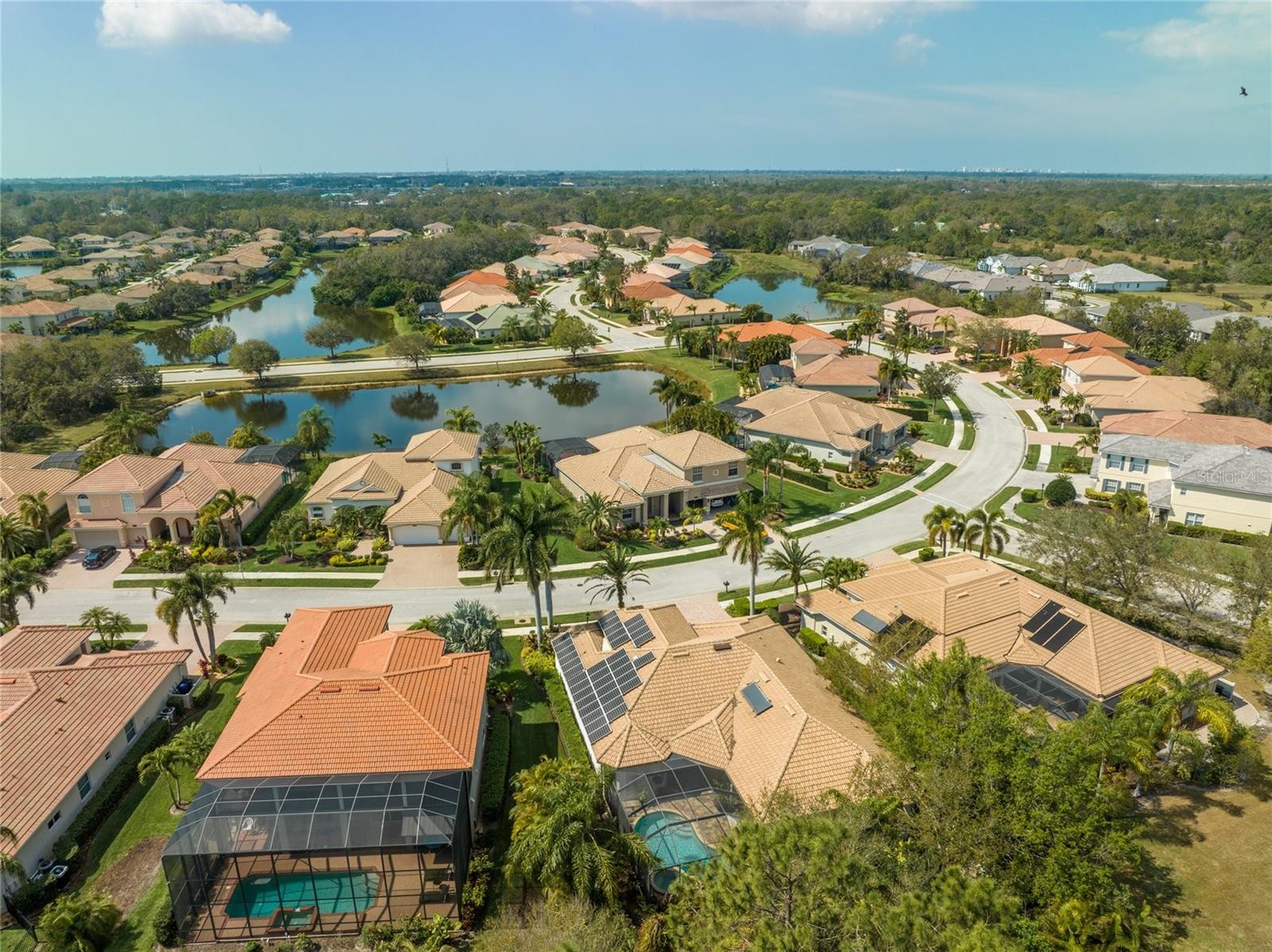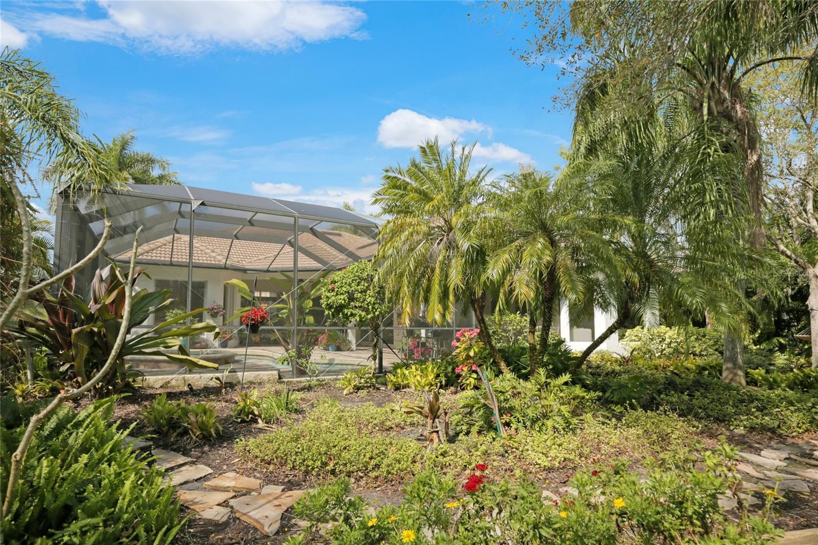 A perfectly poised, tranquil oasis right in your own backyard offers privacy and delight. This gorgeous 4 bedroom, 3 bath, plus den, 3-car garage and over 3,000 of living area is waiting for you. Meticulously cared-for, this home boasts abundant natural light with huge picture windows and 12’ high double tray ceilings. Ideal for entertaining with a beautiful dining room and formal living room that opens up to a private outdoor living retreat. You’ll fall in love with the bamboo flooring, sliders to the lanai, plantation shutters, glass Italian fixtures, custom lighting, and architectural niches throughout. This home also features a full energy-efficient solar system that’s good for the environment and cuts utility bills to a fraction of the cost. The gourmet kitchen features a breakfast nook, glass backsplash, soft-close cabinets, large quartzite island, pull-out drawers, stainless steel appliances and a gas range. The expansive kitchen opens up to the family room and dinette area with picturesque pool views through aquarium glass windows. Enjoy your private outdoor space in the screened lanai surrounded by an array of tropical plants and nature. With plenty of covered space and sun shades, you’ll love relaxing outside in your very own heated pool and spa. The spacious owner's suite features tall ceilings, huge windows, sun blocking drapery, large walk-in closets, custom closets organizers, and stunning paradise views. The en-suite offers two vanities, a makeup vanity, a soaking tub, and a spacious tiled shower. A Jack-N-Jill bath separates 2 more spacious bedrooms with with 8’ doorways and large closets. And if that’s not all, there is an additional 4th private guest suite and bathroom in the back of the home overlooking the stunning landscaping. Red Hawk Reserve is a popular gated community with Low HOA dues, located in an A+ rated school district, Located across the street from Twin Lakes Park which features tennis, pickleball, recreation courts, and minutes to beaches and all the splendor Sarasota has to offer. Experience a virtual interactive 3-D Matterport tour and video. A full pre-listing inspection has been completed on the home for your peace of mind and available upon request.