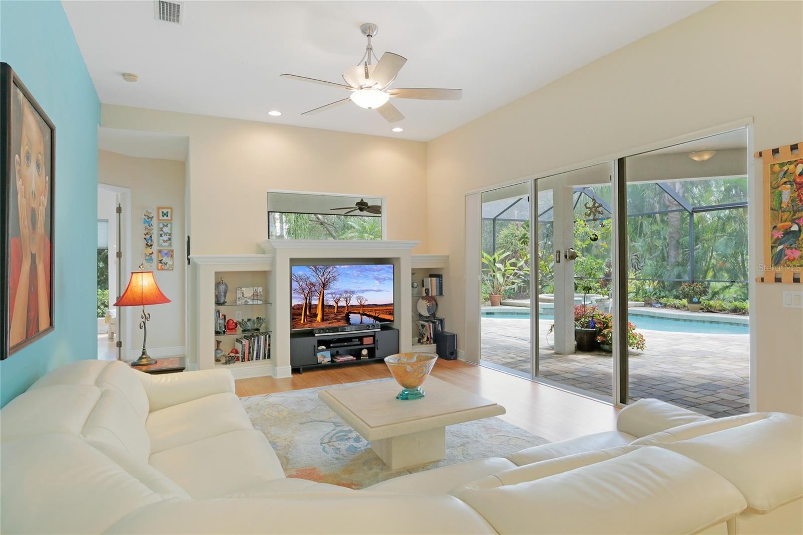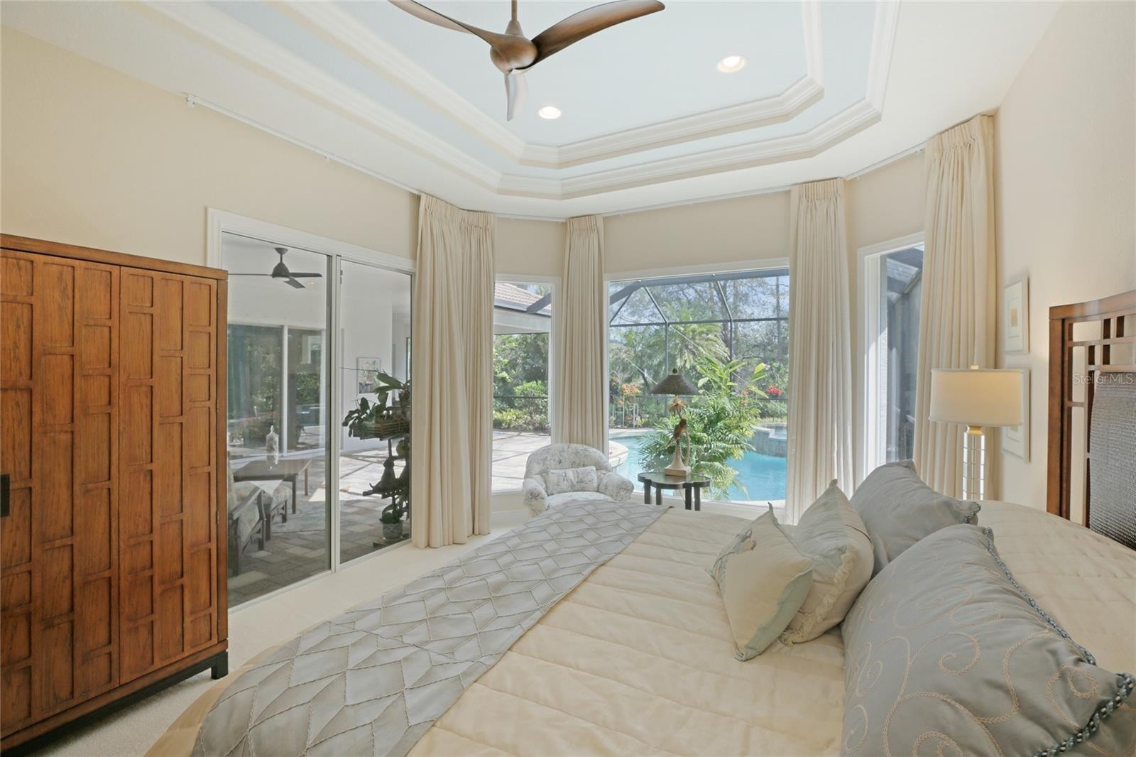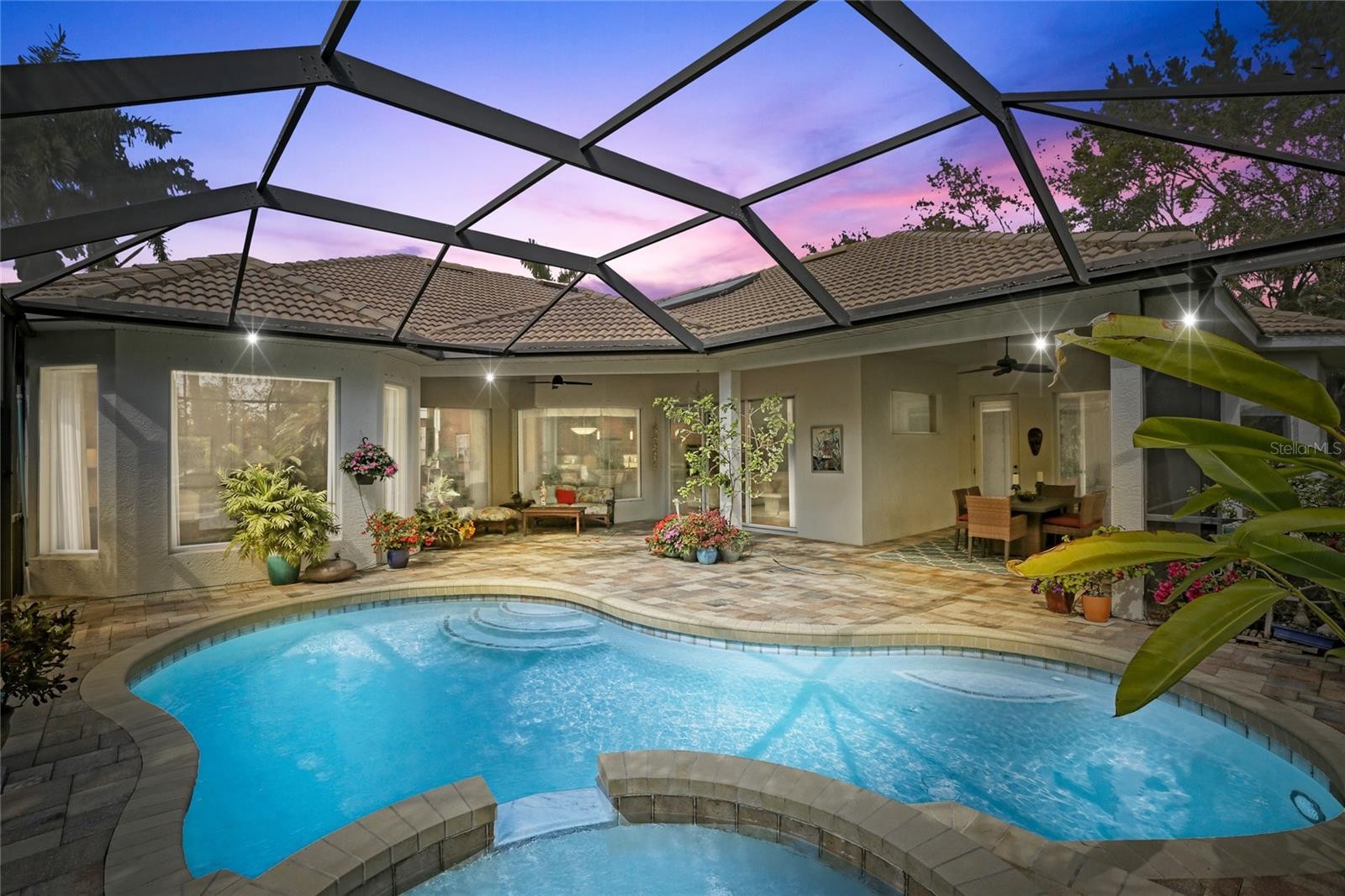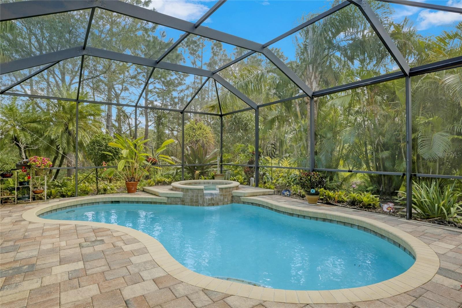 A perfectly poised, tranquil oasis right in your own backyard offers privacy and delight. This gorgeous 4 bedroom, 3 bath, plus den, 3-car garage and over 3,000 of living area is waiting for you. Meticulously cared-for, this home boasts abundant natural light with huge picture windows and 12’ high double tray ceilings. Ideal for entertaining with a beautiful dining room and formal living room that opens up to a private outdoor living retreat. You’ll fall in love with the bamboo flooring, sliders to the lanai, plantation shutters, glass Italian fixtures, custom lighting, and architectural niches throughout. This home also features a full energy-efficient solar system that’s good for the environment and cuts utility bills to a fraction of the cost. The gourmet kitchen features a breakfast nook, glass backsplash, soft-close cabinets, large quartzite island, pull-out drawers, stainless steel appliances and a gas range. The expansive kitchen opens up to the family room and dinette area with picturesque pool views through aquarium glass windows. Enjoy your private outdoor space in the screened lanai surrounded by an array of tropical plants and nature. With plenty of covered space and sun shades, you’ll love relaxing outside in your very own heated pool and spa. The spacious owner's suite features tall ceilings, huge windows, sun blocking drapery, large walk-in closets, custom closets organizers, and stunning paradise views. The en-suite offers two vanities, a makeup vanity, a soaking tub, and a spacious tiled shower. A Jack-N-Jill bath separates 2 more spacious bedrooms with with 8’ doorways and large closets. And if that’s not all, there is an additional 4th private guest suite and bathroom in the back of the home overlooking the stunning landscaping. Red Hawk Reserve is a popular gated community with Low HOA dues, located in an A+ rated school district, Located across the street from Twin Lakes Park which features tennis, pickleball, recreation courts, and minutes to beaches and all the splendor Sarasota has to offer. Experience a virtual interactive 3-D Matterport tour and video. A full pre-listing inspection has been completed on the home for your peace of mind and available upon request.