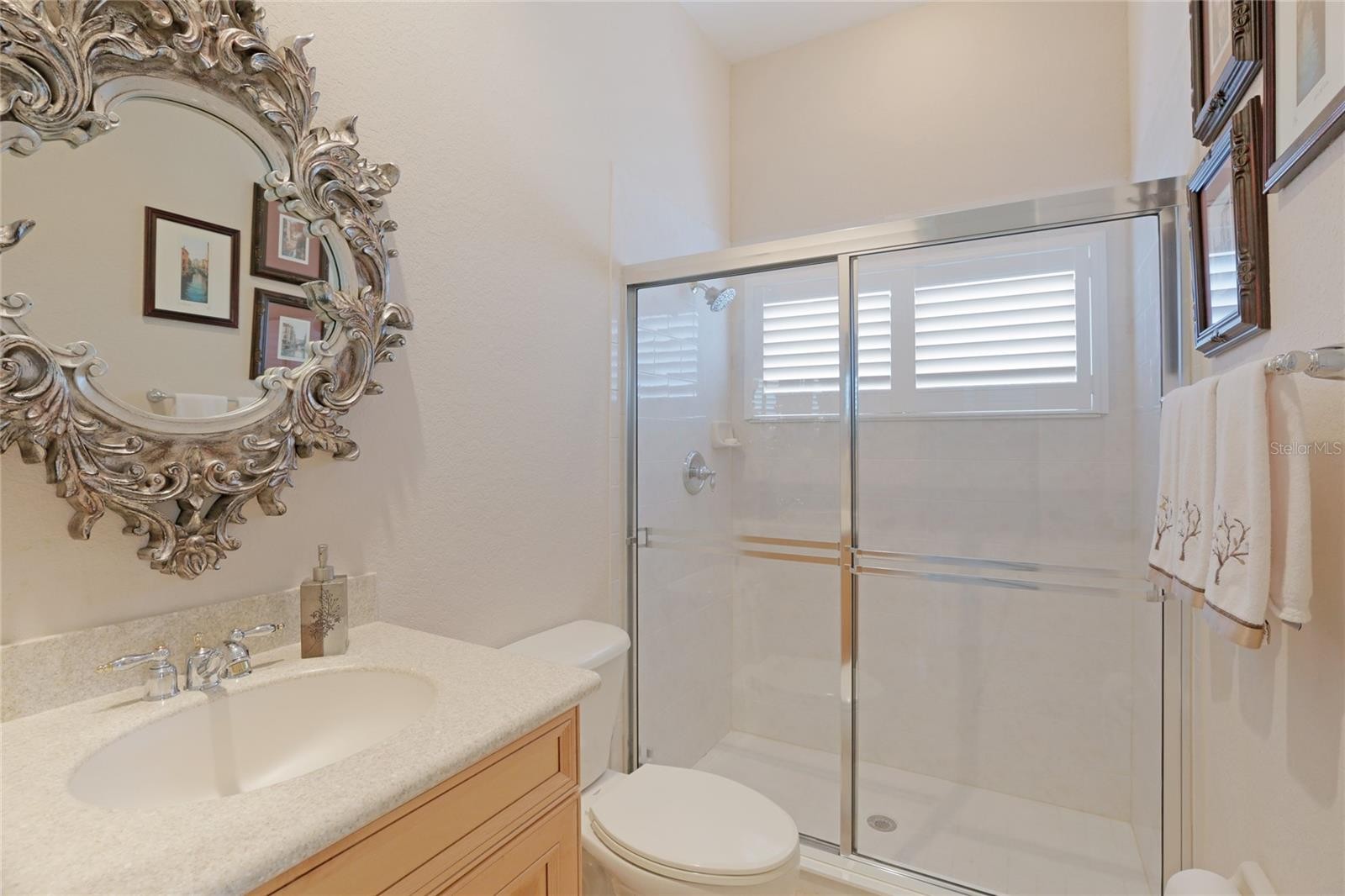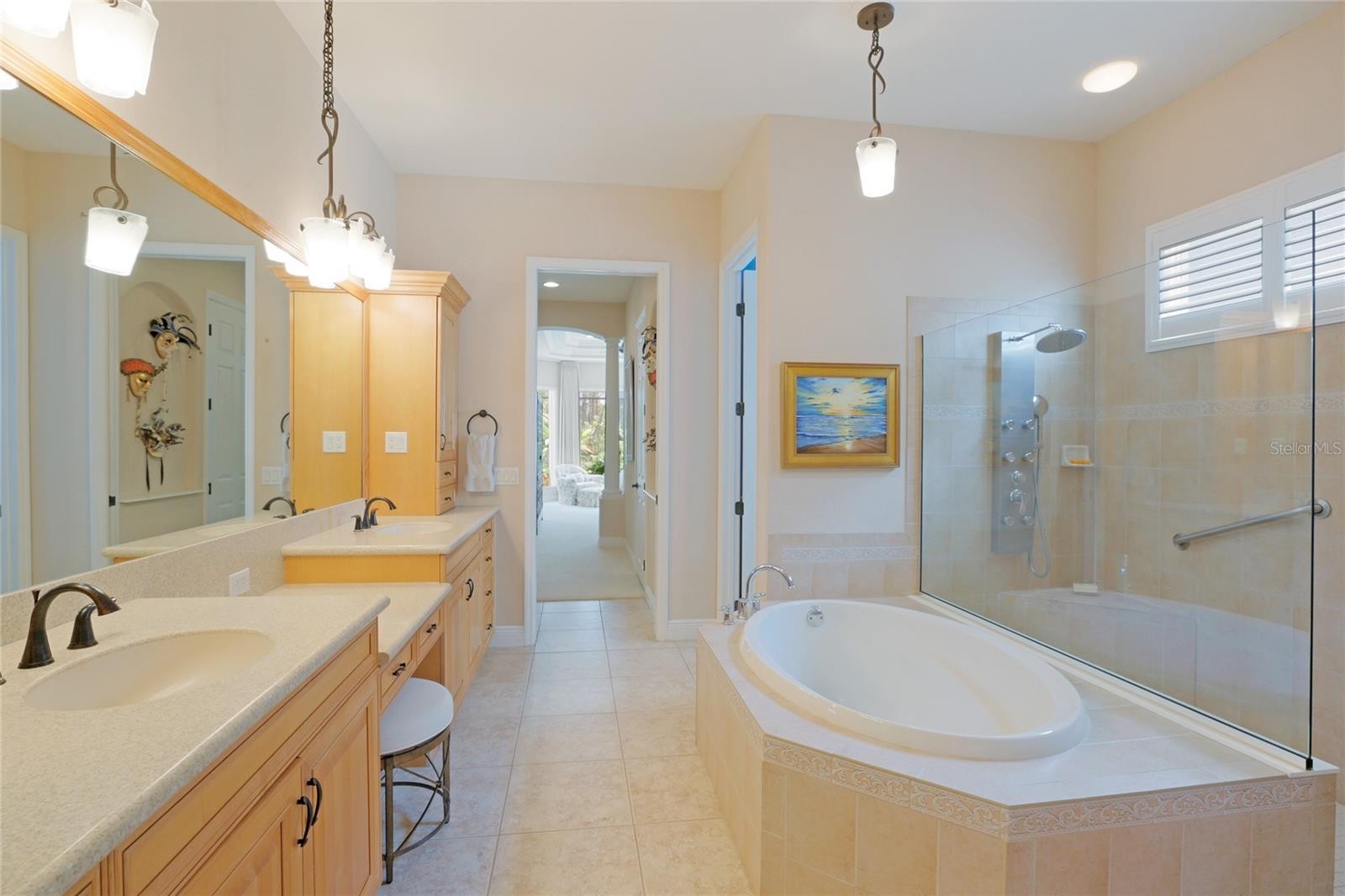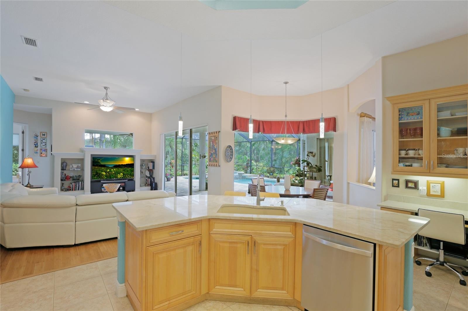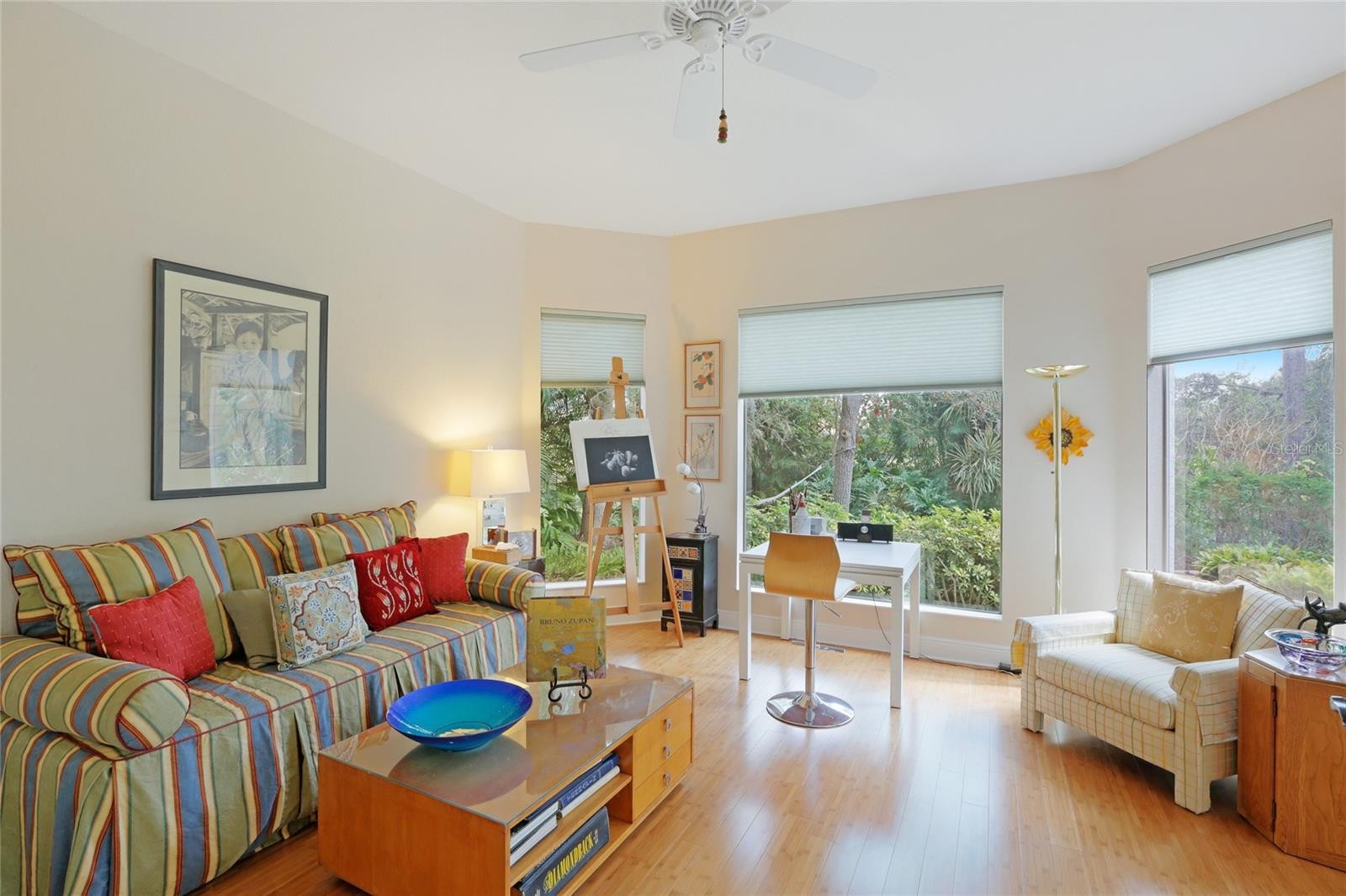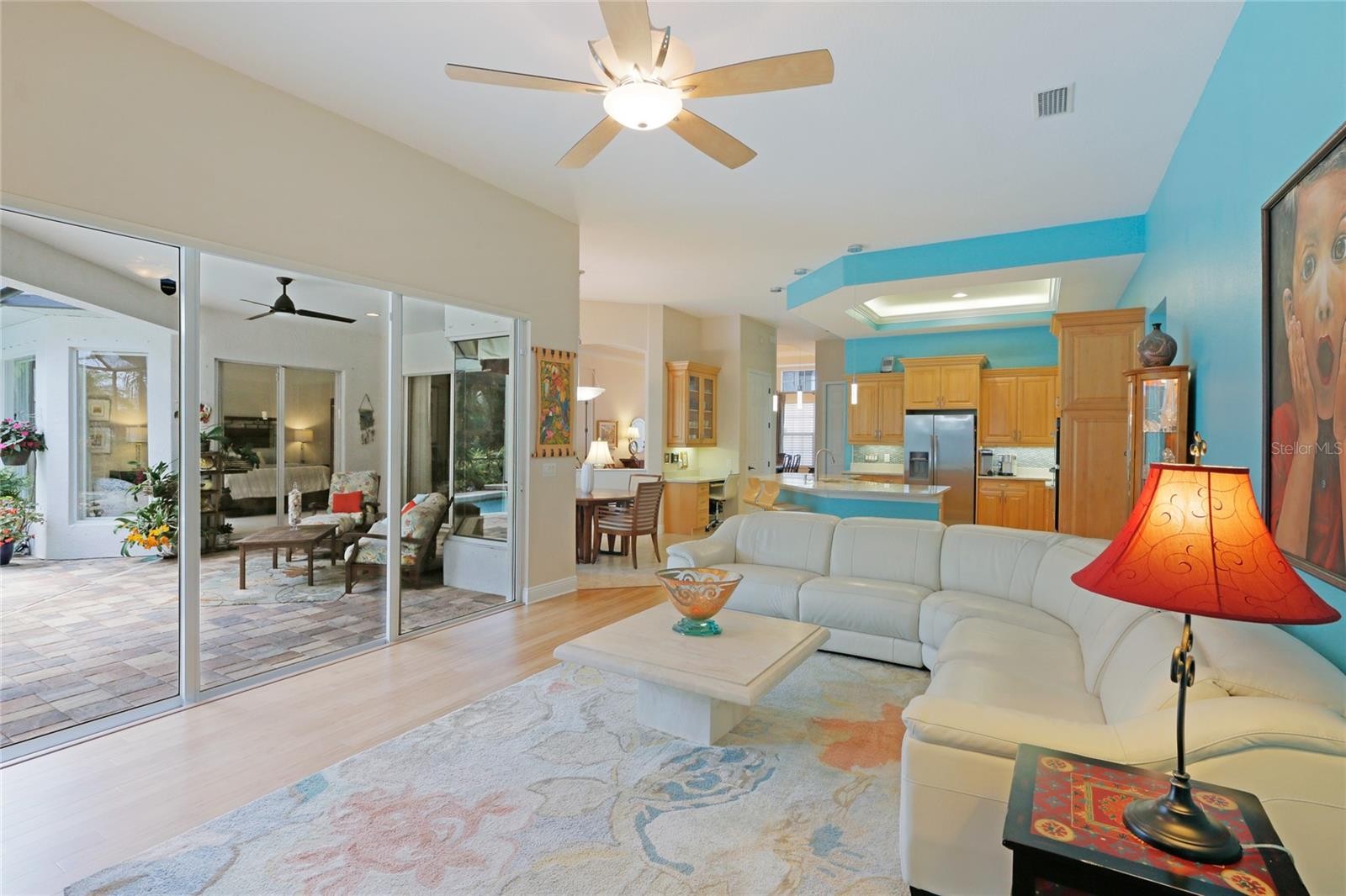A perfectly poised, tranquil oasis right in your own backyard offers privacy and delight. This gorgeous 4 bedroom, 3 bath, plus den, 3-car garage and over 3,000 of living area is waiting for you. Meticulously cared-for, this home boasts abundant natural light with huge picture windows and 12’ high double tray ceilings. Ideal for entertaining with a beautiful dining room and formal living room that opens up to a private outdoor living retreat. You’ll fall in love with the bamboo flooring, sliders to the lanai, plantation shutters, glass Italian fixtures, custom lighting, and architectural niches throughout. This home also features a full energy-efficient solar system that’s good for the environment and cuts utility bills to a fraction of the cost. The gourmet kitchen features a breakfast nook, glass backsplash, soft-close cabinets, large quartzite island, pull-out drawers, stainless steel appliances and a gas range. The expansive kitchen opens up to the family room and dinette area with picturesque pool views through aquarium glass windows. Enjoy your private outdoor space in the screened lanai surrounded by an array of tropical plants and nature. With plenty of covered space and sun shades, you’ll love relaxing outside in your very own heated pool and spa. The spacious owner's suite features tall ceilings, huge windows, sun blocking drapery, large walk-in closets, custom closets organizers, and stunning paradise views. The en-suite offers two vanities, a makeup vanity, a soaking tub, and a spacious tiled shower. A Jack-N-Jill bath separates 2 more spacious bedrooms with with 8’ doorways and large closets. And if that’s not all, there is an additional 4th private guest suite and bathroom in the back of the home overlooking the stunning landscaping. Red Hawk Reserve is a popular gated community with Low HOA dues, located in an A+ rated school district, Located across the street from Twin Lakes Park which features tennis, pickleball, recreation courts, and minutes to beaches and all the splendor Sarasota has to offer. Experience a virtual interactive 3-D Matterport tour and video. A full pre-listing inspection has been completed on the home for your peace of mind and available upon request.
