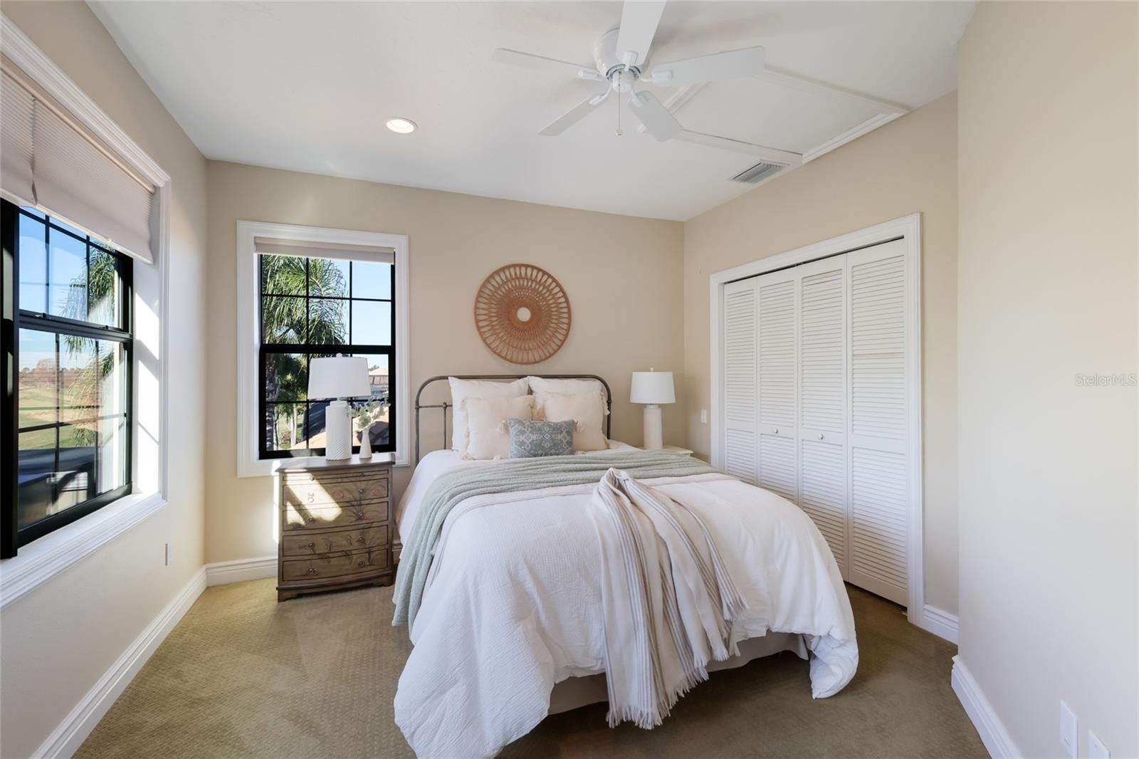 Relish spacious living with sunset golf views in a custom residence built by Gibraltar Homes on a private corner lot of the Vilamour enclave in Lakewood Ranch Country Club. Encompassing 3,445 square feet, the Caterina III floor plan was enlarged from its original plan offering three bedrooms, a number of upgrades, designer ceilings, crown moldings and premium appealing features. Captivating curb appeal leads into the living room introducing the inviting aesthetic that sets the tone with rotunda ceiling capped with accent lighting, and a generously-sized dining room perfect for family gatherings. The open-concept residence centers around the large updated kitchen, featuring an oversized island and countertops, white cabinetry, stainless appliances, breakfast bar and a oversized walk-in pantry. The kitchen effortlessly flows into the spacious adjoining family room with accent wall featuring an electric fireplace, and direct access to the expansive screened lanai, where you’ll enjoy a heated pebble tec pool, scenic golf course views, pre-plumbed for an outdoor kitchen, and an extended covered area perfect for gathering. A sanctuary for pampering and relaxation, the owner’s retreat showcases tray ceiling, two oversized walk-in closets, and a dazzling remodeled en-suite bath with a double tray ceiling, separate vanities, walk-in shower and soaking tub. Guests will appreciate the main level bedroom with its own private full bath, while upstairs boasts the home’s third bedroom, full bath, and oversized bonus room with built-in office area. Other highlights of this sprawling home include a separate office/den on the main level, an ample-sized laundry room with cabinetry and sink, two 2024 AC units, plantation window shutters, 8’ interior doors, and a three car garage. An impeccable maintenance-included residence within the #1 top-selling master-planned community known for its vibrant lifestyle, dining, shopping, A-rated schools. And with being just a 5 minute golf cart ride to Club, there are several optional membership opportunities at Lakewood Ranch Golf & Country Club, which include four 18-hole championship golf courses, tennis, state-of-the-art Fitness center, clubhouses, junior Olympic-sized pool, pickleball and more.
