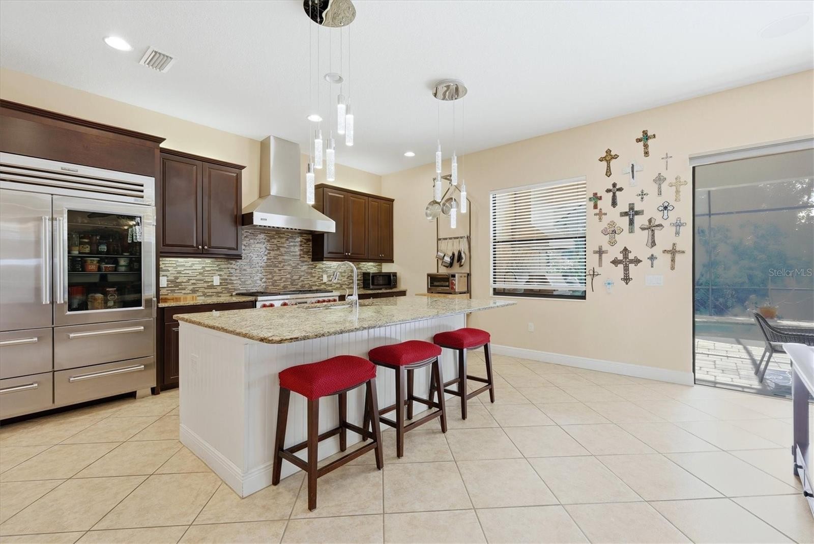 Welcome to this exceptional 4 bedroom 4 and half bath luxury home located in the highly sought after Greyhawk Landing community. Designed for both entertaining and everyday living, this residence features spacious media and billiards rooms, offering the perfect setup for movie nights, game days or hosting guests. Step outside to your private backyard oasis, complete with a gas heated saltwater pool and spa, expansive paver stone pool patio, and fully equipped outdoor kitchen featuring a gas grill, Green Egg smoker, and outdoor refrigerator, ideal for year-round entertaining. A paver stone drive adds to the curb appeal while the 3-car garage provides ample parking and storage. Inside the gourmet kitchen is a chef's dream, boasting granite countertops, a Sub-Zero refrigerator, and a Wolf gas oven, combining style with top-tier performance. Residence of Greyhawk Landing enjoy resort style amenities including multiple community pools, a waterpark, pickleball courts, and extensive recreational facilities, making this home the perfect blend of luxury, comfort, and lifestyle.