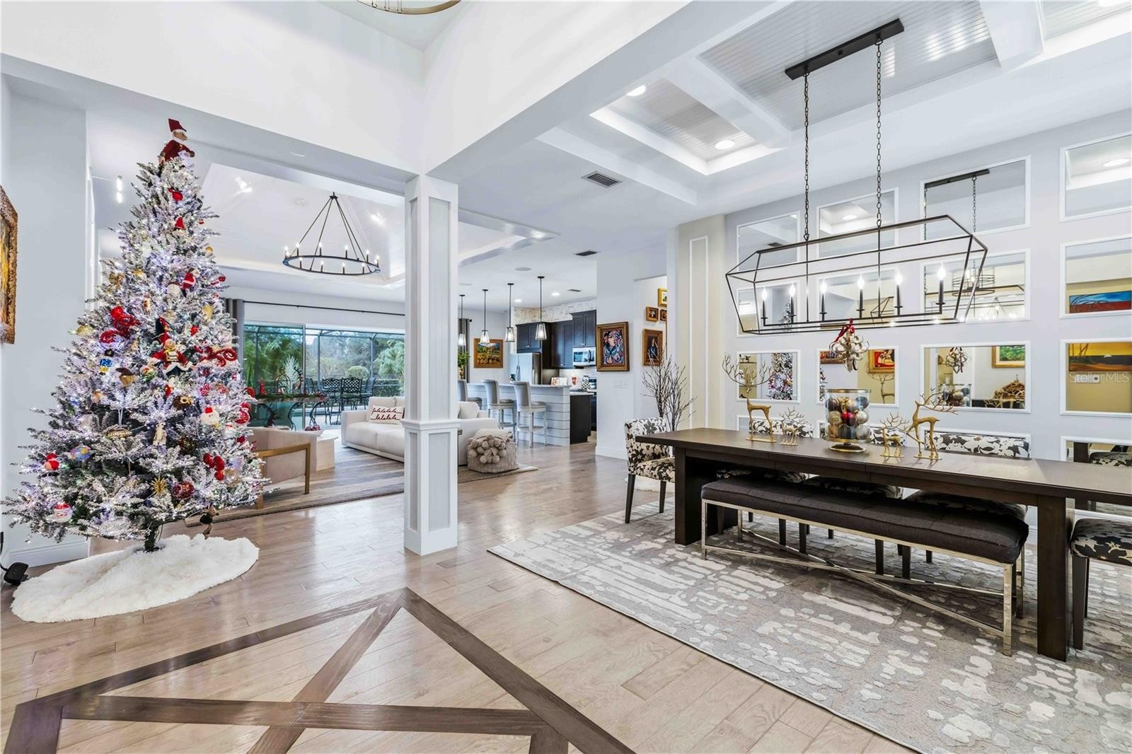 Welcome to this stunning Medallion Home residence located in the highly desirable gated community of Waverley. Perfectly positioned on a private homesite, non flood zone, this beautifully upgraded home offers 4 spacious bedrooms, 3 full bathrooms, a dedicated office/den, and a 3-car garage—designed for both comfort and upscale living. Light-filled and inviting, the open-concept floor plan is ideal for entertaining, flowing effortlessly from the interior living spaces to an expansive outdoor retreat. The enlarged outdoor living area features a resort-style pool and spa, electric patio screen, and a fully equipped outdoor kitchen complete with a premium hood and granite backsplash—perfect for year-round enjoyment. This home is loaded with high-end upgrades, including a whole-home Sonos sound system, a comprehensive security system with nine cameras, and four mounted TVs located on the patio, in the family room, bedroom, and office. Pool enhancements include variable-speed pumps, upgraded controls, new lighting, integrated lighting and pool controls, and a robotic pool cleaner for ease of maintenance. Additional highlights include professionally designed landscaping with landscape lighting, remote-controlled window blinds throughout, and striking Pella mahogany front doors with Baldwin lifetime mortise locks. The exterior of the home and pool deck were freshly repainted in 2025, adding to the home’s pristine condition and curb appeal. This exceptional property offers privacy, luxury upgrades, and seamless indoor-outdoor living in a premier gated community. A truly remarkable home that is move-in ready and a must-see.