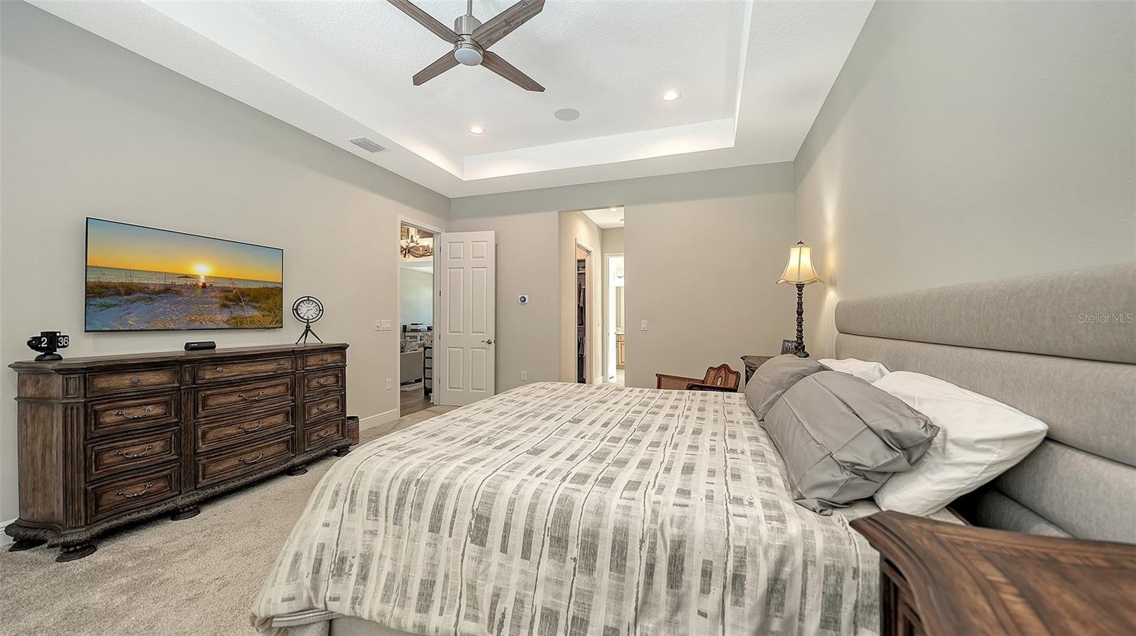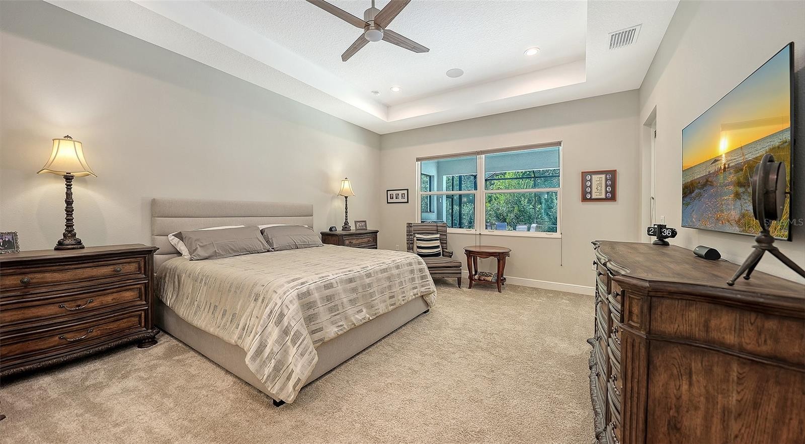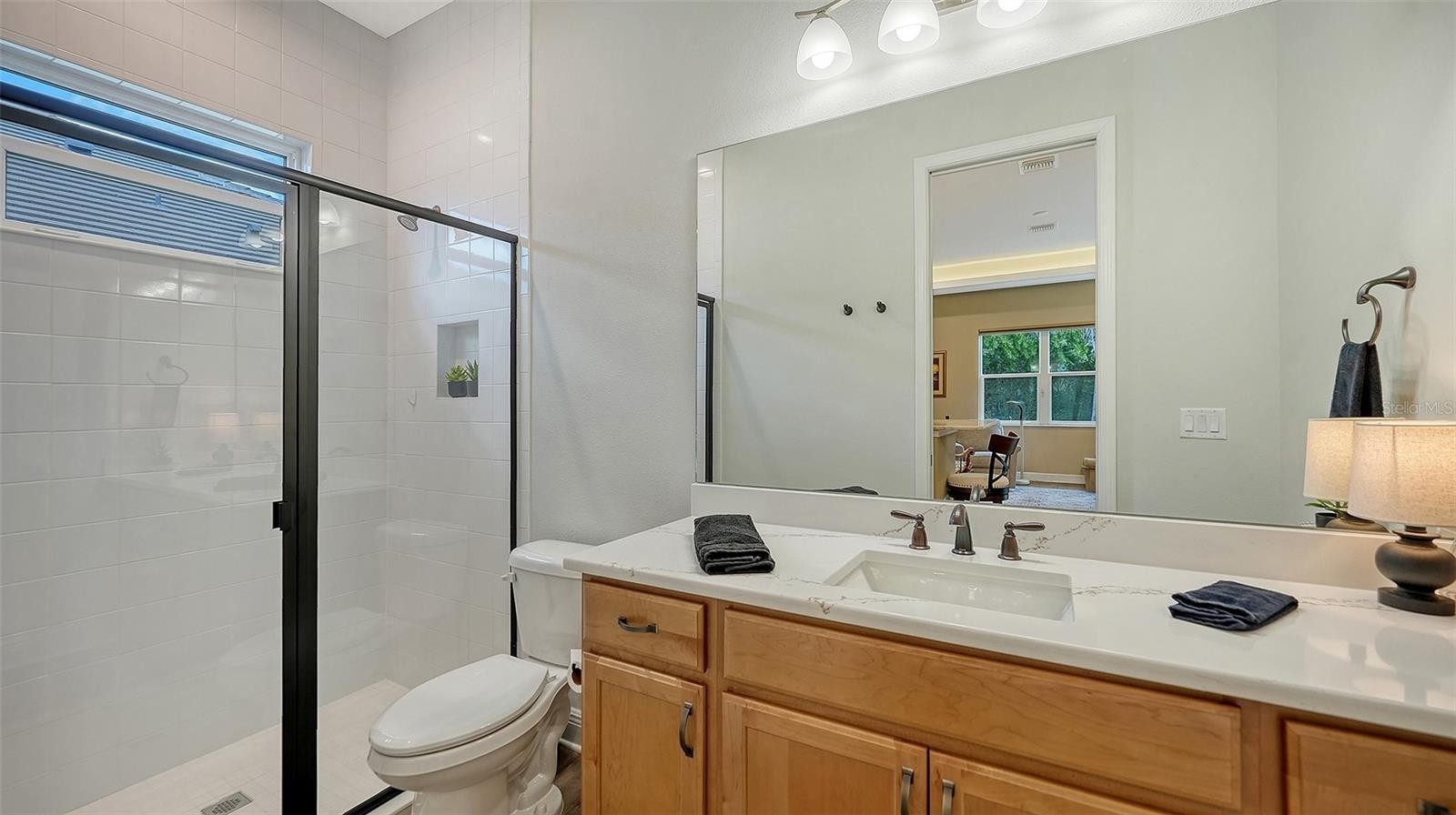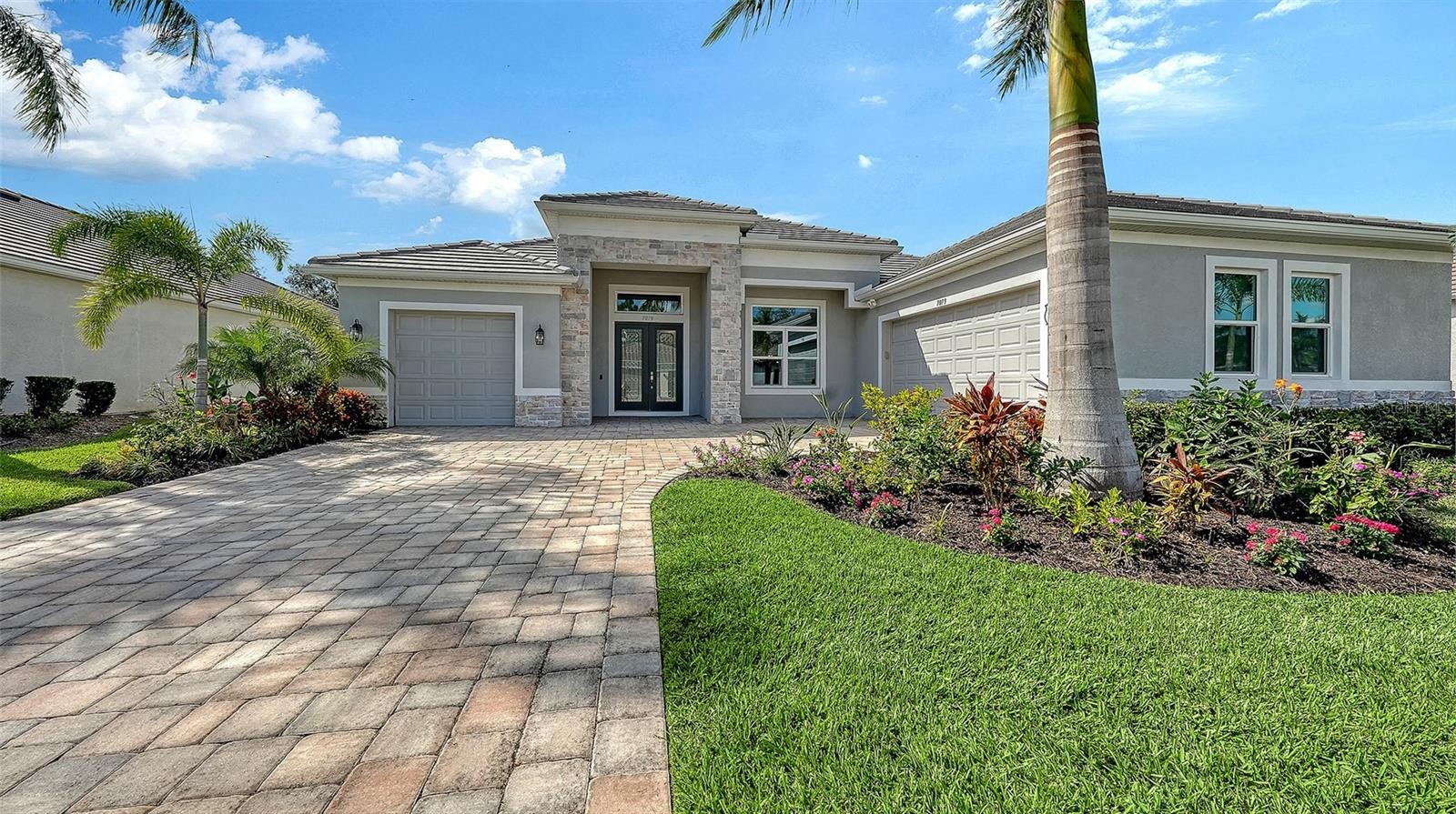Located in the desirable Waverley neighborhood of Sarasota, this beautifully appointed Medallion Santa Maria floor plan offers the perfect blend of luxury, comfort, and functionality. This 3BR/3BA home features a screened pool with an expansive lanai enclosure overlooking a private wooded backdrop, along with a paver driveway and impressive curb appeal. Inside, the extended gourmet kitchen is designed for both everyday living and entertaining, showcasing solid wood cabinetry, a long center island, and a gas oven range fueled by a dedicated propane tank. The propane system also services the tankless water heaters, clothes dryer, fireplace, pool heater, and outdoor grill. Real wood floors run throughout the home, enhancing its warmth and timeless appeal. The spacious great room features a stunning farmhouse-style vaulted ceiling accented with tongue-and-groove planks, creating an open and airy gathering space. A separate bonus room includes a gas fireplace and wet bar, ideal for entertaining or relaxing. The primary suite offers generous proportions, an ensuite bath, and a walk-in closet with custom built-ins. Both garage bays are air-conditioned, and a whole-home generator provides added peace of mind. Conveniently located near dining, shopping, and everyday conveniences, with easy access to Siesta Key, Downtown Sarasota, and the UTC area, this home delivers exceptional Florida living in a premier Sarasota location.