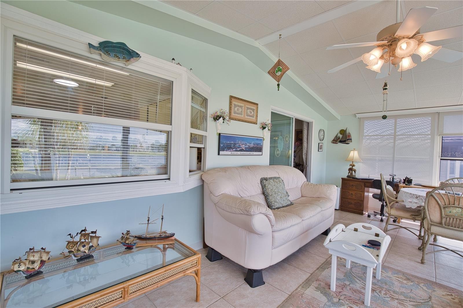 Discover Florida living at its absolute finest! This enchanting home is nestled at the back of the park, overlooking one of our most picturesque lakes. As you approach, you'll be greeted by lush, vibrant landscaping that sets the tone for the beauty that awaits inside. Step onto the spacious lanai, adorned with elegant ceramic tile flooring, which seamlessly connects to an oversized shed—offering generous space for a laundry area and a tool shed. Inside, the open-concept kitchen, dining room, and living room create a welcoming atmosphere perfect for entertaining family and friends. From the living room, you'll be drawn into the impressively large Florida Room. Bathed in natural light from its extra-large windows, this serene space boasts ceramic tile floors and sheetrock walls, providing breathtaking views of the tranquil lake. Whether hosting gatherings or enjoying a quiet moment, this room is an idyllic retreat. The primary bedroom offers a serene escape, featuring an ensuite bathroom complete with a stylish tile floor, a spacious walk-in closet, and a luxurious walk-in shower. Your guests will enjoy unparalleled comfort in the second bedroom, conveniently located across the hall from a well-appointed bathroom. Since its purchase in 2001, this home has undergone numerous enhancements. Notable updates include the stunning Florida Room (214 sq ft) with its oversized windows, a beautifully tiled lanai (144 sq ft), and a functional tool shed (120 sq ft). Enjoy peace of mind with double-glazed windows throughout, and a durable roof featuring all-weather roofing that includes a transferable lifetime warranty. La Casa boasts 974 homes nestled among a variety of native trees with spacious common grounds surrounding our eight lakes. The ultimate lifestyle on Florida’s Gulf Coast is located between Sarasota and Fort Myers and is a boaters dream with access to the Gulf of Mexico. It is convenient for shopping, sightseeing, golfing, fishing, and boating, as well as all the culture and elegance the Southwest Florida area is noted for. Residents and visitors enjoy the warmth of Southwest Florida winters in a relaxed and unhurried environment far removed from the hustle of Florida’s east coast. You’ll be surrounded by hundreds of palms reaching for the sky and beautiful mature lush landscaping which demonstrates the utmost level of care our property receives from residents and management. La Casa may have the best pools in the area. Our extremely large, 40 X 60-foot swimming pool is our crown jewel and that is kept at a perfect 87 degrees. Our smaller 20 x 40 pool is quietly nestled between the clubhouse and the Activity Building. Both pools have adjacent hot tubs which are ideal for soaking muscles that are tired from golfing or tennis. Wireless Internet (Wi-Fi) is available at the Clubhouse, Activity Building, and Recreation Hall area where these pools & spas are located, so you can catch some rays while you catch up on your email! Sound enticing? La Casa is a friendly, family community. You will be away from the hustle and bustle except when you want to be part of it. When you leave our gates, North Port is only 1.5 miles from the city center, where you will find every kind of retail store and service you could need. Come for a visit to this self-contained oasis and see for yourself why La Casa is the ultimate destination for both snowbirds and year-round.