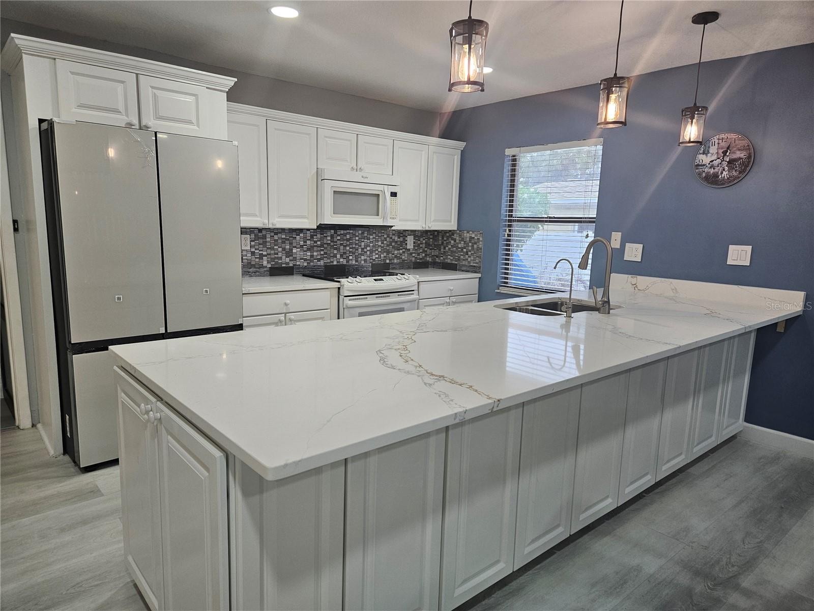THIS RESORT STYLE POOL HOME with 3 bedroom and 3 bathrooms is situated on a MORE THAN ONE-THIRD ACRE parcel. Surrounded by palm trees, home feels like a resort on the first look itself.. BRAND NEW VARIABLE SPEED HIGH EFFICIENCY 18 SEER AC System (2022) , Quartz Kitchen Counter Tops with Beautiful Backsplash(2025), NEW VINYL Privacy FENCE(2025) are just a few highlights. BRICK PAVED CIRCULAR DRIVEWAY that can easily accommodate about 6 cars along with 2 car garage is just the beginning. FRESHLY PAINTED EXTERIOR AND INTERIOR 2023 is refreshing. Home opens into a huge open concept Family/Dining/Kitchen that is just perfect. NEW WATERPROOF OPTIMAX LUXURY VINYL FLOORING, throughout the house is beautiful. Neutral colors provide plenty of opportunity for decorating the house according to your taste. Kitchen comes with all the appliances included with brand new Samsung 30" Refrigerator (2025) and brand new Reverse Osmosis for clean/filtered drinking water(2025). Don't forget to notice the BEAUTIFUL BUILT-IN entertainment area. Two separate patio doors open into the back patio from the living area. NEWLY RENOVATED BATHROOMS will amaze you. Master bedroom suite has its own separate access to the pool area. Two other bedrooms completely separate from Master suite offers plenty of privacy for everyone. ENJOY A PRIVATE OFFICE WITH ITS OWN FULL BATHROOM for a workday privacy. Office has its own external door. Backyard with huge, heated pool surrounded by palm trees is literally a paradise resort. Plenty of space around the pools for all kinds of beach chairs and outdoor cooking. Enjoy the luxury of resort experience while at home. ZERO MAINTAINANCE POOL!! SALT WATER POOL WITH BRAND NEW SALT CHLORINATOR is a relief. Fresh Epoxy floor in the garage. Siesta Key mall is 5 mins away. Walk or bike to the beach because it is literally right around. RING SECURITY SYSTEM has been installed. POOL RESURFACE WILL BE DONE FOR CLOSING with PEBBLE FINISH or pay $10,000 . A Must see!! Please schedule your showing today!!