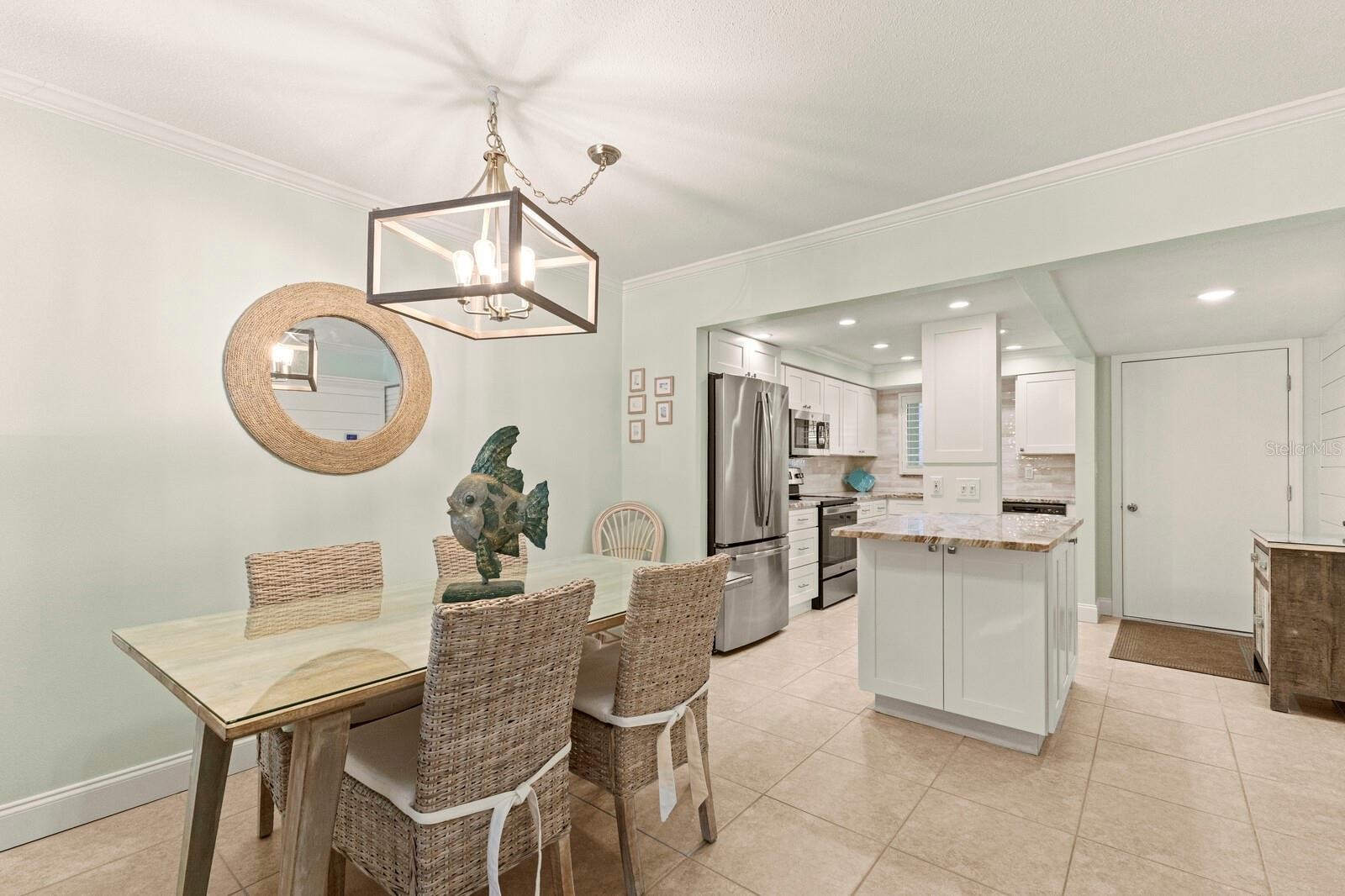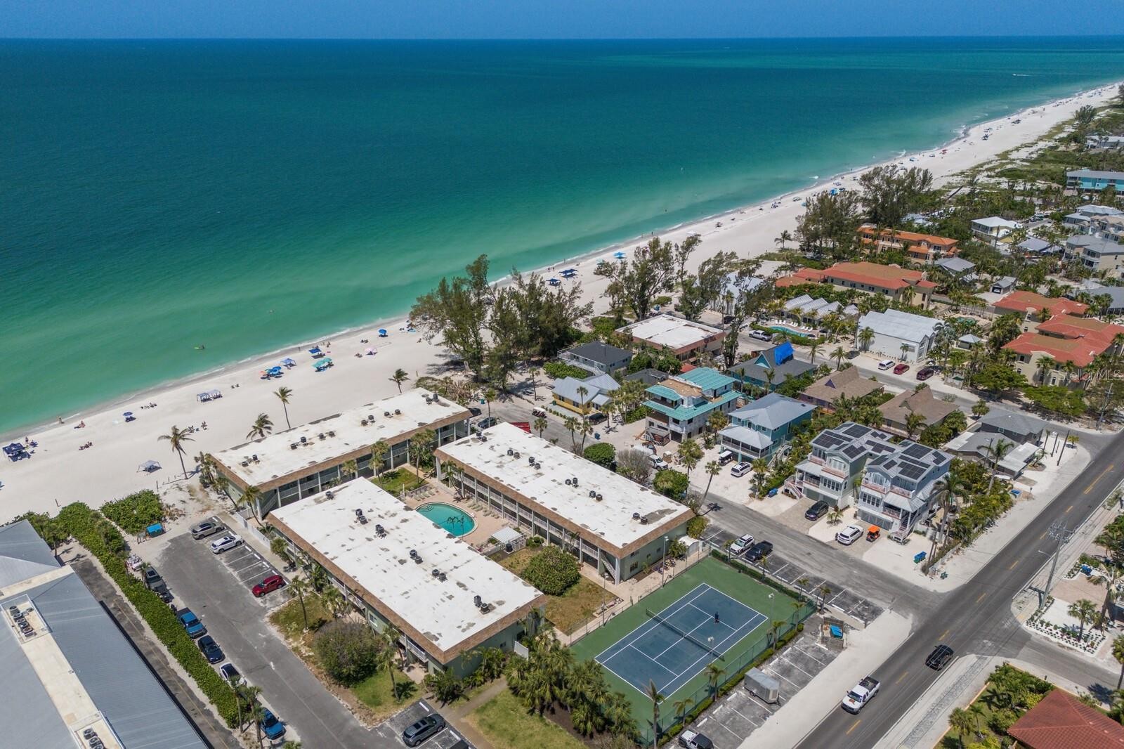 Situated in the desirable beachfront condominium of the Nautilus on Holmes Beach, this beautifully remodeled ground level condo offers a seamless blend of coastal charm and modern convenience just steps from the Gulf. Inside, thoughtful updates like shiplap paneling, crown molding, and a soft beach inspired color palette create a light and breezy feel throughout, while the stylish kitchen impresses with granite countertops, stainless steel appliances, crisp white cabinetry, and a central island perfect for casual gatherings. The open concept living and dining areas flow effortlessly to a private lanai, offering a tranquil space to unwind or enjoy morning coffee before heading to the beach, just a few yards away. Whether you're drawn to the sun soaked shoreline, the community’s sparkling pool, or the tennis/pickleball court, this unit delivers relaxed island living, turnkey furnishings with all the amenities including a long term on-site resident manager and the added bonus of being pet-friendly. Proven as a successful vacation rental with weekly rentals permitted, this property also presents an exceptional investment opportunity or a dreamy personal retreat in one of Anna Maria Island’s most sought after locations.