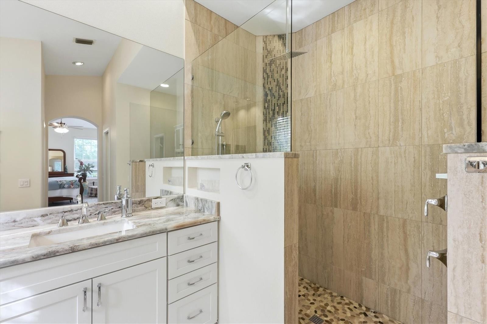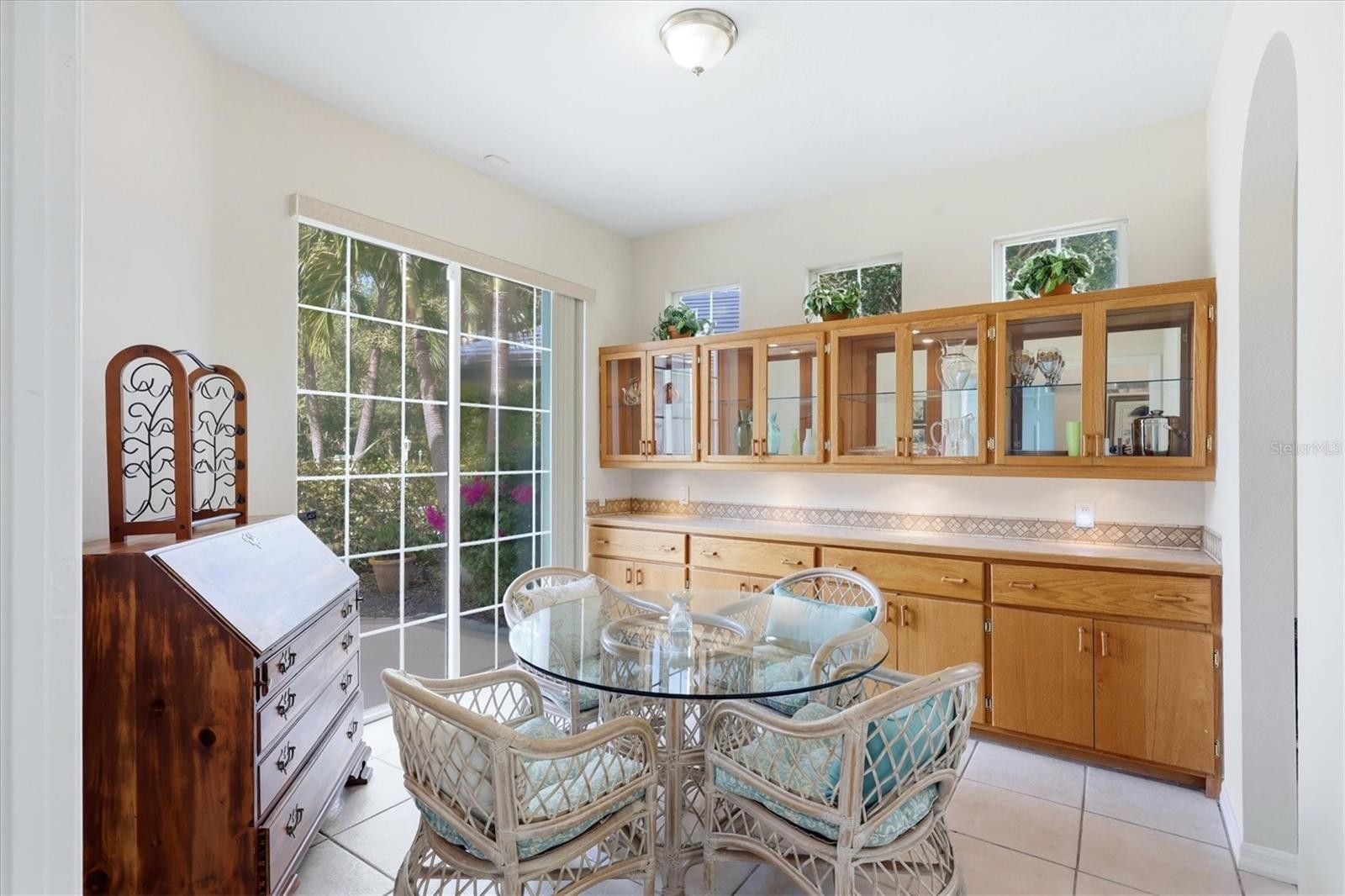 Welcome to award-winning University Park Country Club, where timeless elegance meets effortless Florida living. Located in the maintenance-free Notting Hill neighborhood, this beautifully maintained 2-bedroom, 2-bath residence with a versatile bonus room offers a move-in ready opportunity with thoughtful upgrades and an ideal open-concept layout. A charming walkway and driveway, surrounded by lush landscaping, lead to the home and its air-conditioned detached 2-car garage. Inside, a light-filled foyer with transom windows sets the stage for the bright and inviting interior, featuring high ceilings, ceramic tile flooring throughout, Bermuda shutters, and ceiling fans. Just off the entry, a flexible bonus space with custom built-ins connects seamlessly to the kitchen and opens to a private front courtyard via double sliders—perfect as a home office, den, or casual dining area. The main living area is designed for both comfort and entertaining, with a spacious open floor plan that unites the kitchen, dining, and living spaces. The kitchen is well-appointed with rich cherry-colored cabinetry, granite countertops, a breakfast bar, and both recessed and under-cabinet lighting. The dining area offers a charming window seat with cedar-lined storage, while the living room features a triple sliding glass door that opens to the lanai. An additional set of double sliders from the kitchen leads to a side patio, enhancing indoor-outdoor flow. The primary suite is a peaceful retreat with direct access to the lanai through double sliders and includes two closets with built-ins. The recently renovated ensuite bath delivers a spa-like experience with dual vanities, a freestanding soaking tub, and a spacious walk-in shower with bench. A comfortable guest bedroom, also with courtyard access via double sliders, is complemented by a full guest bath with a tub/shower combination. A dedicated laundry room adds everyday convenience. Step outside to the extended paver lanai, where a covered seating and dining area overlooks a serene pond with a private, tree-lined backdrop—no neighboring homes in sight. This tranquil outdoor space is perfect for relaxing or entertaining year-round. Recent updates include a NEW A/C (2026) and a TILE ROOF (2025), offering peace of mind for years to come. Furnishings and household items may be available separately, providing a potential turnkey opportunity. Residents of Notting Hill enjoy maintenance-free living along with access to a community pool and spa, all within one of the area’s most sought-after gated communities. University Park Country Club is consistently ranked one of the top courses in Florida featuring 27 holes of championship golf; tennis and pickleball; fitness center, croquet – as well as an array of social and group activities. Just a 15-minute drive outside this peaceful enclave is downtown Sarasota, with shopping, arts & theatres, museums, dining and entertainment, top-ranked healthcare, beaches and SRQ International Airport. Two miles east of UPCC is the convenience of I-75, University Town Center with over 300 nationally known and homegrown shops, restaurants, fitness studios, services and attractions, the Nate Benderson Park, home of world-class rowing events and the Mote Marine Aquarium. Enjoy the club amenities with the required minimum of a Social membership at UPCC, which is owned by the residents through a Recreation District.