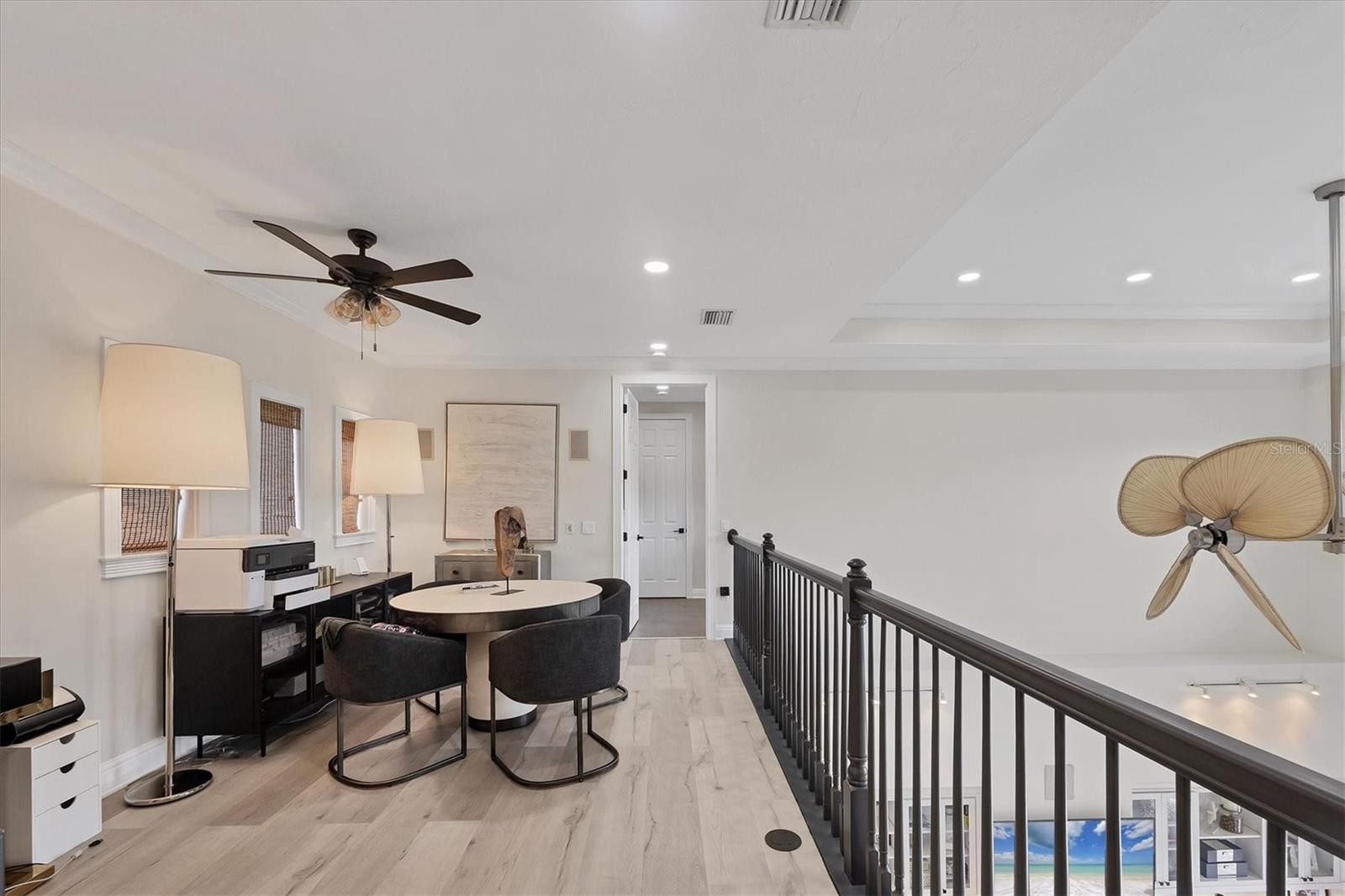 $100,000 Price Improvement! Key West-style custom-built 3-bedroom, 3.5-bath waterfront home located on deep water Crystal Canal in the gated community of Hawks Harbor. Metal roof and over $322,000 in renovations completed in 2022. Layout includes a soaring-ceiling family room, a lower-level flex space with two additional storage areas, and an upstairs loft ideal for a home office, sitting area, or game room. All bedrooms are ensuite. Kitchen features Zline and Decor appliances, Quartz countertops, stone backsplash, farmhouse sink, pantry closet, eat-in space, and a long island seating five. A whole-house water filtration system is included. The master suite includes French doors to a private balcony, step ceiling, walk-in custom closet, double sink with decorative fixtures, large walk-in shower with rain head and body sprays, garden tub, and a stone feature wall. Both secondary bedrooms feature tile flooring, walk-in closets, French doors to a balcony, and remodeled bathrooms with rain head and body spray showers. Laundry room includes Samsung washer/dryer, sink, and storage cabinetry. Outdoor amenities include a cozy front porch with composite decking, fenced backyard, spacious covered area, heated saltwater pool and spa with Pentair EasyTouch remote, putting green, Gardenia trees, grass yard with Invisible Fence. 23' new dock with water and electric plus a Jet Ski floating dock. Major systems: 2021 water heater; HVACs replaced in 2020, 2021, and 2022. Additional upgrades: luxury vinyl flooring, new interior and exterior paint, new front door, new main-level deck and stairs, new interior and exterior lighting including all new interior LEDs, new concrete sidewalk, impact glass, crown molding, paver driveway and walkway, wall/ceiling speakers, and freshly painted 26’ deep 2-car garage with ample storage. Conveniently located minutes from downtown Sarasota and IMG Academy, with close proximity to Sarasota Airport, restaurants, shops, St. Armands Circle, and Gulf beaches.
