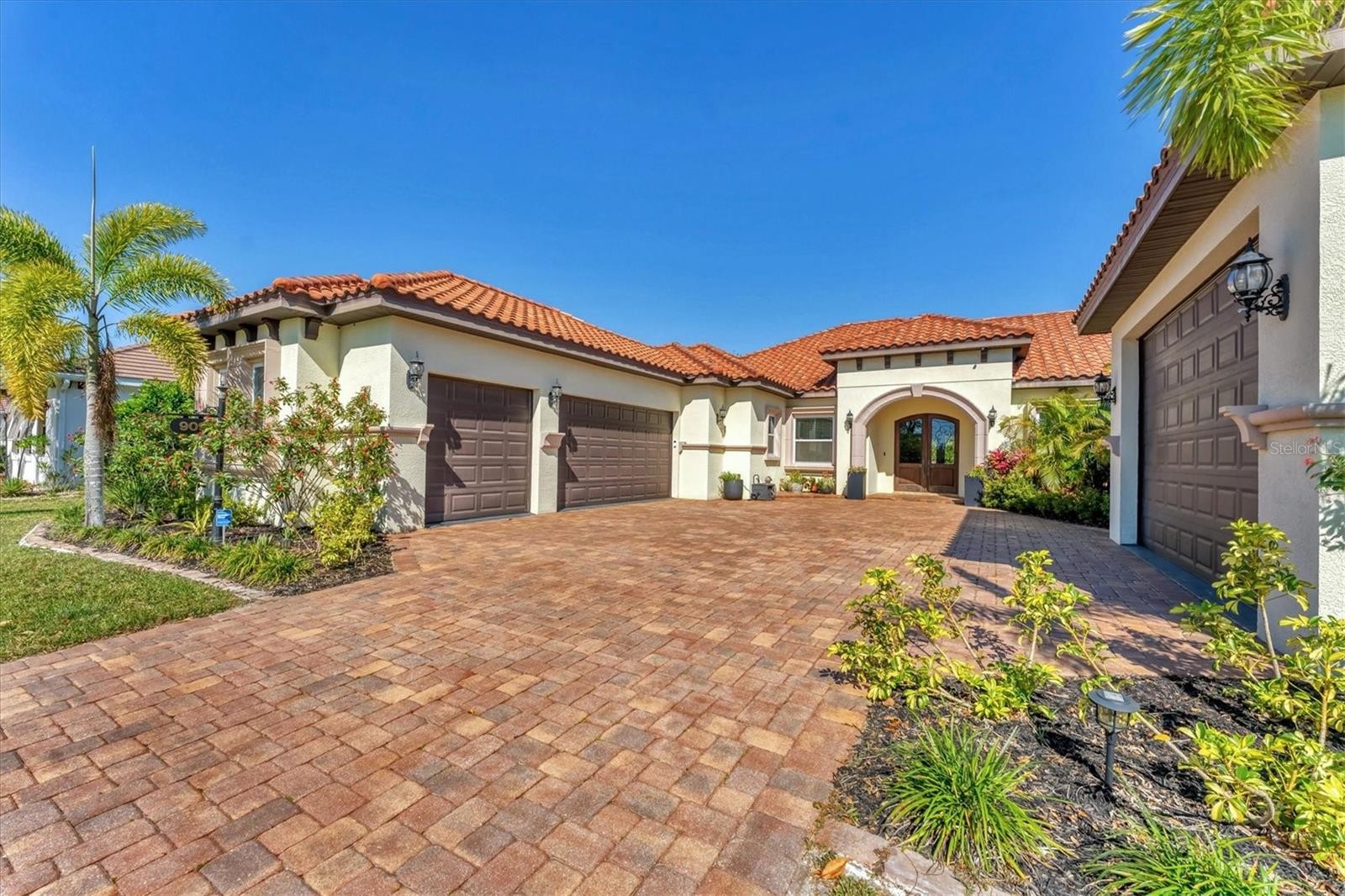 Welcome to paradise in Copperlefe, a hidden gem of a neighborhood with low HOA fees and NO CDD fee in East Bradenton just North of Lakewood Ranch, West of Greyhawk Landing and Southeast of Waterlefe. This award winning Summerville home sits on one of the most premier lots around and is situated at the end of a cul-de-sac. It's nearly impossible to find a lot like this with minimal traffic, tons of privacy, plenty of yard space on all four sides, water and preserve views along with a massive driveway. Upon entering you will immediately notice the open and bright entryway with high ceilings that lead you directly into the massive great room. This house looks like a model home as the owners have done tons of upgrades and meticulously maintained it. A huge island with solid surface countertops, custom backsplash, stainless steel appliances, and wood cabinets make up the kitchen, while decorative trim, crown molding, custom shelves, designer walls and custom built tray ceilings line the remaining areas of the home. The large master bedroom comes equipped with a 5 piece master bath, 2 walk in closets and is conveniently spaced away from the other bedrooms with quick access to the lanai. Outside you will find a massive screened in patio that has plenty of deck space around the pool and has a great covered lanai area as well. Head back inside and you will also find 2 other bedrooms, a perfect size flex room and 2 full bathrooms. The 3 car garage is also immaculate with an epoxy floor and plenty of space for your toys, games, storage and much more. Location is perfect with its proximity to schools, I75, UTC, Lakewood Ranch, golf courses, our beautiful beaches and even a public launch for the boater enthusiast. Don't miss your opportunity to call this gorgeous place "Home".