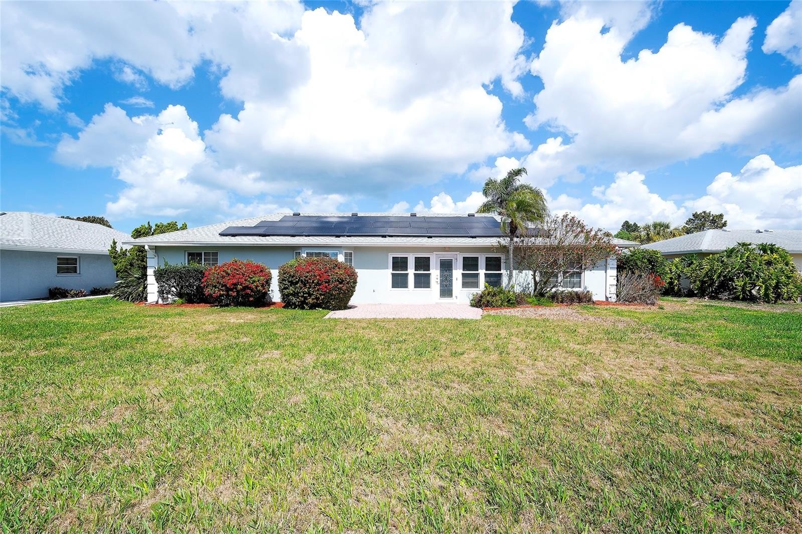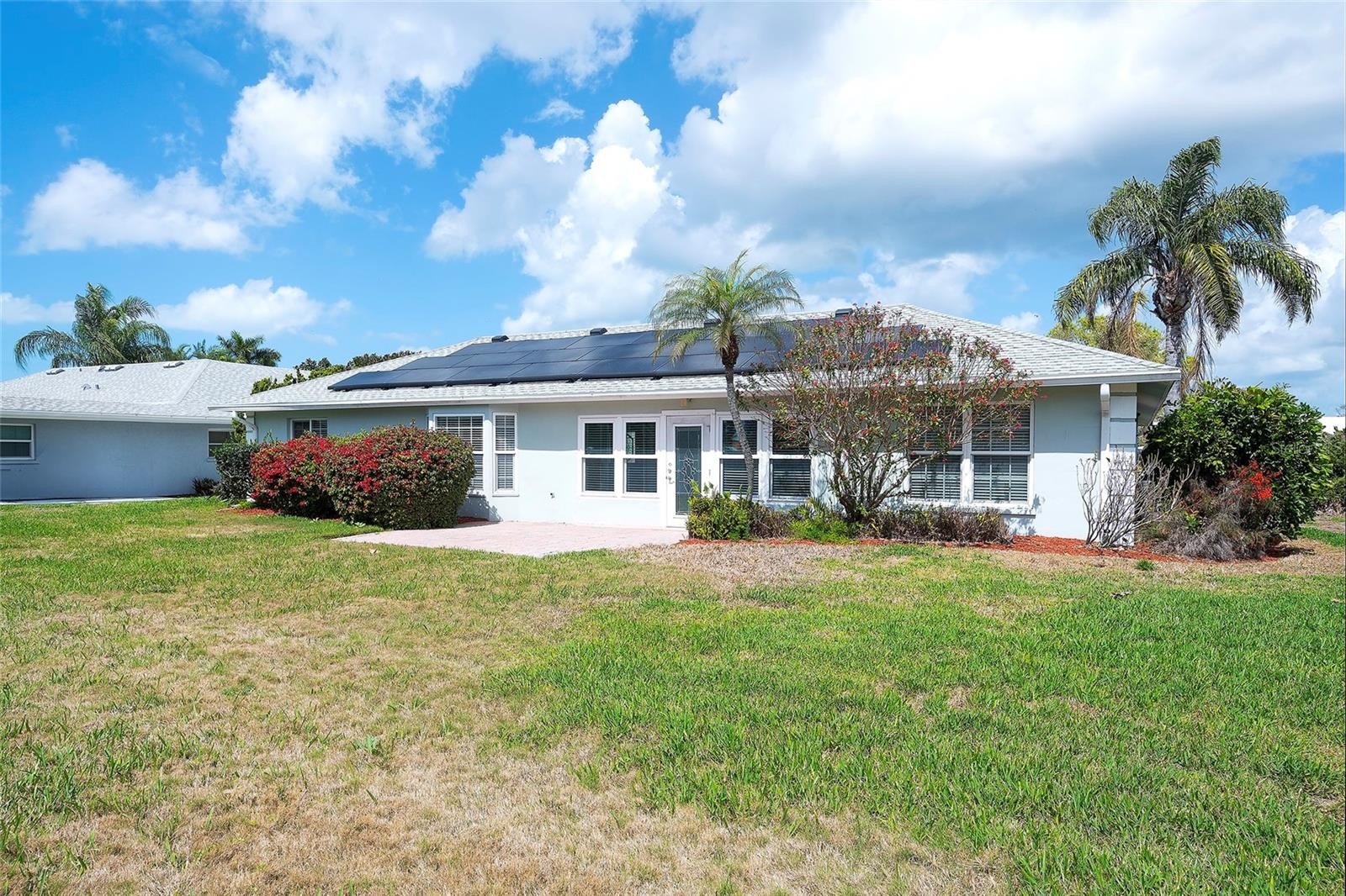 Welcome to this well-maintained 3-bedroom, 2-bath home nestled on a quiet street in the desirable Village Green neighborhood—perfectly located just a short drive from the area’s stunning Gulf beaches, Tampa and Sarasota airports, shopping, dining, hospitals, and everyday conveniences. This home provides the ease of single-level living with a new roof, Seller owned solar panels as well as a security system. A spacious floor plan and a desirable split-bedroom layout provide added privacy for family and guests. The heart of the home is the beautifully renovated kitchen, designed for both function and style. It features an abundance of wood cabinetry with plenty of storage, granite countertops, and generous workspace—perfect for the home chef. Guests can relax in the family room or gather at the convenient breakfast bar, making entertainment effortless. The interior also features new carpeting in the living room offering warmth and comfort. The primary suite includes a private bath with a walk-in shower and two closets, while the guest bedrooms have large closets and share a well-appointed bath with a tub. Enjoy additional living space in the light-filled Florida room, ideal for relaxing, working from home, a playroom or entertaining. Step outside to a backyard, perfect for pets, gardening, or simply unwinding in your private outdoor space. Plenty of room for a pool to be added. Other features include 2-car garage with storage, a hurricane-rated garage door, and is located in an X flood zone which offers added security and lower insurance costs. Village Green is a popular neighborhood with a voluntary HOA, known for its welcoming atmosphere and convenient location. Outdoor lovers will appreciate being close to Robinson Preserve, featuring scenic hiking and biking trails, running paths, kayaking areas, and a perfect place for family picnics..
