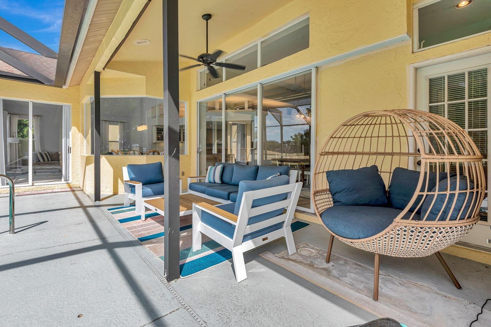 Rarely does a property combine a premier '18th-hole' vantage point with a completely reimagined, turnkey interior. This Serenoa crown jewel provides breathtaking, unobstructed panoramic views of the fairway and greens from your private, heated pool oasis. Inside, the home feels light and bright boasting a 2022 transformation featuring high-end tile, plush designer carpeting, and a crisp, modern color palette throughout. From the morning light hitting the greens to the high-efficiency pool heater (2022) ensuring year-round relaxation, every detail of this residence has been curated for the discerning buyer seeking the ultimate Sarasota golf-course lifestyle. You will enjoy the wildlife from the pool deck and the interior will fill your everyday with abundant natural light. If you are seeking serenity and tranquility, this home is for you.