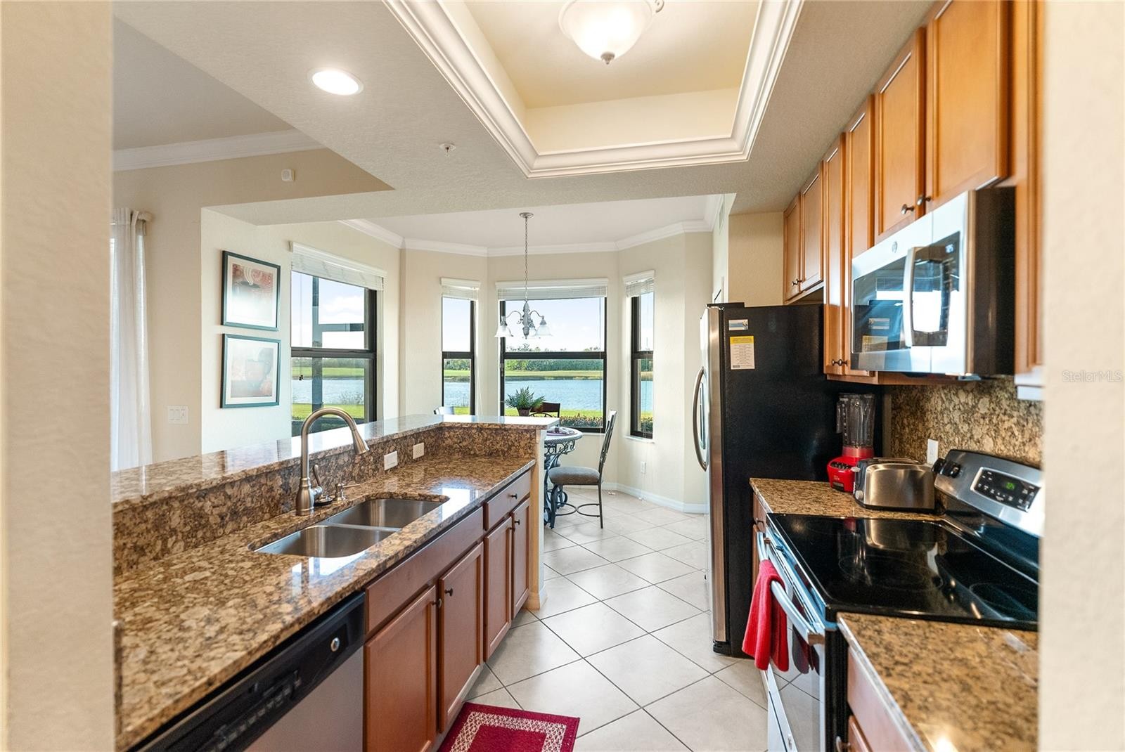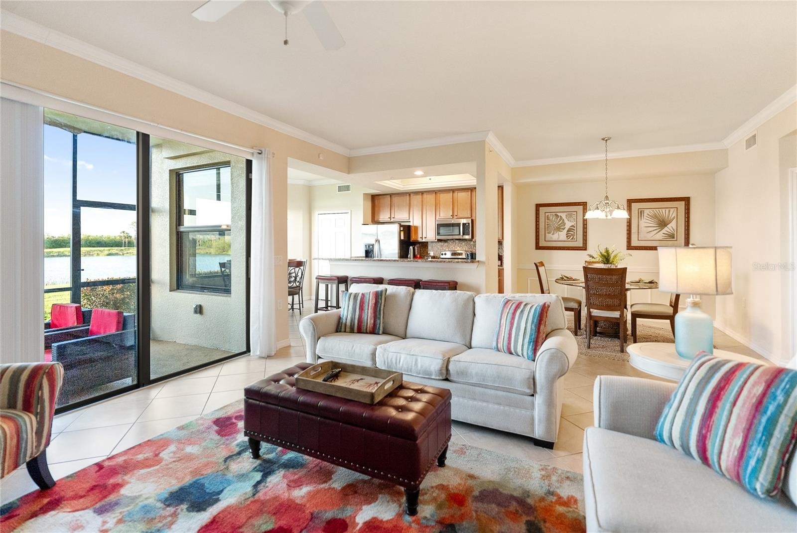 Step into this beautiful 2-bedroom, 2-bathroom first-floor veranda with a den/office and immediately feel at home. The open-concept floor plan creates a spacious and inviting atmosphere, where the living room, dining room, and eat-in kitchen all flow together and look out onto spectacular views of the golf course and the Manatee River. The primary bedroom is a comfortable retreat with its great walk-in closets and an ensuite bathroom featuring a walk-in shower and double sinks. The guest bedroom is perfect for visitors, accommodating a queen-sized bed with ease. For those who work from home or need a quiet space, the dedicated den/office is an ideal solution. After a day of activity, you can park your car out of the sun in the one-car garage and relax on the back lanai under the gentle breeze of a tropical fan. This property also presents a fantastic opportunity as a rental investment. *** UNIT RENTED JAN 26- APRIL 26 *** River Strand Golf and Country Club has an incredible array of amenities. You can tee off on the newly redesigned 27-hole course, play doubles on one of the nine Har-Tru tennis courts, or join friends for a game on one of the eight pickleball courts. For dining, you have options from the casual tiki bar with light bites and beverages to the Grille Room with a full menu. The Clubhouse restaurants are open seven days a week, offering drinks, appetizers, and dinner. The community is always buzzing with weekly entertainment, including bingo, Name that Tune, and trivia nights, along with holiday parties and clubs planned year-round. When it’s time to cool off, you'll have a hard time deciding which of the eight community pools to visit, including two resort-style pools with hot tubs and a resistance pool for exercise. River Strand is centrally located near a Costco-anchored marketplace, the popular UTC shopping and entertainment center, and numerous medical facilities. Beyond the community, world-famous beaches are within reach for a day of boating, fishing, collecting seashells, or dining on fresh seafood. It's time to join the others who have already found their happy place here in the River Strand Golf and Country Club.