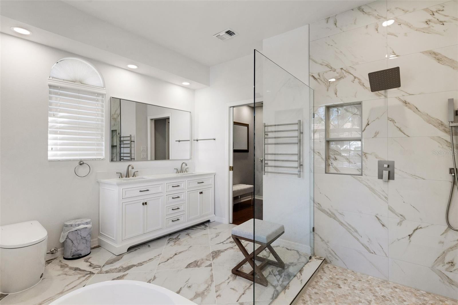 Come see this gorgeous home in Villa D’Este of the prestigious Prestancia community. This beautifully updated home offers a bright, open floor plan with soaring ceilings and effortless indoor-outdoor living. The inviting great room features a natural fireplace and wet bar, flowing into the dining area—perfect for entertaining or relaxing in style. This spacious three-bedroom, three-bath residence touts generously sized rooms and two primary suites, each with new custom-finished walk-in closets and recently renovated en-suite baths. The first floor offers two bedrooms for easy everyday living with the staircase leading to a cozy loft area and a private second primary suite upstairs. The kitchen showcases newer stainless steel appliances opening to a light-filled family room that enhances the home’s open, airy décor. Sliding glass doors create seamless indoor-outdoor living, leading to the lanai and a new semi-private patio with updated landscaping. Recent upgrades include a new roof and skylights, fresh interior paint, new ceiling fans throughout, custom motorized blinds, two newer HVAC systems, and R-40 insulation in the attic for enhanced energy efficiency. The primary bathroom is elevated with luxury towel warmers, while practical updates include a brand-new washer and dryer and a freshly painted two-car garage with epoxy-coated floors. Enjoy the elegance and security of this prestigious gated community, with optional membership available at TPC Prestancia Golf Club, offering two championship 18-hole courses. This exceptional home combines comfort, luxury, and lifestyle—schedule your private showing today.
