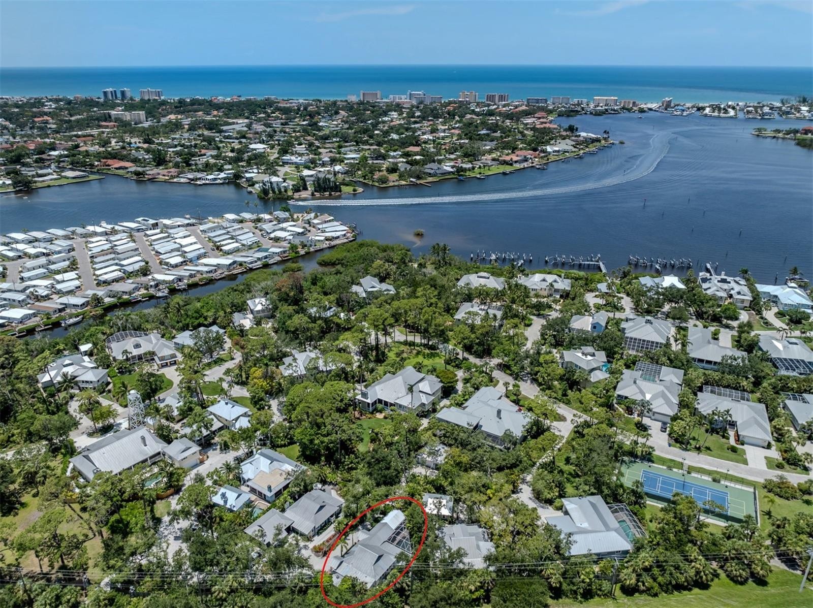 The historic Eagle Point Club in Venice is an exclusive waterfront community located within the privacy of mature foliage on the east, with Roberts Bay and the Intracoastal Waterway on all other sides. The only one of its kind, it was a creation circa 1910 by Bertha Palmer, famed figure in the early development of Sarasota County's Gulf, Bay and Waterfront lands. Eagle Point is a hidden gem, still mostly unknown and unseen by the crowds. Consisting of 24 acres of just 50 homes, 10 are original structures, listed on the National Register of Historic Places. The history is rich, but the focus today is on the pristine residence at 726 Eagle Point Dr. Situated on over 1/3 of an acre, the 1920-built home is move-in ready for the next lucky owners to fall in love with. Updates have been thoughtfully accomplished including the luxury kitchen and baths that are designed to seamlessly maintain the historic ambiance. High ceiling above, original heart of pine flooring below, shaded porches on 3 sides continue the ambiance. Updates in recent times include a perfectly-sized pool, heated and caged, that create outdoor living area of approx. 42X63, built in 2014. The beautifully designed free-standing 2+ car garage and storage building, built in 2011, is as handsome as it is functional. The amazing bonus amenity is the vintage clubhouse that includes guest rooms on the 2nd floor PLUS the free-standing 3-bedroom guest house next door, both of which may be reserved for visiting guests of homeowners. For those seeking a highly desired and unique Florida home, be sure to make an appointment to view this one-of-its-kind property.