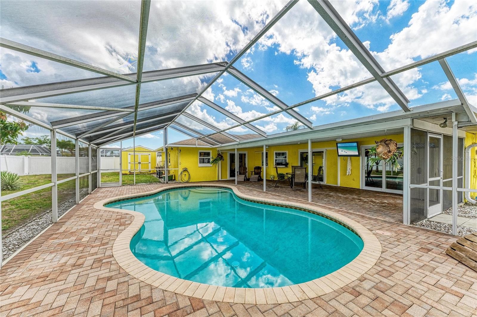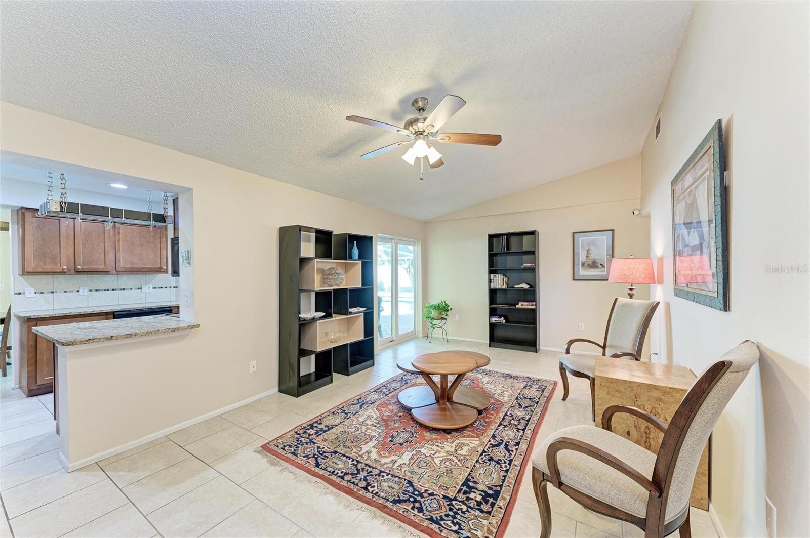 Welcome to this well-maintained 3-bedroom, 2-bath pool home in the desirable Whitfield area, offering a spacious split floor plan designed for comfort, privacy, and easy Florida living. At the center of the home is the open kitchen, featuring granite countertops, wood cabinetry, stainless steel appliances, decorative tile backsplash, and ample prep space. The kitchen is open to the living room with a convenient breakfast bar and includes a sliding passthrough window to the lanai, making outdoor dining and entertaining effortless while enjoying views of the pool. Tile flooring runs throughout the main living areas of the home, while abundant windows fill the interior with natural light. Multiple sliding glass doors from the family room, dining area, and primary suite open to the expansive screened lanai, creating seamless indoor-outdoor living. The private primary suite is situated on its own side of the home and features a large custom walk-in closet and en-suite bath, providing a peaceful retreat. Additional highlights include an inside laundry room with and a full two-car garage. Step outside to enjoy over 300 square feet of covered outdoor living space with a screened enclosure and paver deck surrounding the pool, ideal for relaxing or entertaining year-round. Major updates include full roof replacement (2020), new driveway (2022), and impact storm windows, sliders, and doors installed in 2024, providing added durability and peace of mind. Located in the Whitfield community with a voluntary HOA, this home offers convenient access to both Sarasota and Bradenton, with nearby shopping, dining, airports, and the beautiful Gulf beaches just a short drive away.