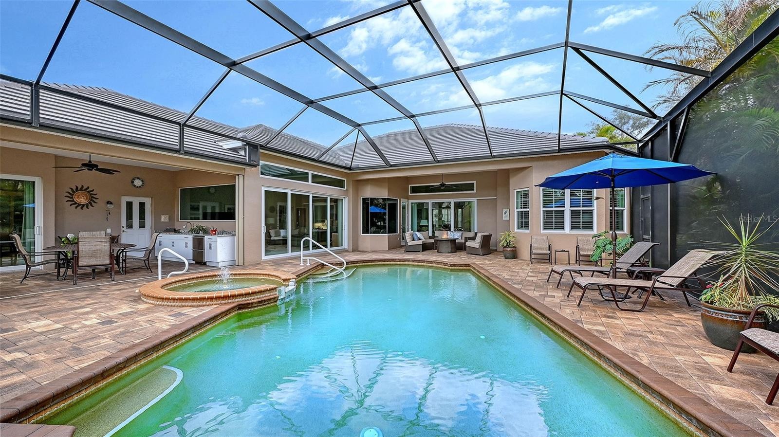 This beautifully updated home in the warm and friendly Warwick Gardens subdivision, is situated on a very private lot. The tile roof was replaced in 2025 and it features 3 bedrooms, 3 ½ bathrooms and a large office. The leaded glass double doors provide entry to the spacious living/dining room combination. Built-in cabinetry, and a gas fireplace enhance this space which opens to impressive views of the pool and preserve through the triple glass sliders. The kitchen was designed with a desk area, large pantry closet, wine cooler, center island and is updated with quartz countertops, new backsplash and granite sink. Enjoy the outdoors when you open the wall of sliders in the family room. An aquarium window enhances the breakfast nook. Walk to the master suite with a cozy sitting area, private access to the lanai, two custom walk-in closets and an elegant ensuite bath, featuring a garden tub and separate vanities with granite countertops. The two spacious guest bedrooms provide privacy and comfort, one with a full ensuite walk-in shower. The large office has a view of the preserve through the large picture window and opens to the lanai through double sliders. The “Clearview” pool cage provides an outdoor atmosphere with its unobstructed views. Custom cabinetry, granite countertops and a sink are an added convenience to the laundry room. This home includes luxury vinyl floors, a full house generator, and hurricane windows and doors. Please see the “Property Features” addendum for a complete list of the renovations.