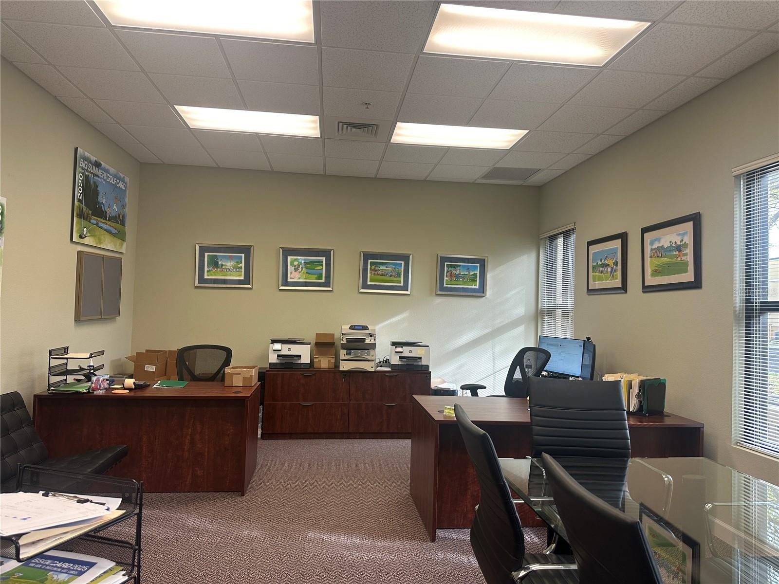 Under contract-accepting backup offers. Enter this immaculate first floor, suite 120 - office space featuring a welcoming reception area at the front. The layout includes a kitchenette, private bathroom, large IT closet, and an additional storage closet for convenience. The spacious main office measures 23x15 and currently accommodates two desks and a large conference table with plenty of room to spare. Large windows throughout the space provide abundant natural light, creating a bright and inviting work environment. Gross price is $2,535.00 a month.