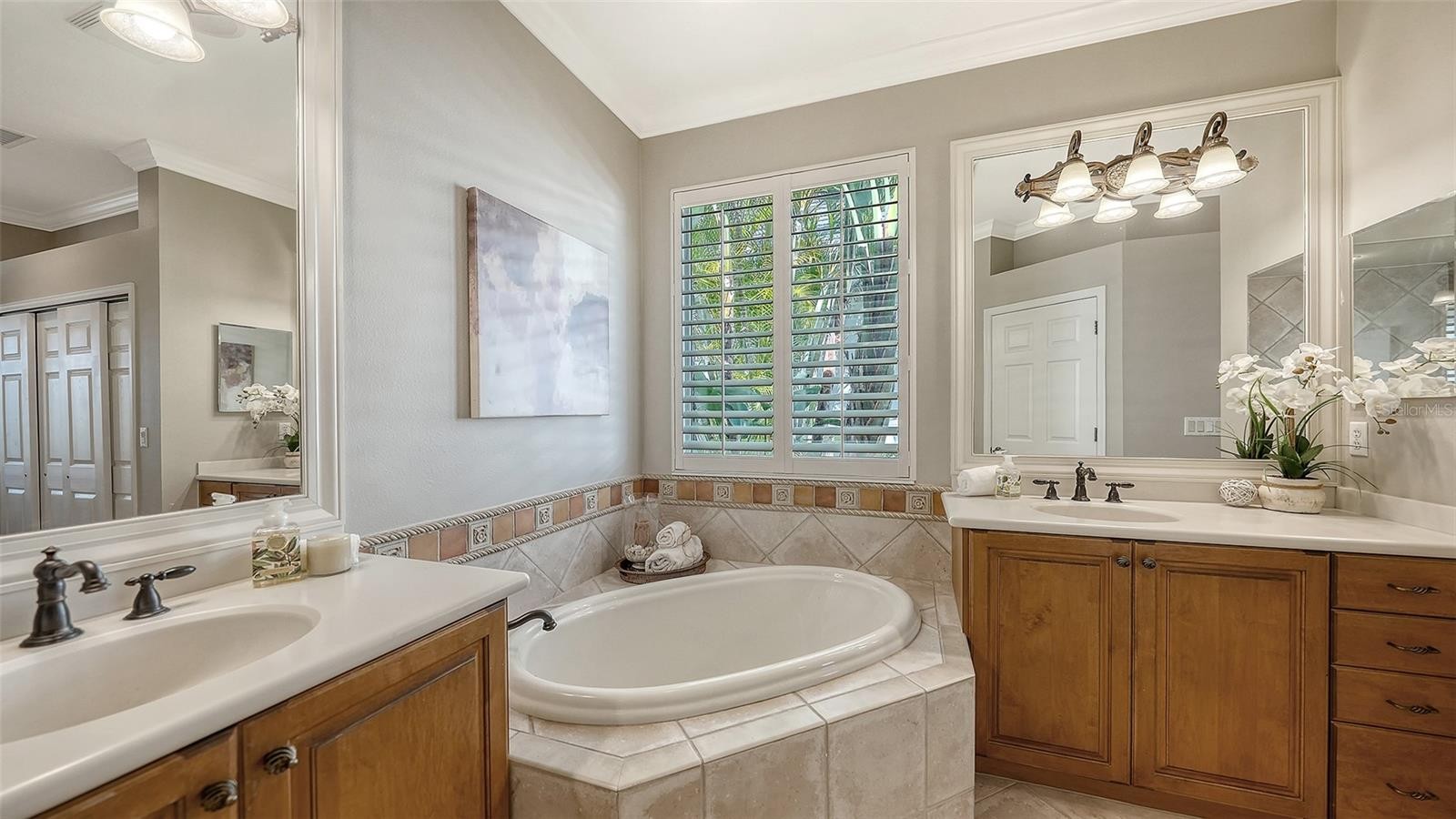 Experience the best of the Lakewood Ranch lifestyle in this impeccably maintained home, perfectly positioned to capture stunning water, golf course, and preserve views within the gated Lakewood Ranch Country Club. Nestled in a maintenance-free neighborhood, this residence showcases refined designer details throughout, including an open-concept layout with formal dining, a private den with engineered hardwood floors, rich millwork, crown molding, and neutral tile in the main living areas. The elegant owner’s retreat is a true sanctuary, featuring a tray ceiling, hardwood flooring, a charming bay-window sitting area, private lanai access, and two custom-fitted walk-in closets. The spa-inspired bath offers dual vanities, a soaking garden tub, decorative tile accents, and a walk-in shower. The beautifully appointed kitchen highlights warm wood cabinetry, stainless steel appliances, granite countertops, tile backsplash, a breakfast bar, and a sunny dinette space—ideal for both casual meals and entertaining. Indoor-outdoor living shines with sliding glass doors that open to the paver lanai, complete with covered seating areas, a heated pool, summer kitchen, lush landscaping, and breathtaking views that create a serene, resort-style setting. Recent upgrades include a new Trane HVAC system (2021), a renovated laundry room with added cabinetry, new flooring in the den and owner’s suite (2021), and custom closet built-ins in every bedroom. Located in the heart of Lakewood Ranch, you’ll enjoy easy access to exceptional dining, championship golf, tennis and fitness facilities, top medical centers, premier shopping, Main Street, and the Mall at University Town Center—just minutes away. This home truly offers luxury, comfort, and an unbeatable lifestyle.