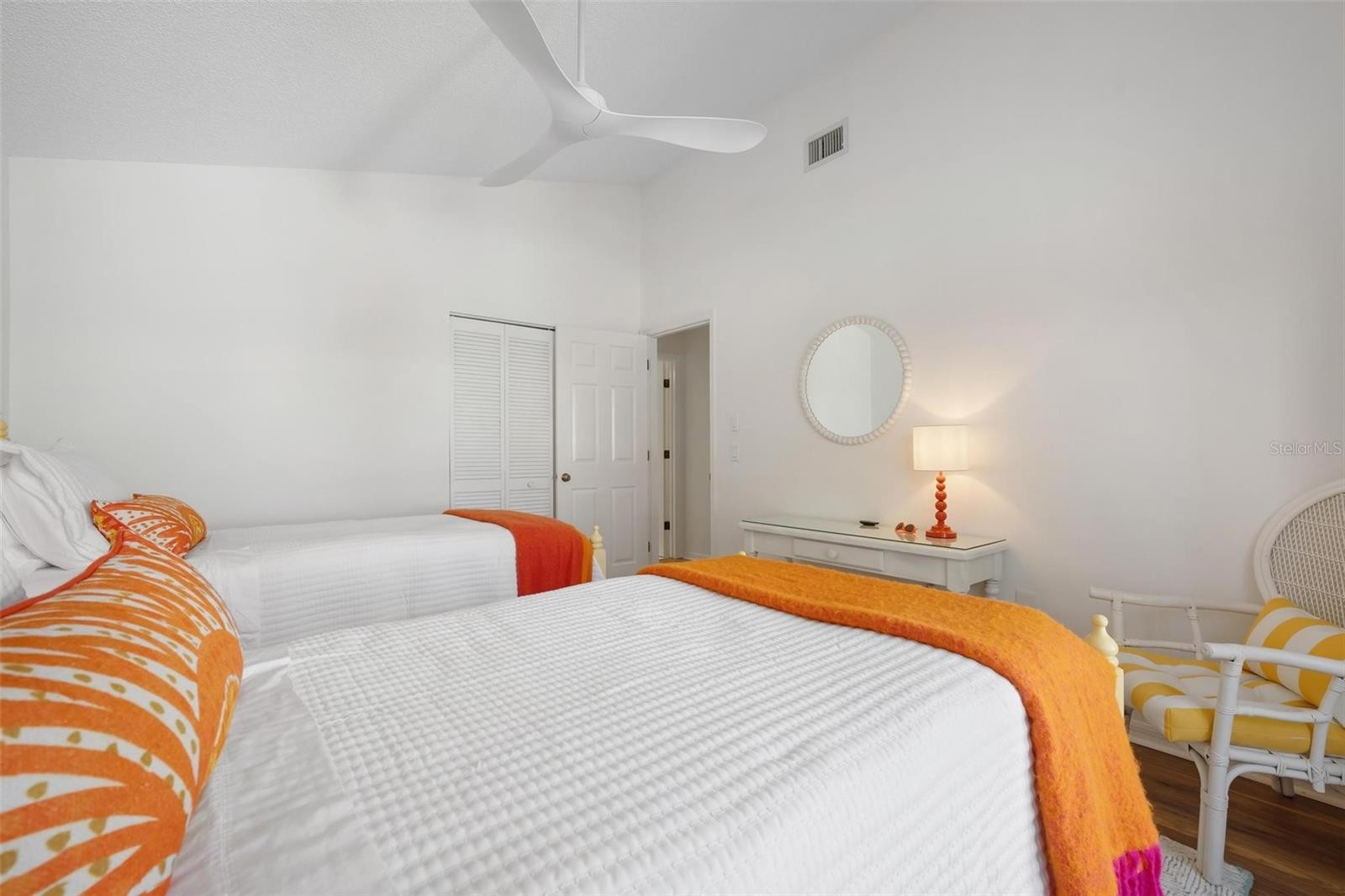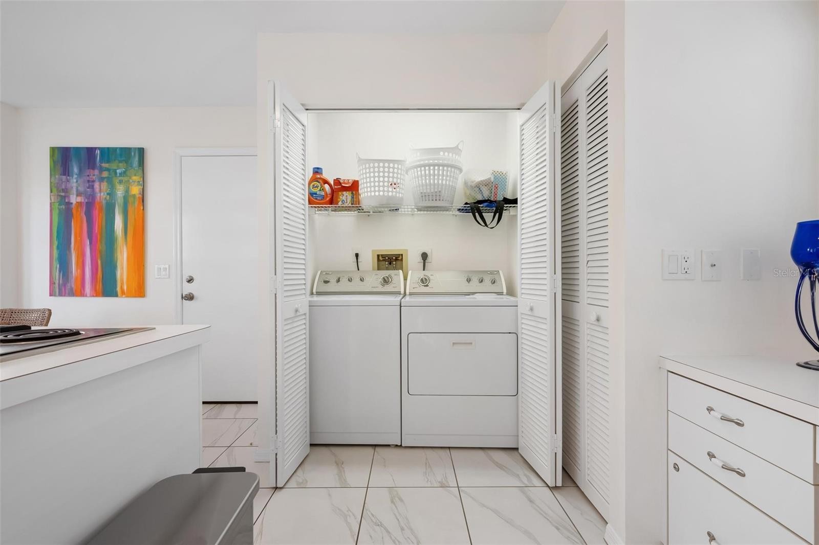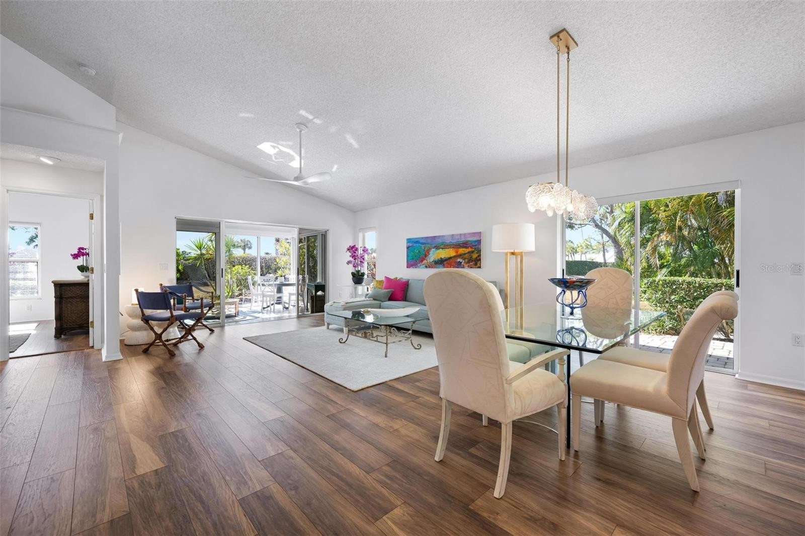 This meticulous, move-in ready freestanding two-bedroom, two-bath villa offers refined living in a maintained setting. The home features elegant laminate wood flooring throughout. The kitchen has bright white cabinetry and closet with full washer and dryer, new water heater. The enclosed rear lanai has air conditioning and tiled floor, creating a seamless indoor-outdoor retreat ideal for year-round enjoyment. A private side patio with pavers overlooks a lush, landscaped garden, providing a tranquil space for morning coffee. The residence is complemented by a spacious two-car garage with built-in shelving and a utility tub, combining convenience with thoughtful functionality. Located on a cul-de-sac street, this exclusive community boasts its own private clubhouse and resort-style pool, enhancing the luxury lifestyle. This home is in the Plantation Golf and Country Club. Memberships are available but not required.