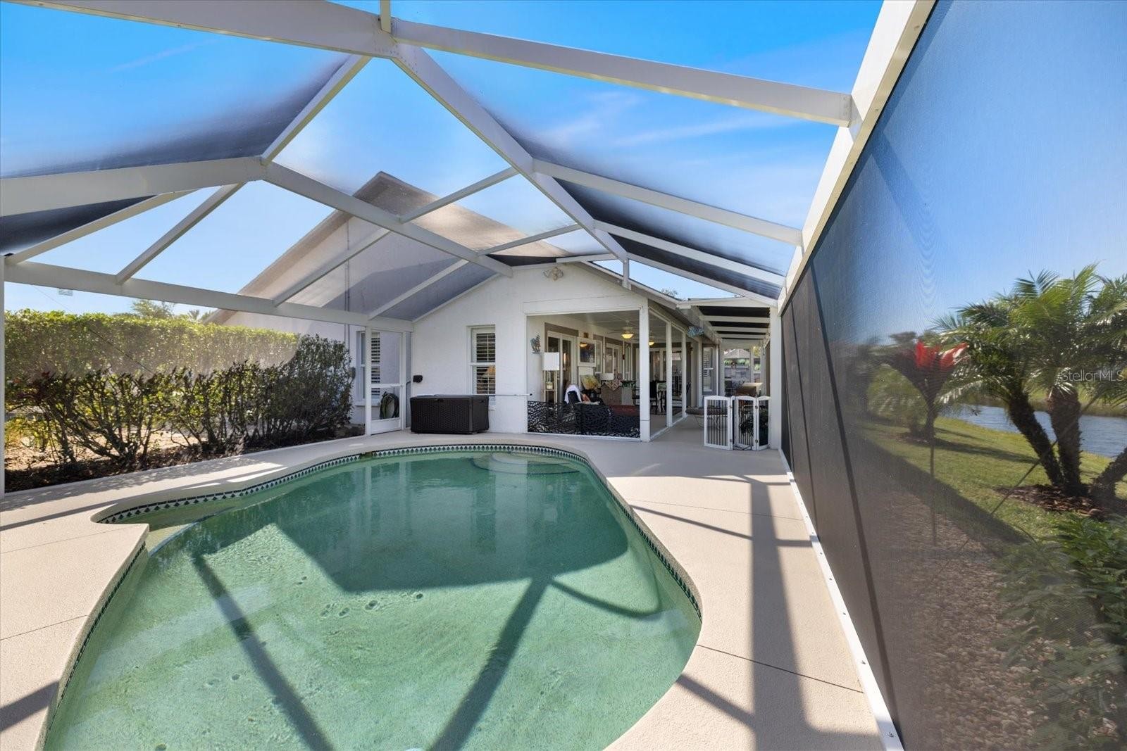 Sweet like Sugar! Welcome to Paradise at 734 Sugarwood Way in the highly sought-after Lakes of Chestnut Creek. This TURNKEY FURNISHED home is full of upgrades and sits in a quiet cul-de-sac, offering privacy and curb appeal with a low-maintenance, beautifully landscaped front yard. Enjoy peace of mind with major updates, including a HURRICANE WINDOWS, NEW ROOF (2022), NEW POOL CAGE (2023), and COMPLETE RE-PIPING (2020). Inside, the open floor plan and high ceilings create a bright and airy feel, with hurricane-resistant sliding glass doors showcasing stunning lake views. The main living areas feature ceramic tile flooring, while the bedrooms have warm laminate flooring. The primary suite is a relaxing retreat with vaulted ceilings, a walk-in closet, and a spacious en-suite bathroom with a garden tub and walk-in shower. The second bedroom is bright and inviting, while a third bedroom—currently a home office—offers flexibility. The galley-style kitchen is a chef’s dream, featuring stainless steel appliances, granite countertops, slow-close wood cabinetry, and a smooth transition to the dining and outdoor areas. Step outside into your fully screened pool area with picture-window screens, surrounded by Pygmy palms for a tropical touch. The backyard is private and perfect for entertaining, with lush landscaping, a custom paver patio, and even a dog run! Whether you're enjoying a swim, hosting guests, or simply relaxing with a pond view, this home is the perfect Florida retreat. SUPER LOW HOA and NO CDD. Don’t miss out—schedule your private tour today!