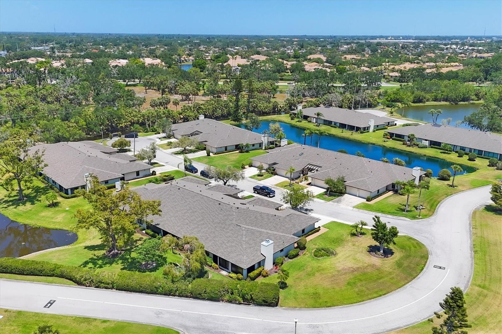 Welcome to a serene slice of Sarasota living in this immaculate maintenance-free villa. Offering peace of mind while tucked away in the lush, 36-acre gated community in Ballantrae within Sarasota’s Palmer Ranch area, this impeccably maintained villa redefines carefree Florida living. With 2,282 square feet of air-conditioned space (2,901 total), this three-bedroom, two-bath end unit offers privacy and comfort of a single-family home, without the upkeep. The villa’s spacious, open-concept design flows seamlessly from its renovated kitchen, featuring light cabinetry and a cozy eat-in area, into expansive living and family rooms adorned with new luxury vinyl plank flooring. An enclosed and vented lanai extends the living space, making it perfect for year-round enjoyment. Inside, the large primary suite boasts a sitting area or office nook, a spacious and well-organized closet, and serene views of the surrounding greenery. Two well-appointed guest rooms with organized wall closets ensure ample room for visitors or hobbies. This villa is move-in ready with numerous upgrades such as replumbing, a 2019 HVAC system, a newer water heater, washer and dryer, hurricane shutters and a new roof in 2024. Easy-care luxury vinyl plank floors and sunshades add to the relaxed, low-maintenance appeal. Ballantrae is cherished for its privacy and tranquility, offering residents a serene, park-like setting. Behind the gates, the community is also well-managed, providing added peace of mind. Condominium dues cover exterior maintenance so homeowners can focus on enjoying the lifestyle. A private walking path leads to the Sarasota Sports Club, where optional memberships offer access to tennis courts, a pool and a fully equipped fitness center. Conveniently near the Legacy Trail, shopping dining and entertainment, and just minutes from the award-winning white sands of Siesta Key Beach, this villa blends tranquility, quality and convenience in one exceptional package.