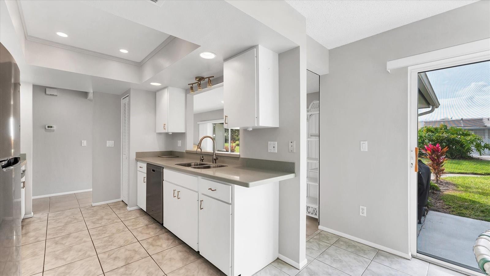 Welcome to Village Green, a highly desirable, maintenance-free 55+ community in West Bradenton! You will notice **“Mr. Clean lived here!”** This well-maintained 2-bedroom, 2-bath condo with a 2-car garage is ideally located just steps from the community pool, offering the ultimate in convenience and relaxed Florida living. Walk through the steel gate into your private foyer. This spacious, light-filled open floor plan features tile floors with carpet in the bedrooms, and comfortable living and dining areas—perfect for entertaining or everyday enjoyment. The kitchen offers new appliances, ample cabinetry, a pantry, and generous workspace. The primary suite includes **his-and-hers closets** and an en-suite bath. The **lanai** features double sliding glass doors, great for entertaining or just relaxing. This condo has an inside utility room with a washer, dryer, and laundry tub, and a large enough area to accommodate an office. Located on a dead-end street, enjoy the peaceful setting with sidewalks and beautifully landscaped grounds that Village Green is known for. Residents appreciate the active yet laid-back lifestyle, with amenities including a heated pool and walking paths. Conveniently located near shopping, dining, medical facilities, Blake Hospital, downtown Bradenton, and just a short drive to the area’s renowned Gulf beaches. **Located outside of a flood zone due to one of the highest elevations.** Whether you’re looking for a full-time residence or a seasonal retreat, this condo offers one of West Bradenton’s most sought-after 55+ communities.