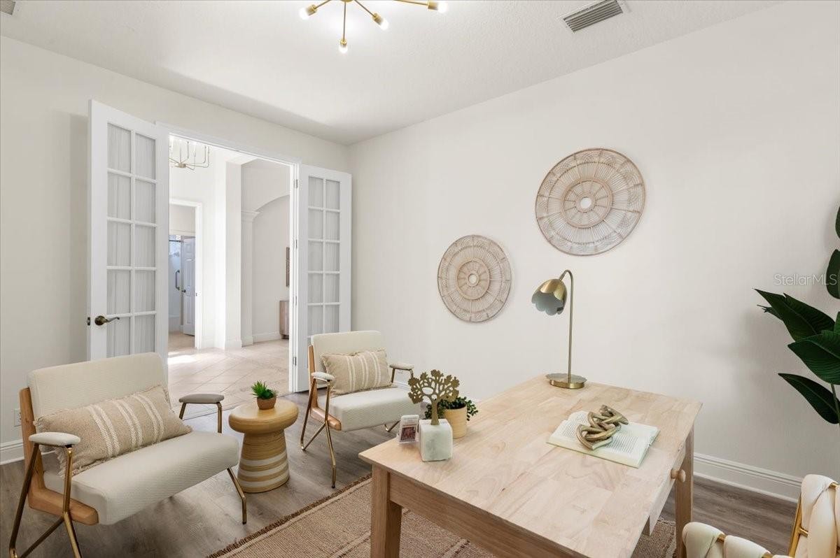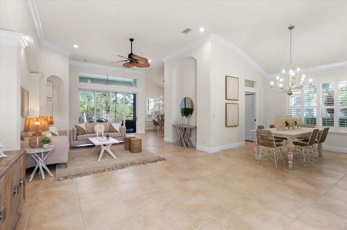 Arrive through the gates of Lakewood Ranch Country Club to this beautifully maintained three-bedroom plus den pool home, ideally situated on a private preserve homesite in the maintenance-free community of Edenmore. Surrounded by lush landscaping and tranquil nature views, this residence offers comfort, privacy, and the best of Florida living. Inside, soaring ceilings and abundant natural light highlight the open floor plan. The kitchen features rich wood cabinetry, granite countertops, a tile backsplash, and a charming breakfast nook overlooking the pool and preserve. It flows seamlessly into the spacious great room, creating an inviting setting for everyday living and entertaining, while the formal dining room offers the perfect space for gatherings. A versatile den with French glass doors provides an ideal home office or flex space. The owner’s suite serves as a peaceful retreat with a sitting area, dual closets, and an updated bath featuring split vanities, a soaking tub, and a walk-in shower. Two additional guest bedrooms offer generous space and convenient access to a full bath. Outdoor living is enhanced by a screened paver lanai with a sparkling pool and cascading waterfall, all set against serene preserve views for added privacy. Notable updates include a new A/C (2024), high-efficiency water heater (2021), interior painting (2026), double-pane windows and sliders, and a spacious two-car garage with additional storage. Edenmore is a maintenance-free community within the Country Club of Lakewood Ranch. Residents enjoy optional membership to championship golf courses, multiple clubhouses, resort-style pools, a state-of-the-art fitness and racquet facility, tennis and pickleball, and a vibrant year-round social calendar. Enjoy the ultimate Florida lifestyle in a prime location near exceptional shopping and dining, Lakewood Ranch Main Street, Waterside, and world-renowned Gulf beaches.