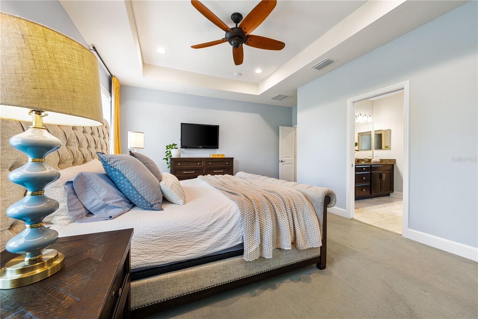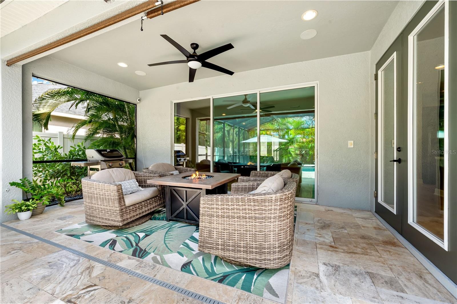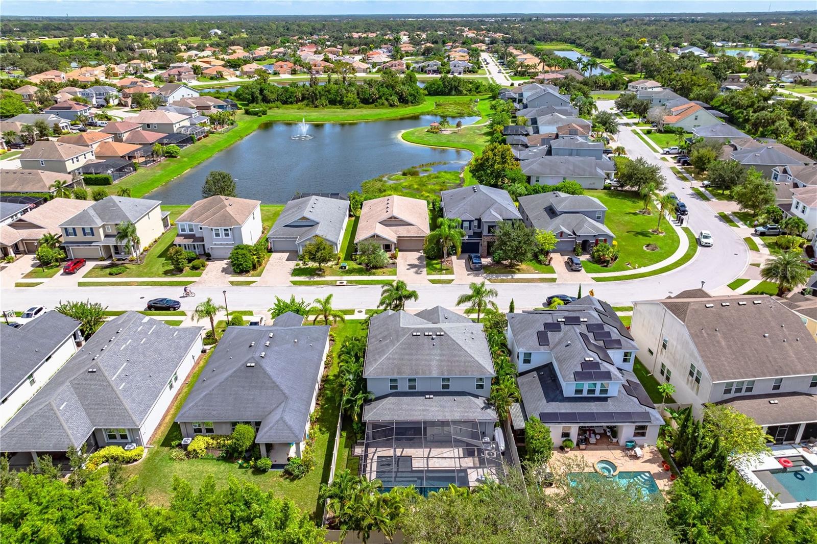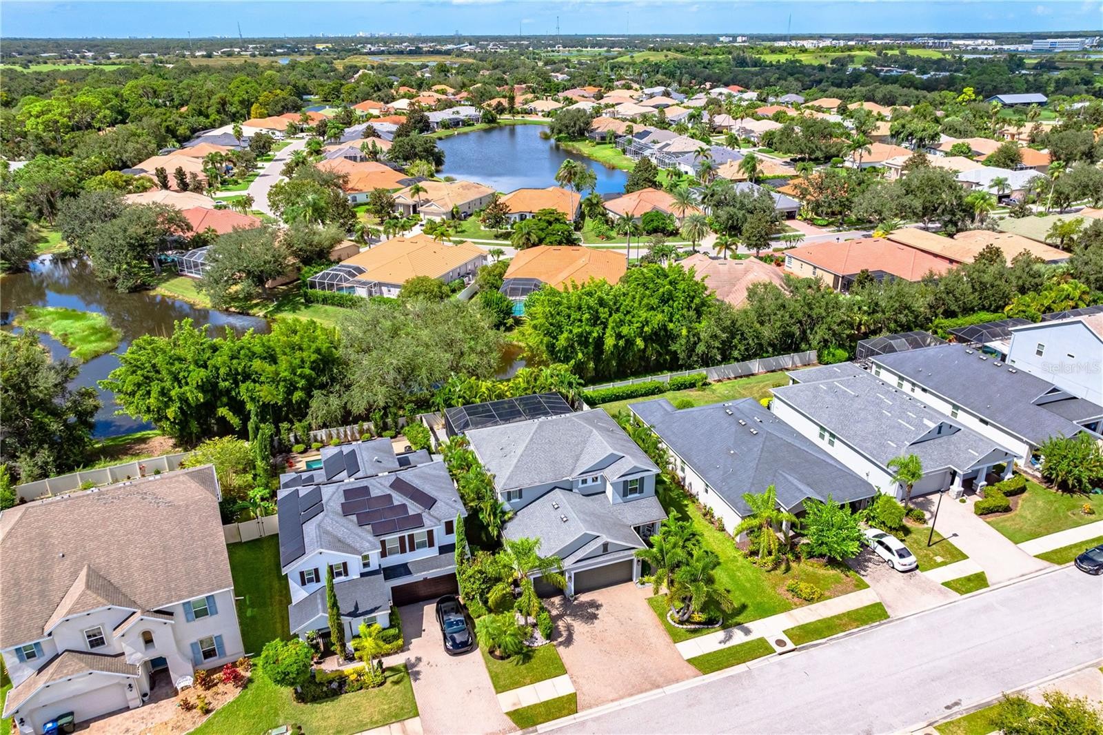 Experience peaceful poolside coffee and sunset evenings. This meticulously maintained 4 bedroom, 2 ½ bath home offers over 2800 square feet of thoughtfully designed living space. From the moment you enter the foyer, your eye is drawn through the dining and great room to a wall of sliding glass doors framing the stunning backyard oasis. Inside, wood-look tile flows throughout the downstairs living areas. The open-concept kitchen is designed for gathering, offering granite countertops, an extended breakfast bar, wood cabinetry, a large pantry, and an eat-in dining space. A first-floor bedroom and half bath provide flexibility for guests, a home office, or fitness room. Upstairs, primary suite features a beautiful en-suite bath and spacious closet. Two additional bedrooms and a versatile loft complete the second level—the loft can easily be converted into a fifth bedroom if desired. Upstairs, the spacious primary suite features a beautiful en-suite bath and oversized walk-in closet. Two additional bedrooms and a versatile loft complete the second level—the loft can easily be converted into a fifth bedroom if desired. Hurricane shutters provide added protection. The heated saltwater pool installed in 2022 features a sun shelf and large travertine deck with lounging and covered seating areas. Professionally designed landscaping and landscape lighting create a truly spectacular setting. This well maintained home has notable updates and upgrades including new exterior paint in 2023, a new water heater in 2024, hurricane shutters and and a whole-house 50-amp generator hookup for peace of mind. A fenced private yard and three-car garage complete this exceptional property. Situated near Tatum Ridge Elementary School and Celery Fields, this location offers quick access to University Town Center, Lakewood Ranch, I-75, downtown Sarasota, and the area’s world-renowned beaches.Residents of Palmer Reserve enjoy no CDD fees and a low HOA that includes cable, internet, irrigation, community playground, and common area maintenance. This home truly showcases the best of Sarasota living.