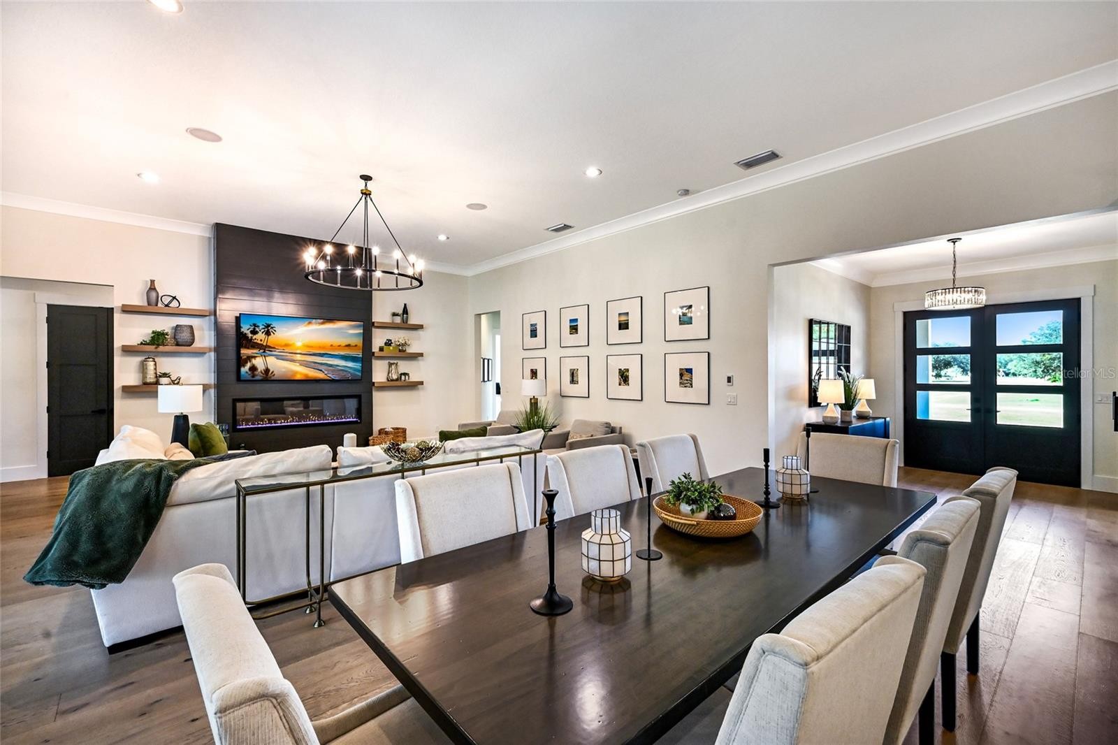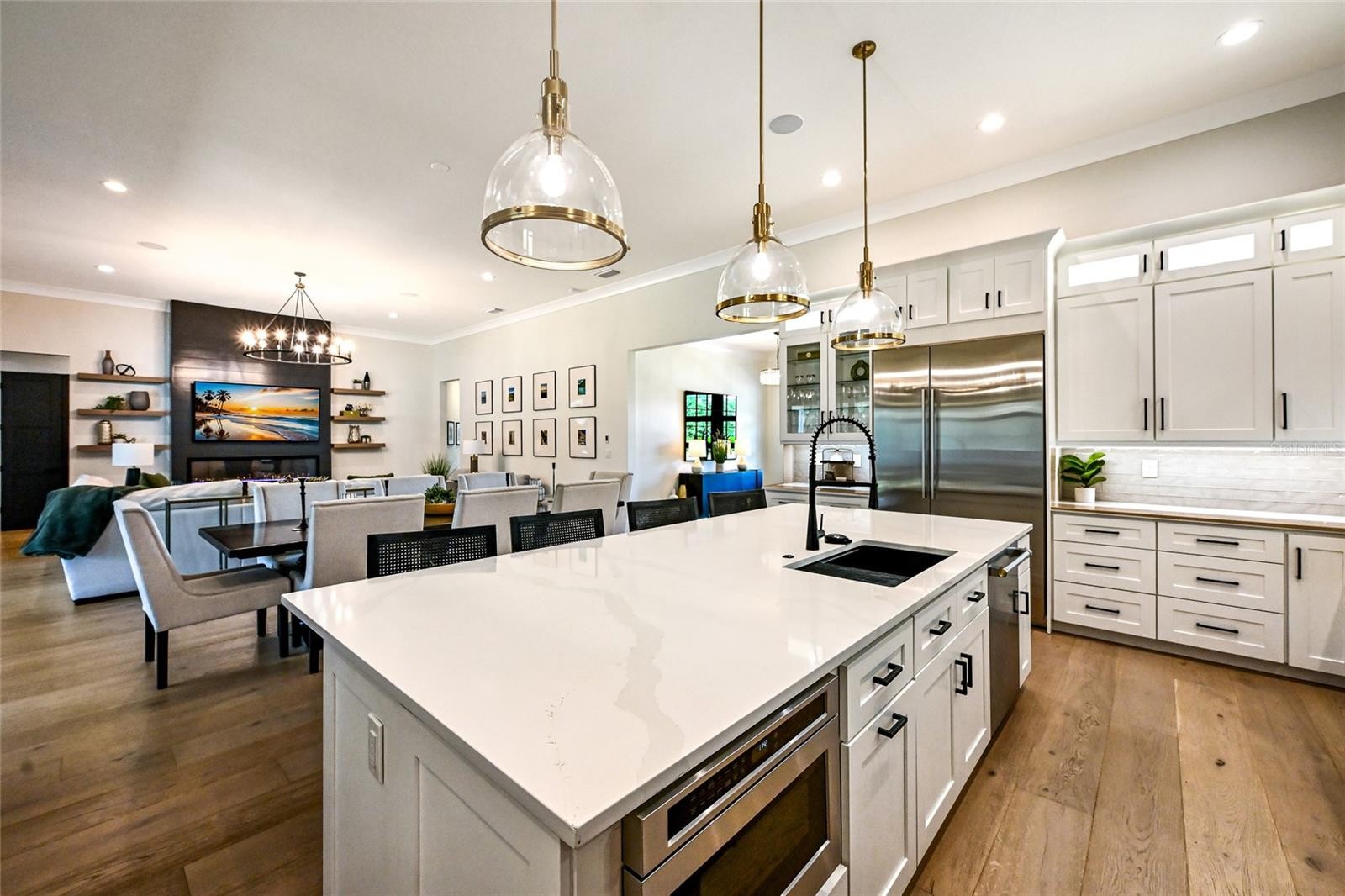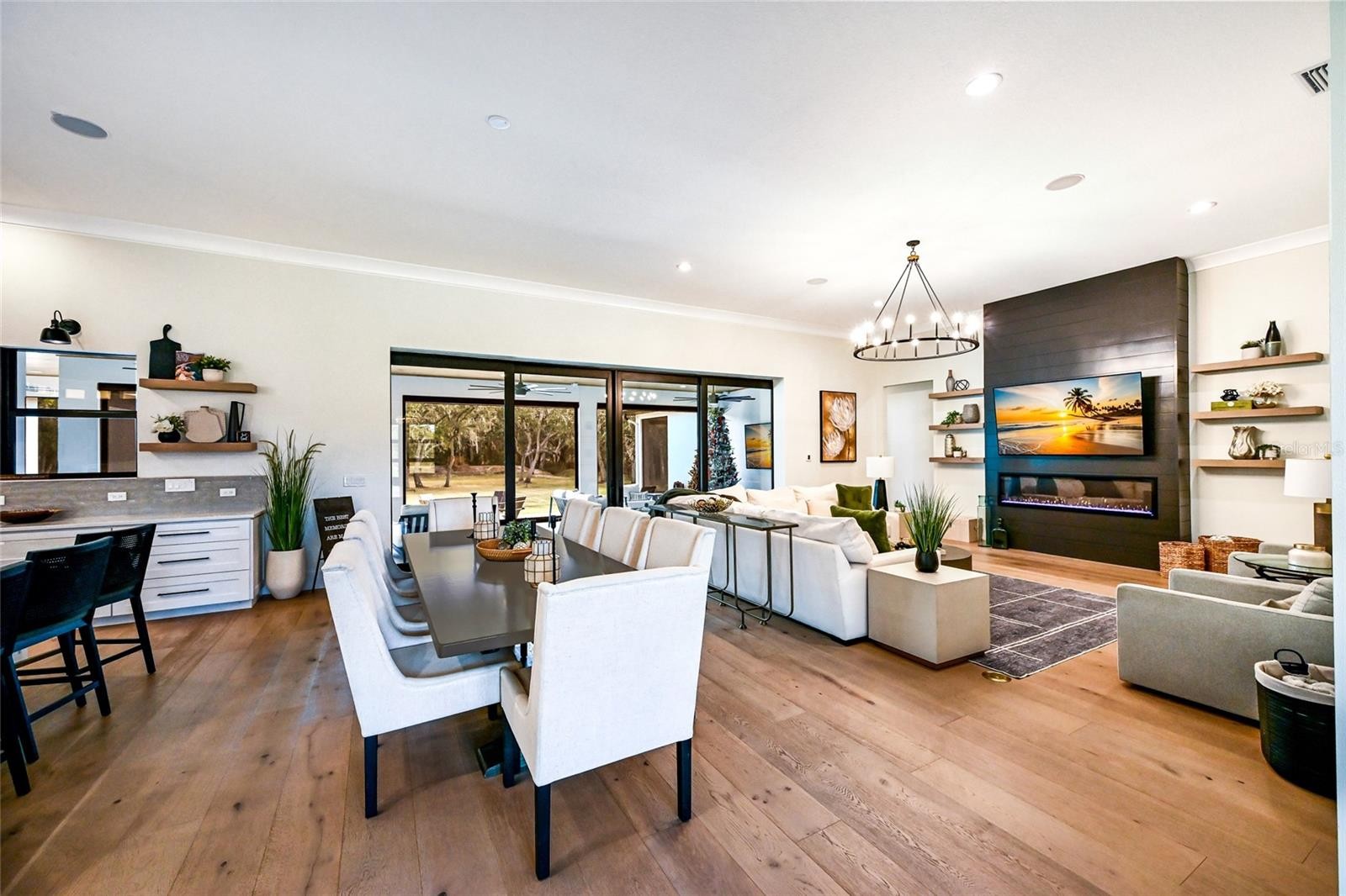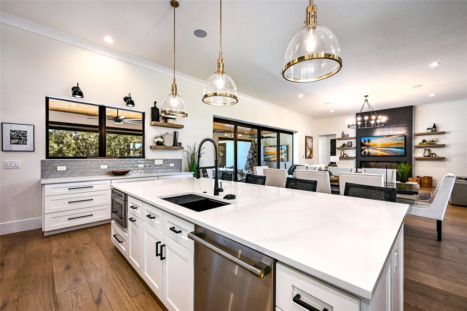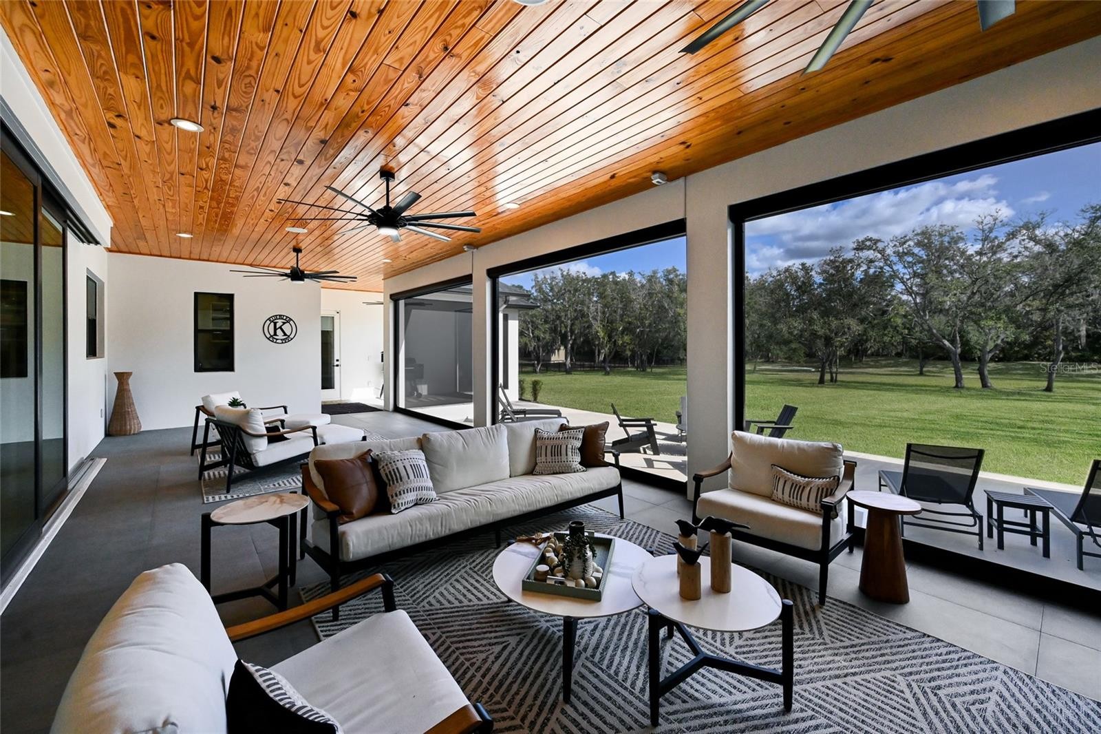 Welcome to Magnolia Oaks, a newly built modern farmhouse estate set on more than 1.7 acres of fully fenced, picturesque grounds in the heart of Lakewood Ranch. Framed by majestic oak trees and expansive open skies, this exceptional property offers a rare blend of space, privacy, and refined craftsmanship—an inspired blank canvas for elevated living. Spanning over 3,900 square feet, the thoughtfully designed residence features four bedrooms, four full baths, a private office, and a versatile bonus room, all wrapped in timeless farmhouse elegance. Soaring 12-foot ceilings grace the main living areas, enhancing the expansive open-concept floor plan with an abundance of natural light and an inviting atmosphere ideal for both everyday living and entertaining. At the heart of the home, the chef’s kitchen is a true showpiece—equipped with a professional-grade cooktop, dual ovens, oversized refrigerator, elegant walk-in pantry, and a stunning oversized island with sink, perfectly designed for gatherings, conversation, and culinary creativity. Designed for both beauty and peace of mind, the home is outfitted with impact-rated windows and sliding glass doors throughout, and is further enhanced by a whole-house generator, providing year-round security, comfort, and uninterrupted living. Indoor-outdoor living takes center stage with four inviting porches, including an extraordinary 1,000+ square-foot covered back lanai featuring a custom roll-up screening system for year-round enjoyment. Additional private porches extend from the primary suite and in-law suite, while the oversized front porch offers the perfect setting for sunset views and peaceful moments beneath the oaks. Each bedroom is designed as a private retreat, with three en-suite bedrooms providing exceptional comfort and privacy for family and guests. The flexible bonus room—currently utilized as a gym—can easily transition into an additional bedroom, nursery, office, or dream closet. A private in-law suite with its own porch offers independence and comfort, ideal for extended family or visitors. Completing the residence is an oversized 939-square-foot three-car garage, providing ample space for vehicles, storage, and hobbies. Outdoors, Magnolia Oaks truly comes alive. The beautifully landscaped grounds provide endless opportunities to roam, entertain, or simply relax in the shade of mature oak trees. The property also allows for the addition of a casita or guest house, creating exciting possibilities for future expansion. More than just a home, Magnolia Oaks is a lifestyle—a serene, private oasis where you can stretch out, breathe deeply, and create something truly special. This is modern farmhouse living at its finest.